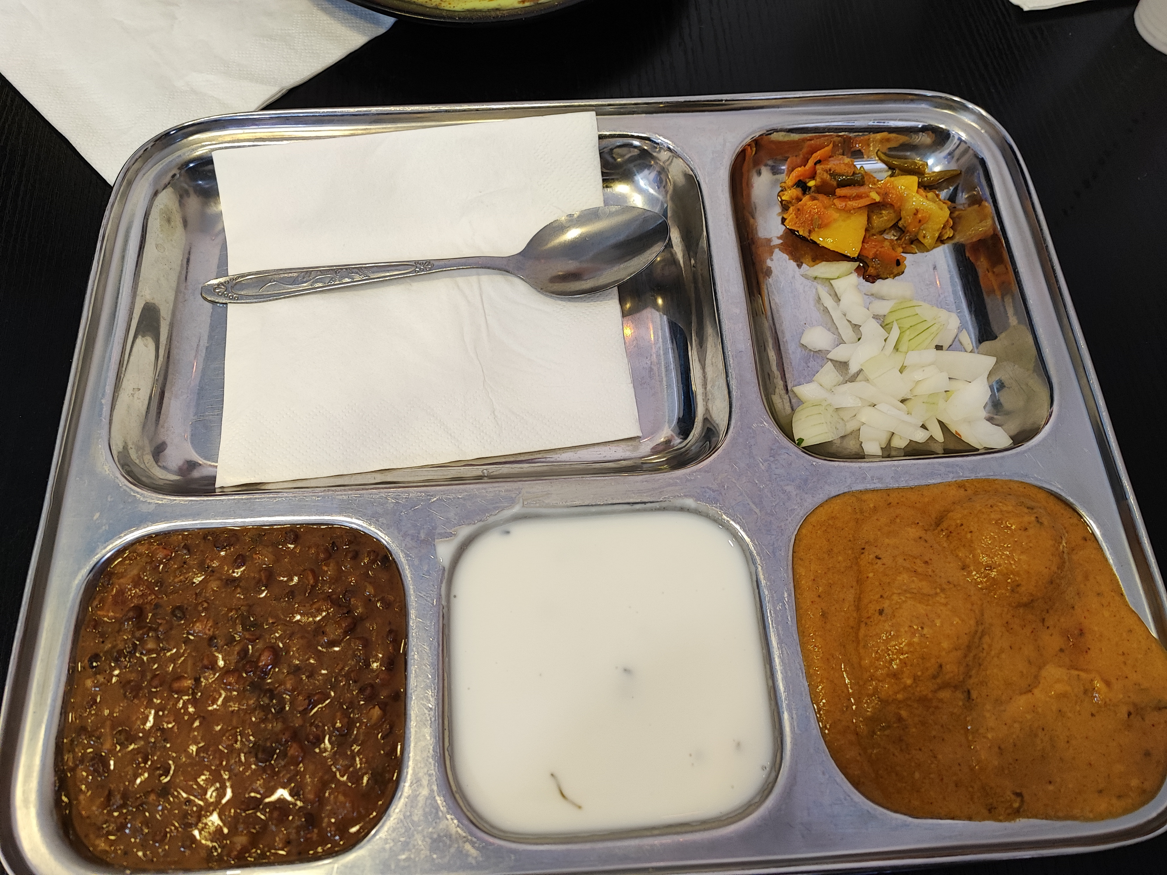 C'est un petit endroit qui a beaucoup à offrir. Les prix sont plus que raisonnables et la qualité est bonne. Un coin salon pas très luxueux mais c'est faisable. J'ai essayé le chat samosa qui était bien et les gens autour semblait satisfait de la nourriture. Le naan au fromage avait l'air vraiment bon. J'y retournerai pour essayer plus de choses, puis mettre à jour cette critique. Jusqu'à présent, je suis vraiment content!