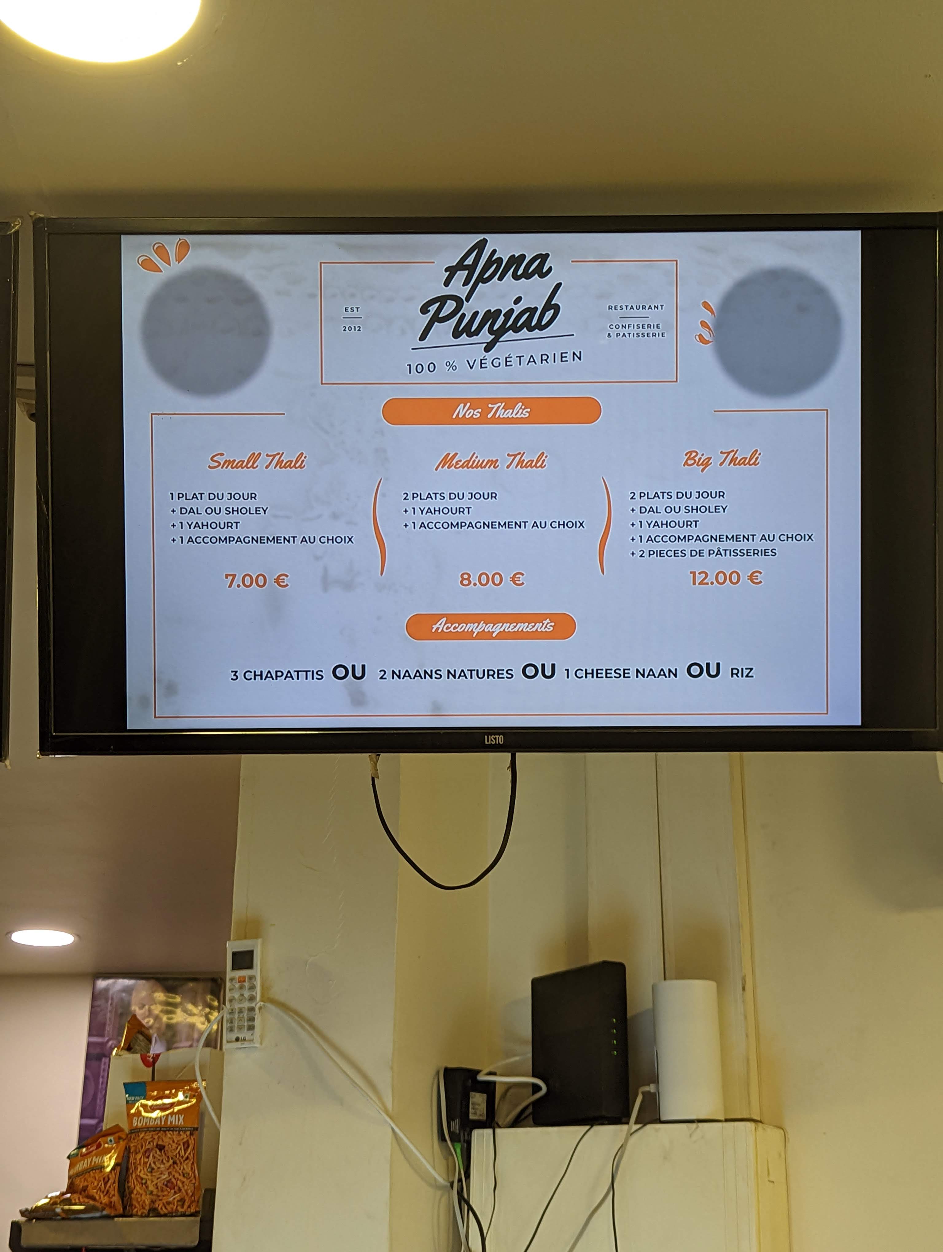 Bon petit restaurant indien punjabi. Sert du gol gappe, ce qui est assez bon compte tenu de la France. il y a aussi du makkai roti le samedi et du lassi dal makhani, etc.