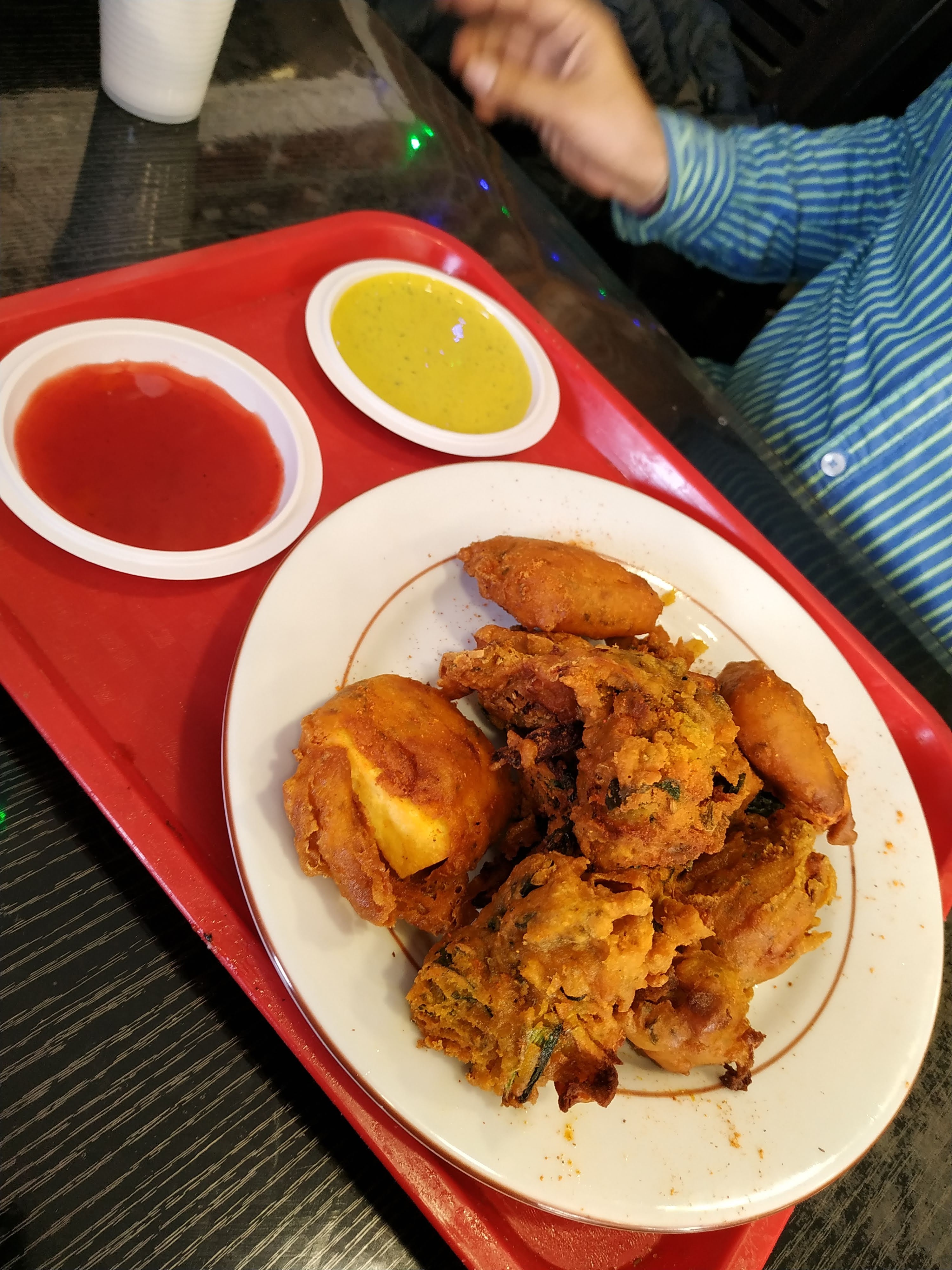 Toutes sortes d'aliments Desi comme le samosa pakora et le Jalebi, etc. sont disponibles ici. samosa Chat Dehi baly et autres curry indiens, etc.