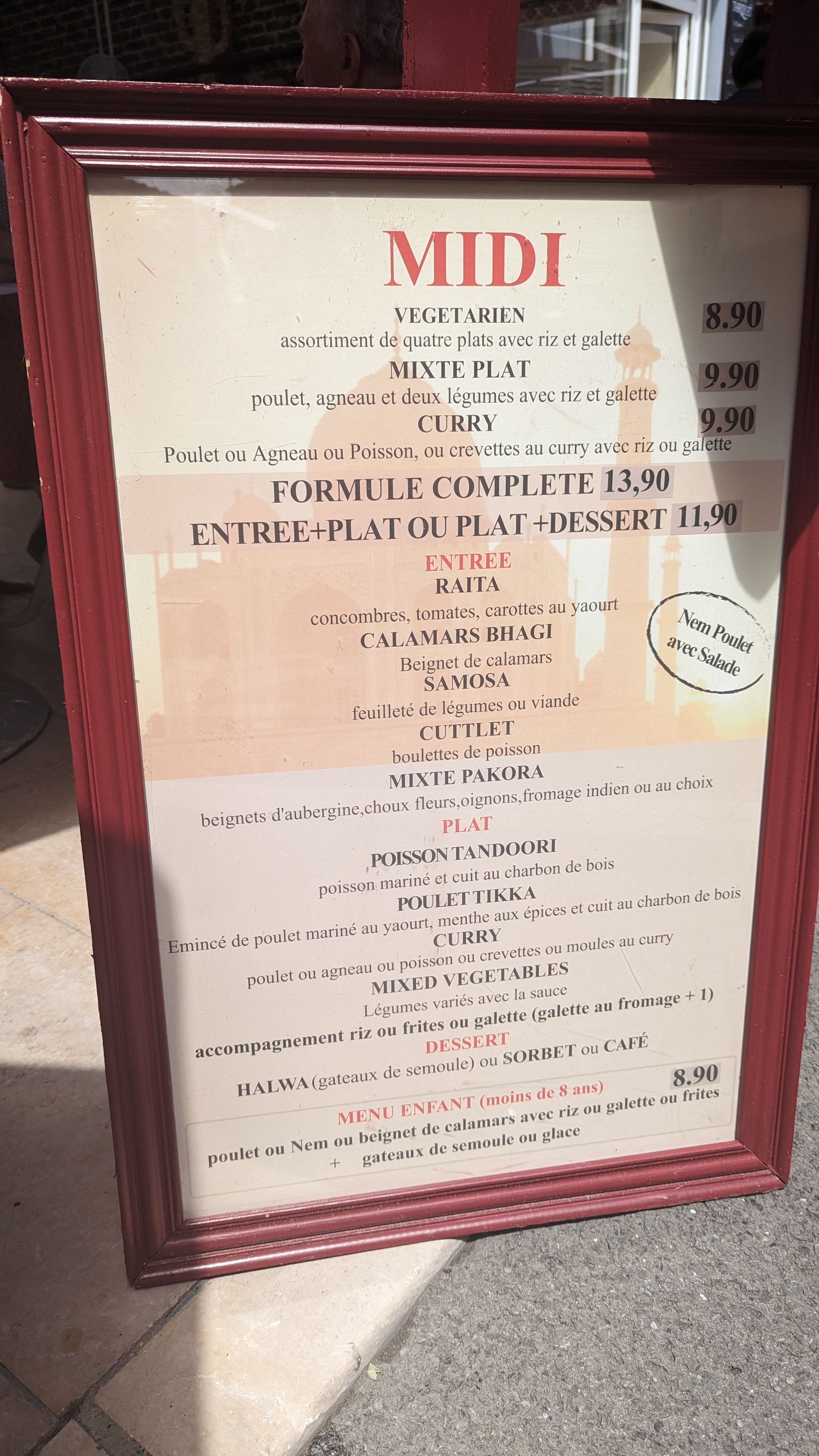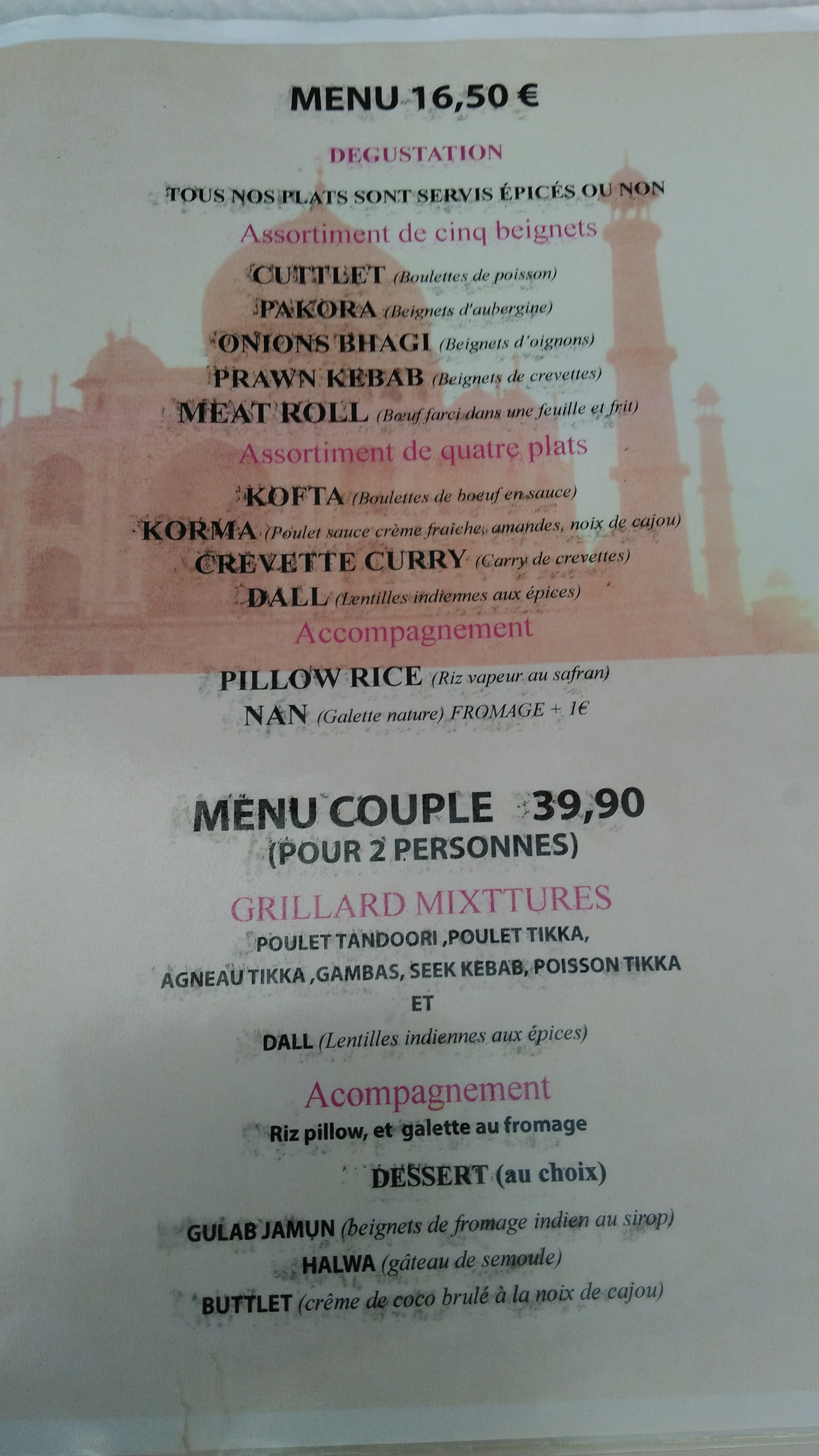 Nous ne connaissions pas la cuisine indienne et donc c était une première. Bon accueil, nourriture délicieuse et côté qualité prix très correct. Pour nous, mais avis très personnel la crème brûlée bonne mais un peu petite. Nous recommandons ce restaurant et nous y reviendrons.