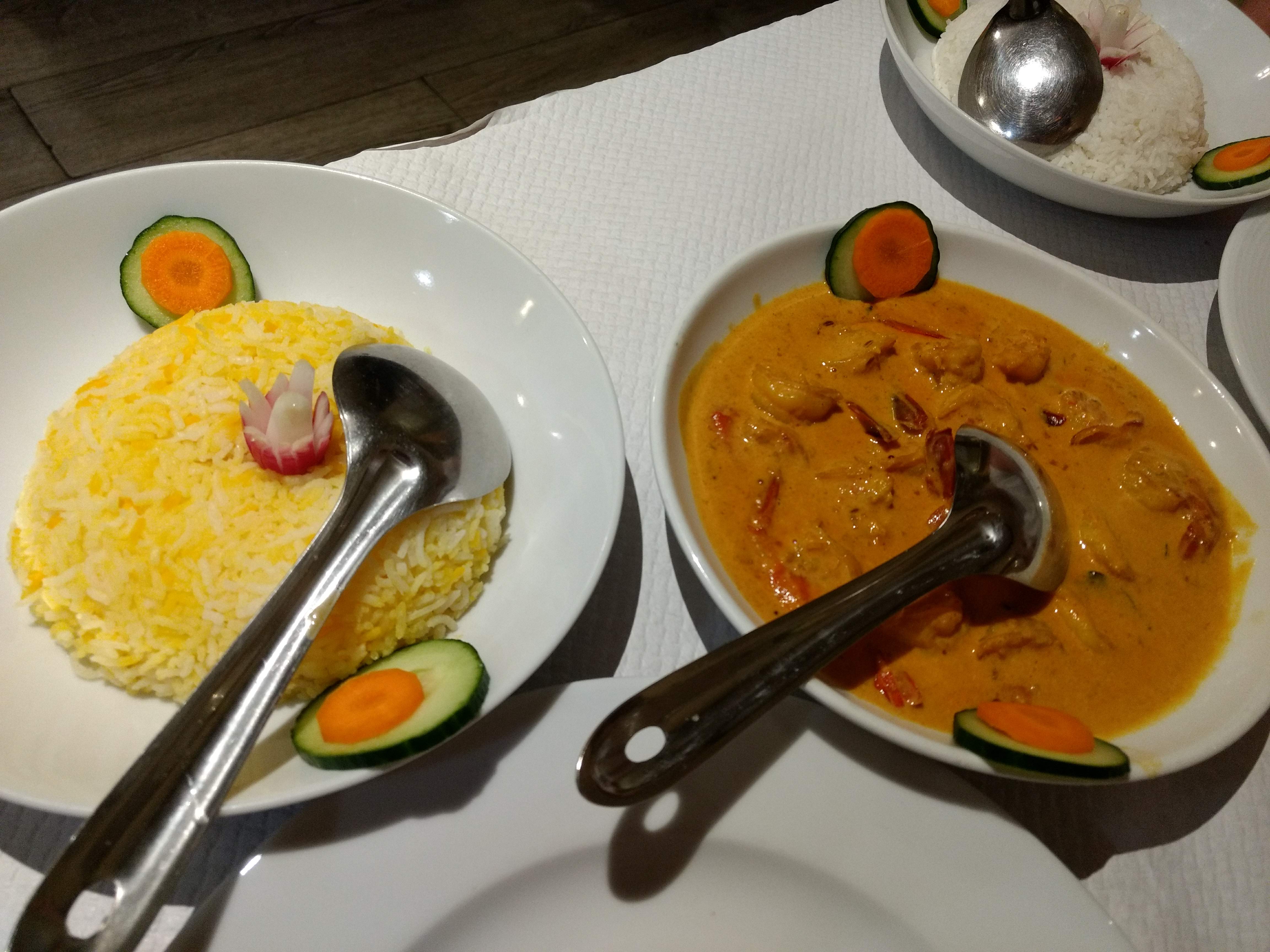 Excellent, tout était parfait…poulet curry à tomber, riz coco un délice, un avant goût du paradis…. Nous n’avons pas pu tout finir, vive les doggy bag…!!! Merci à très vite !