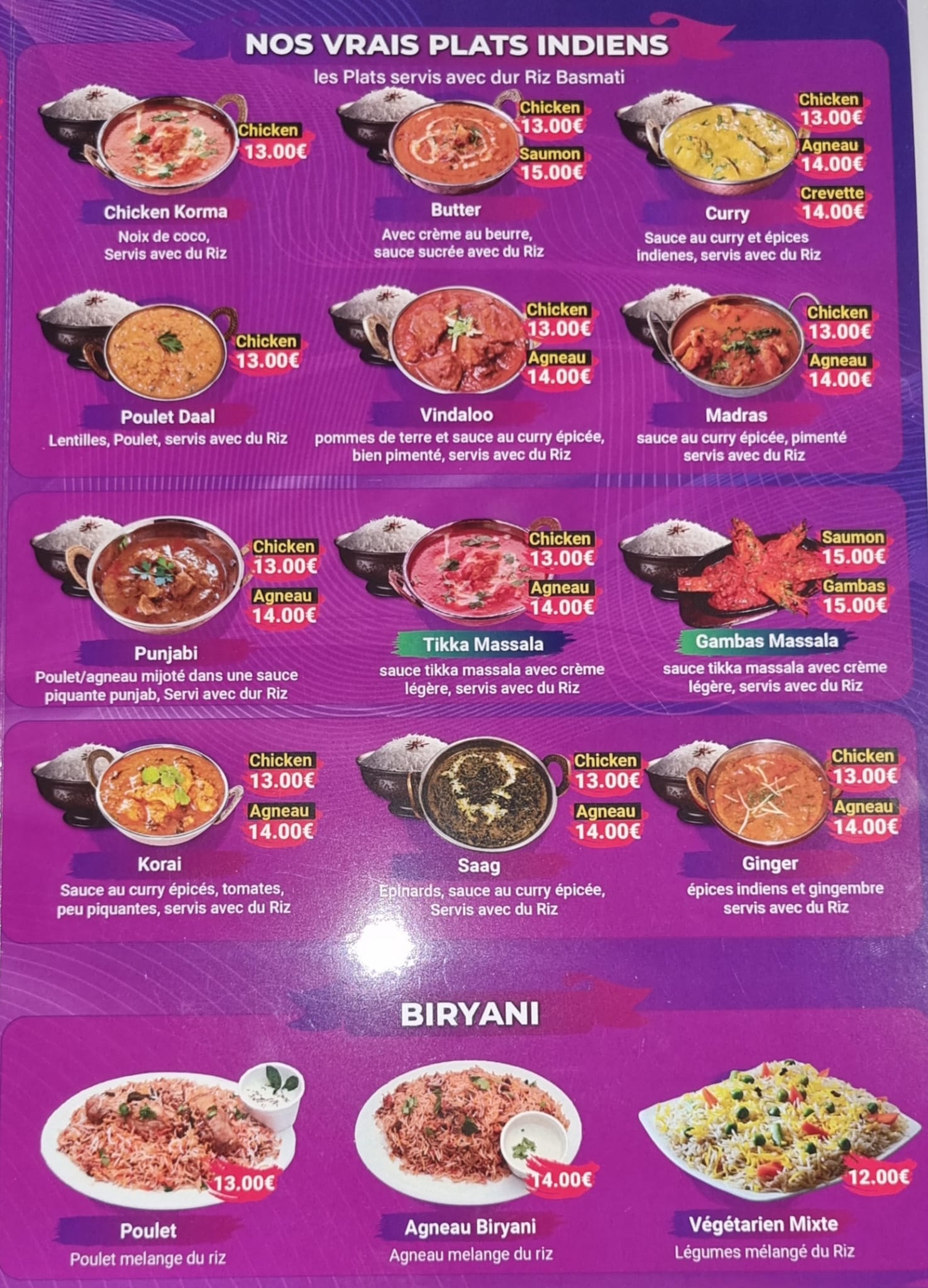 Très bon accueil, service et qualité des plats. Je vous recommande le vindaloo, le punjabi, et le butter chicken. Et le lassi fruits de la passion.