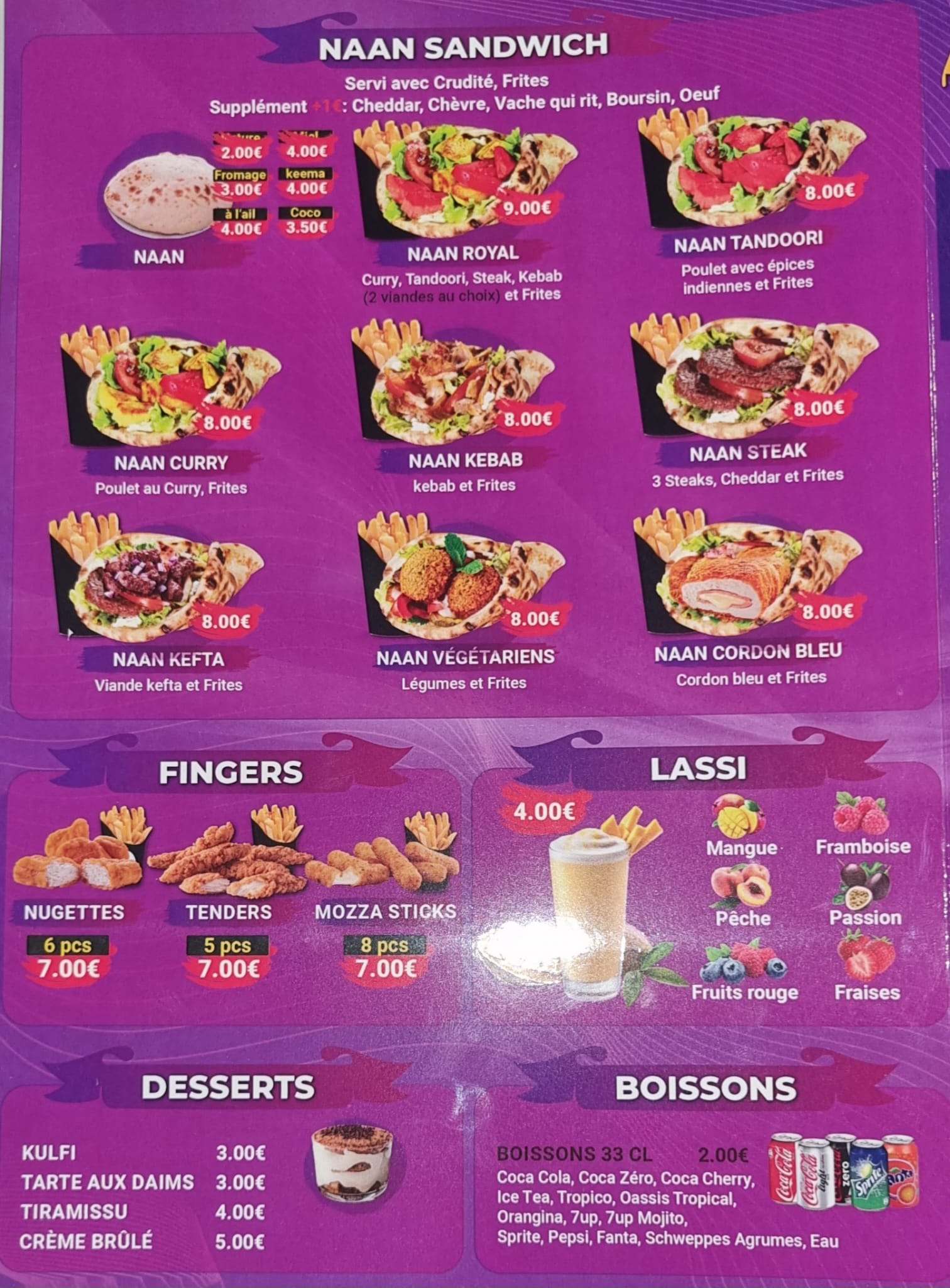 Je vais parler de la partie sandwich, naan, le gros point fort et qu'il propose des kebab en naan et cheese naan qui sont bon, dommage pour le poulet curry qui est sec, la viande kebab est bonne les frites surgelé,.. sa reste bien garnis. A faire car ça change vraiment des pains ou galette