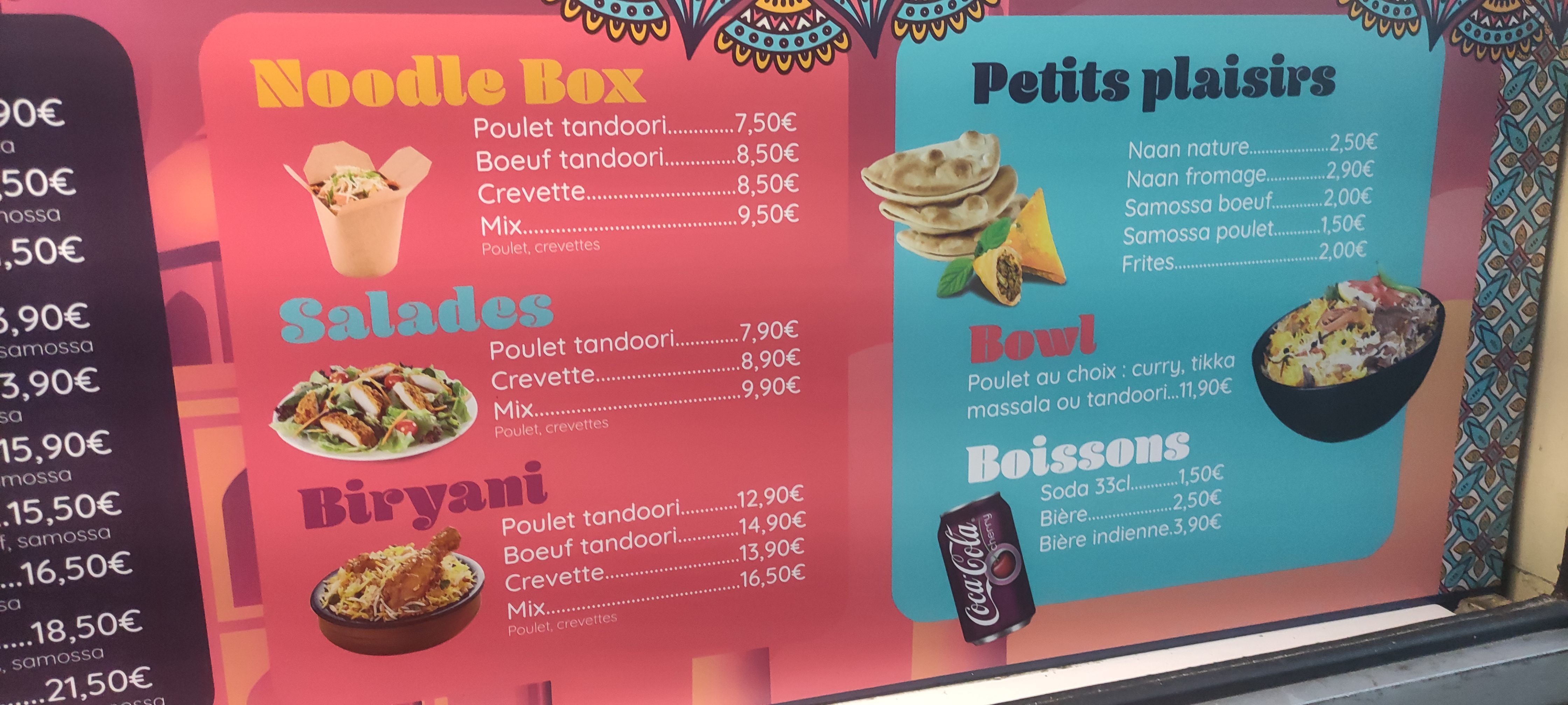 Dégueulasse ! Commandé Uber alors ok livraison ultra rapide mais la moitié de la commande ne correspond pas à ce que l'on a demandé, le naan censé être poulet tikka ressemble à une crêpe avec de la ratatouille au poulet, le pain colle aux doigts et est limite cramé, le naan fromage n'a quasi pas de fromage des traces de vache qui rit parfois quand on a la chance d'attraper le bon bout, les 2 samoussas s'effritent dans les doigts, pas de sauce pour les frites et pas de serviettes. Vraiment déçus, désolée mais nous ne recommanderons pas.