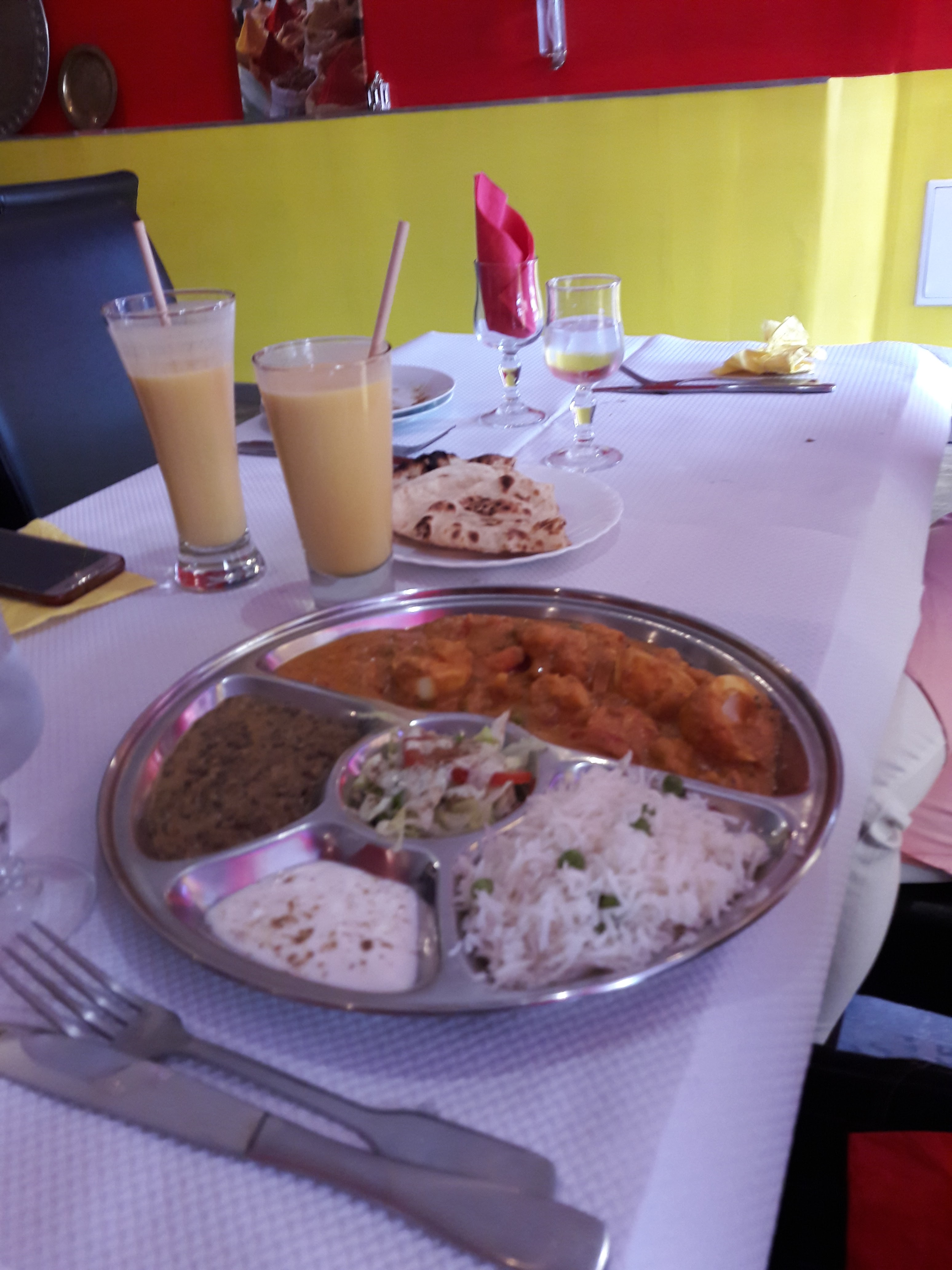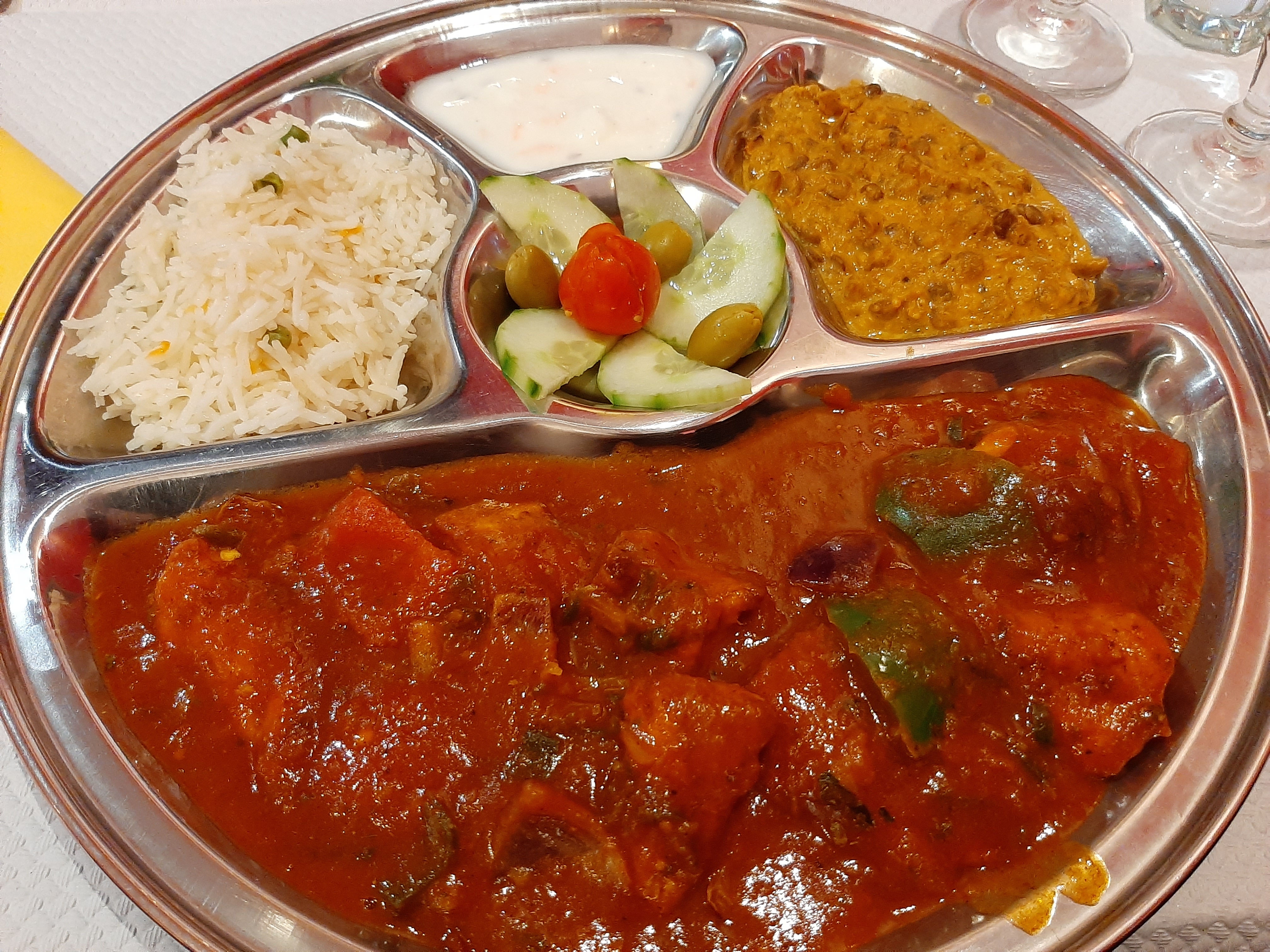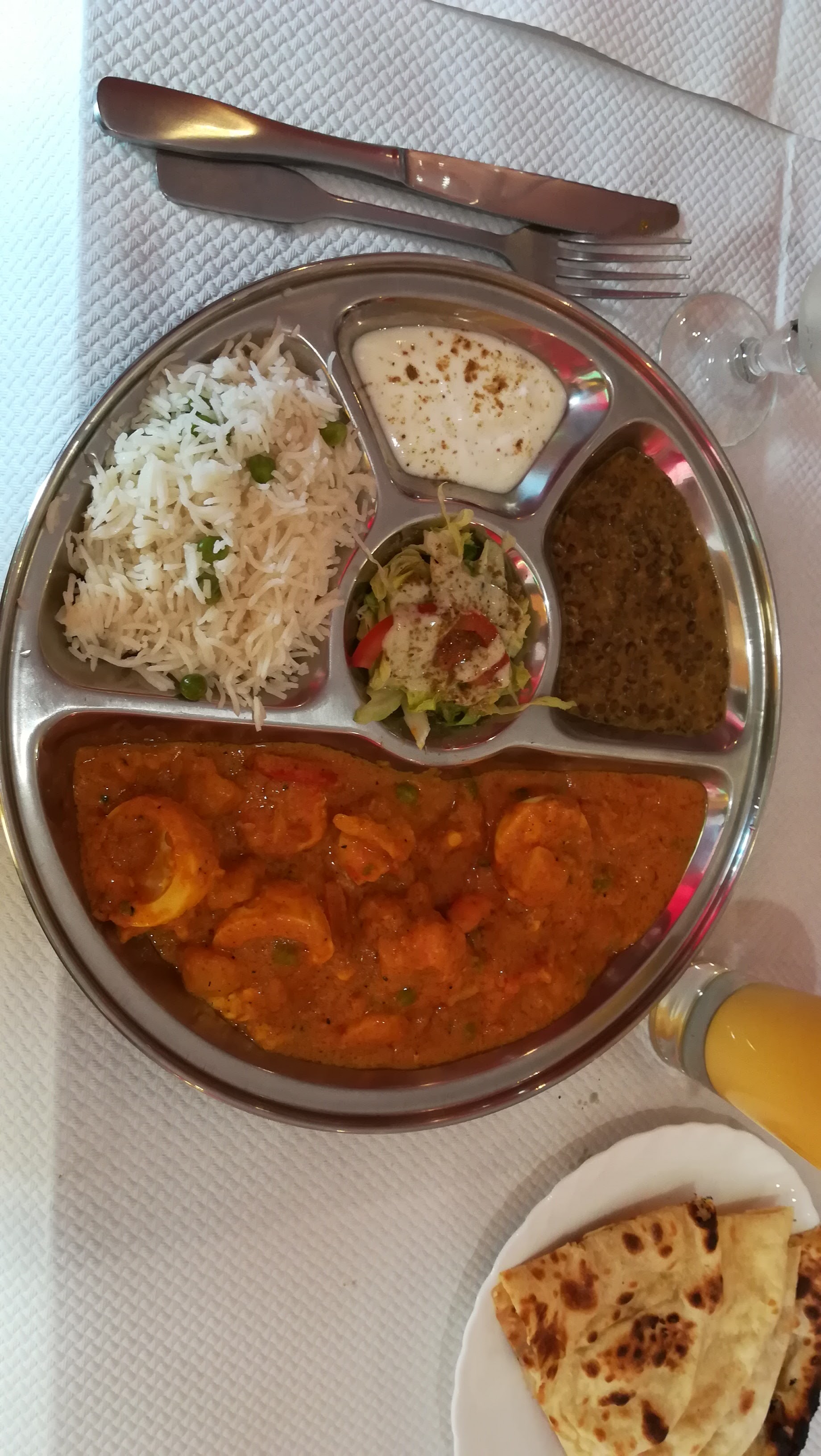 1ere fois que je découvrais ce lieu, c'est mon fils et son père qui me l'ont fait découvrir. Le lieu en lui-même, n'est pas très grand mais cela fait un endroit cosy et chaleureux. Pour ce qui est du service, personne très agréable, gentille et avenante. Les plats, sont copieux, j'ai pu goûter le thali crevette curry ainsi que le thali gambas. Je craignais que cela soit trop relever, n'aimant pas cela, mais cela a été une incroyable surprise, on sens bien les différentes épices, elles sont très bien dosé. Personnellement, je reviendrai avec plaisir dans ce petit lieu chaleureux !