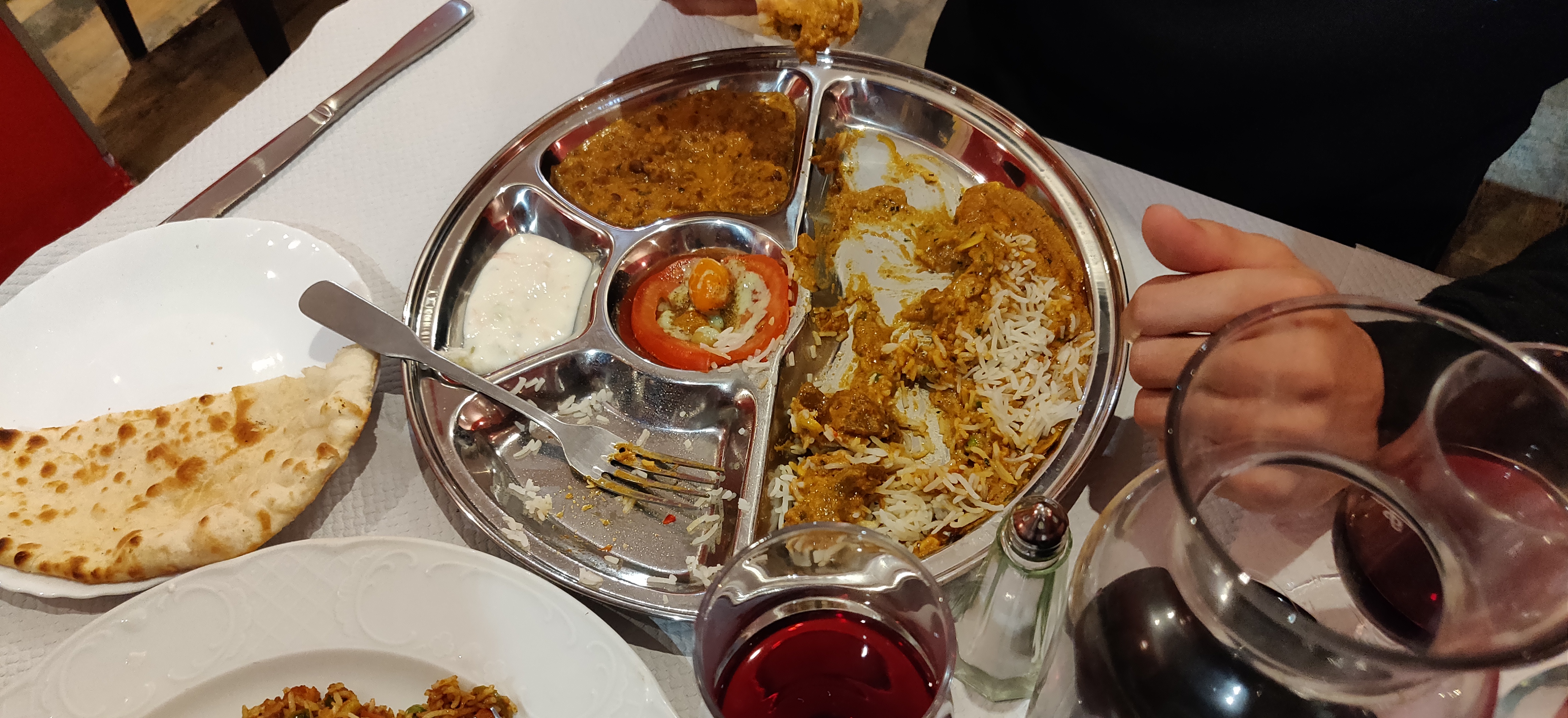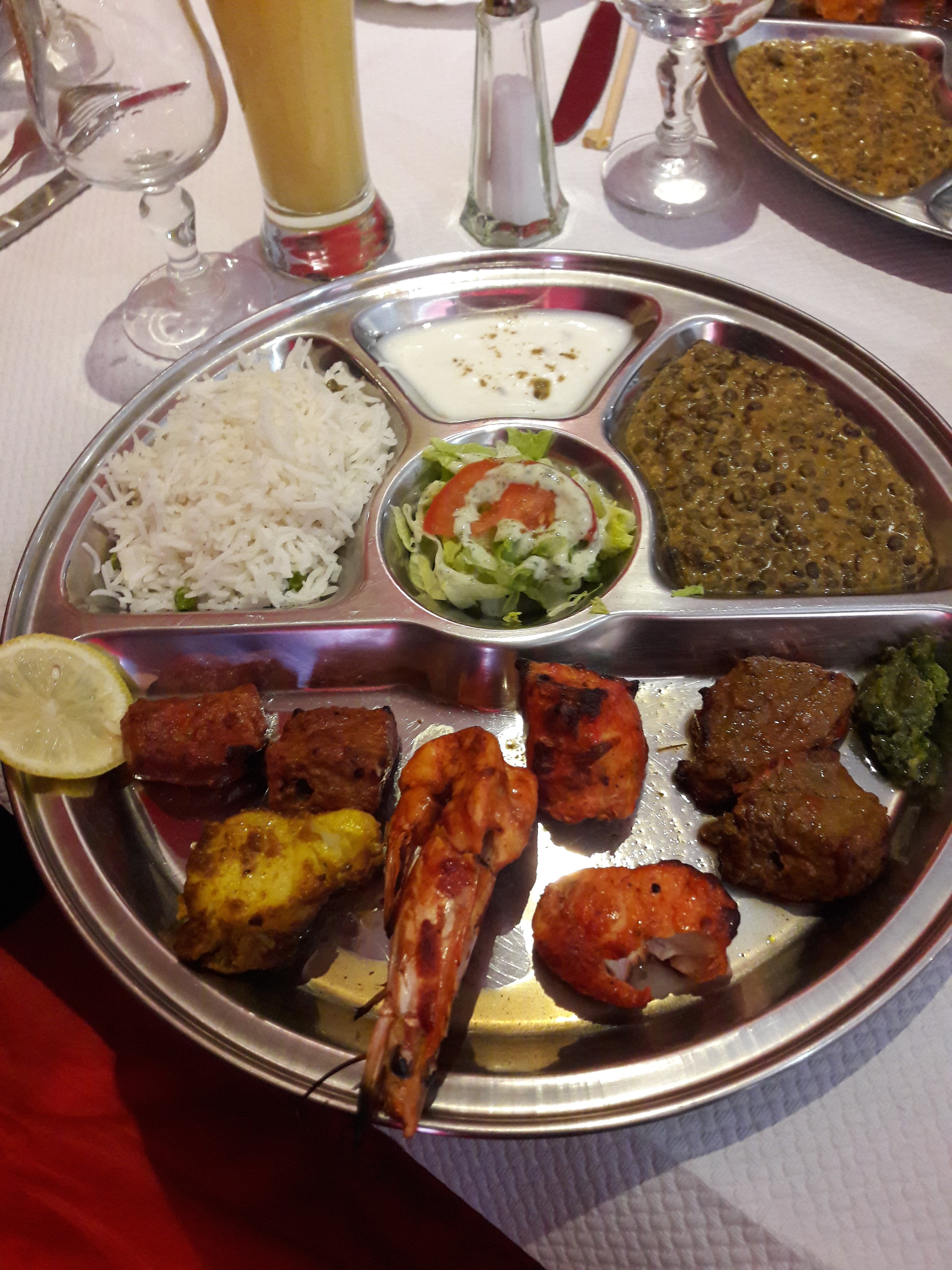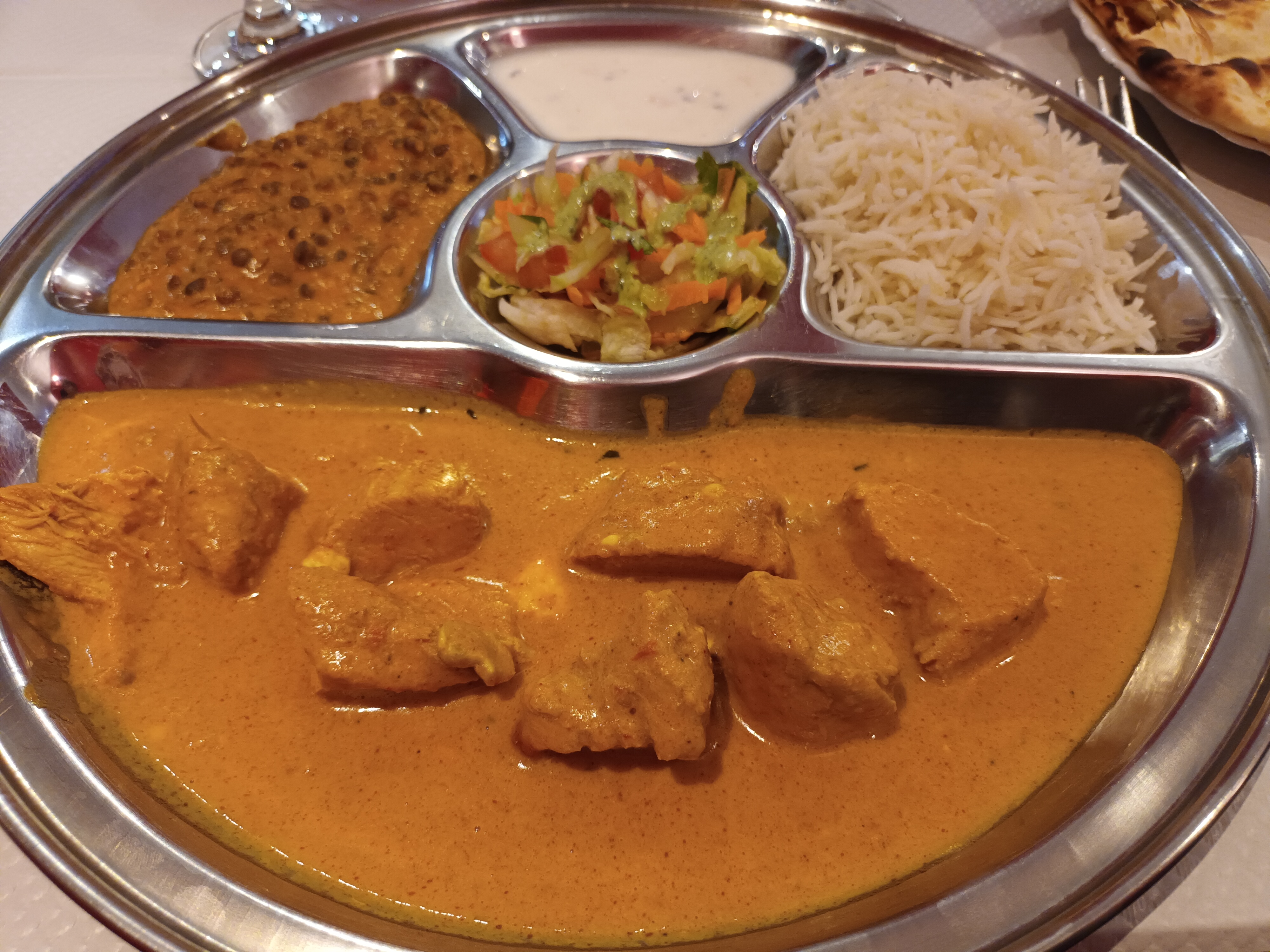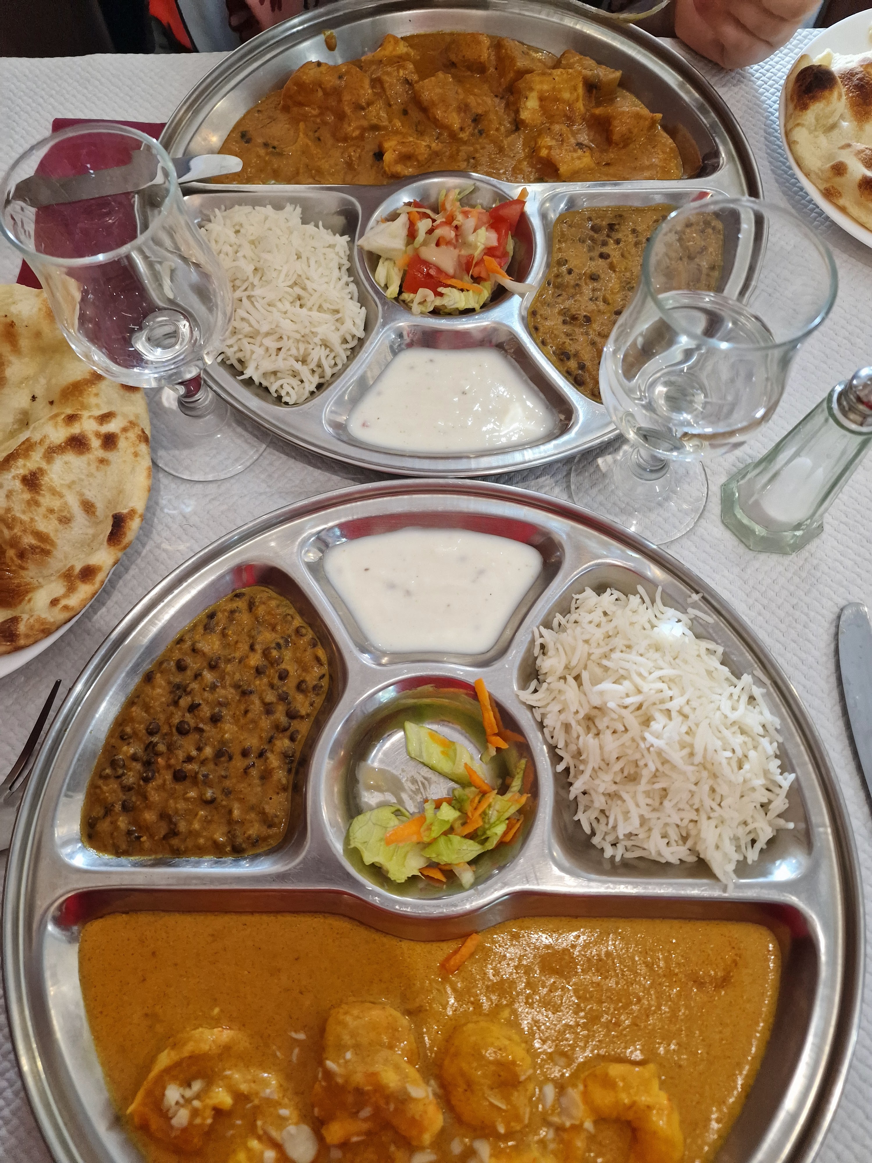 1ere fois que je découvrais ce lieu, c'est mon fils et son père qui me l'ont fait découvrir. Le lieu en lui-même, n'est pas très grand mais cela fait un endroit cosy et chaleureux. Pour ce qui est du service, personne très agréable, gentille et avenante. Les plats, sont copieux, j'ai pu goûter le thali crevette curry ainsi que le thali gambas. Je craignais que cela soit trop relever, n'aimant pas cela, mais cela a été une incroyable surprise, on sens bien les différentes épices, elles sont très bien dosé. Personnellement, je reviendrai avec plaisir dans ce petit lieu chaleureux !
