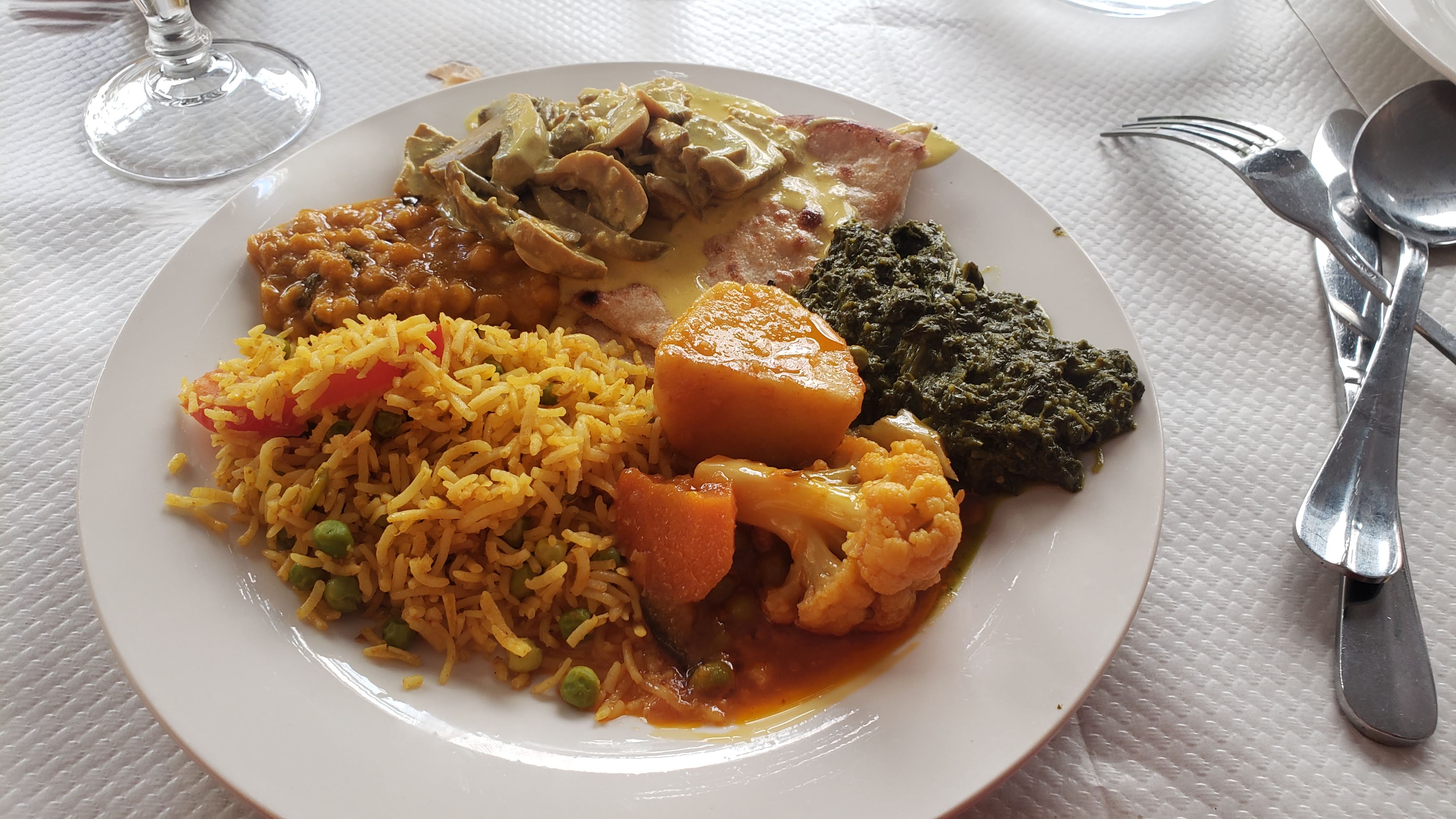 J'aime bien le cadre et l'atmosphère du lieu. Le Buffet à volonté du midi est copieux. Service simple, efficace. Pas le meilleur restaurant indien de la ville mais agréable pour un repas du midi.