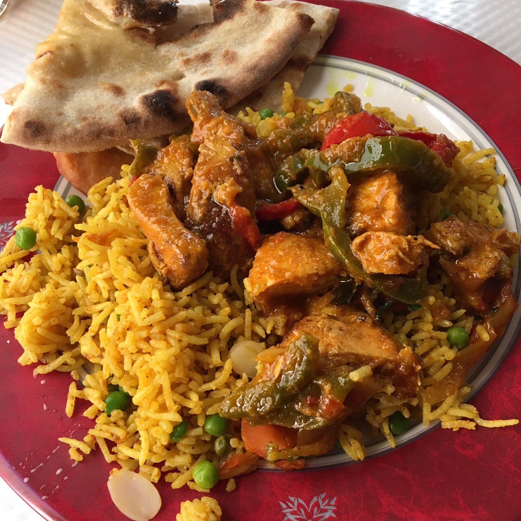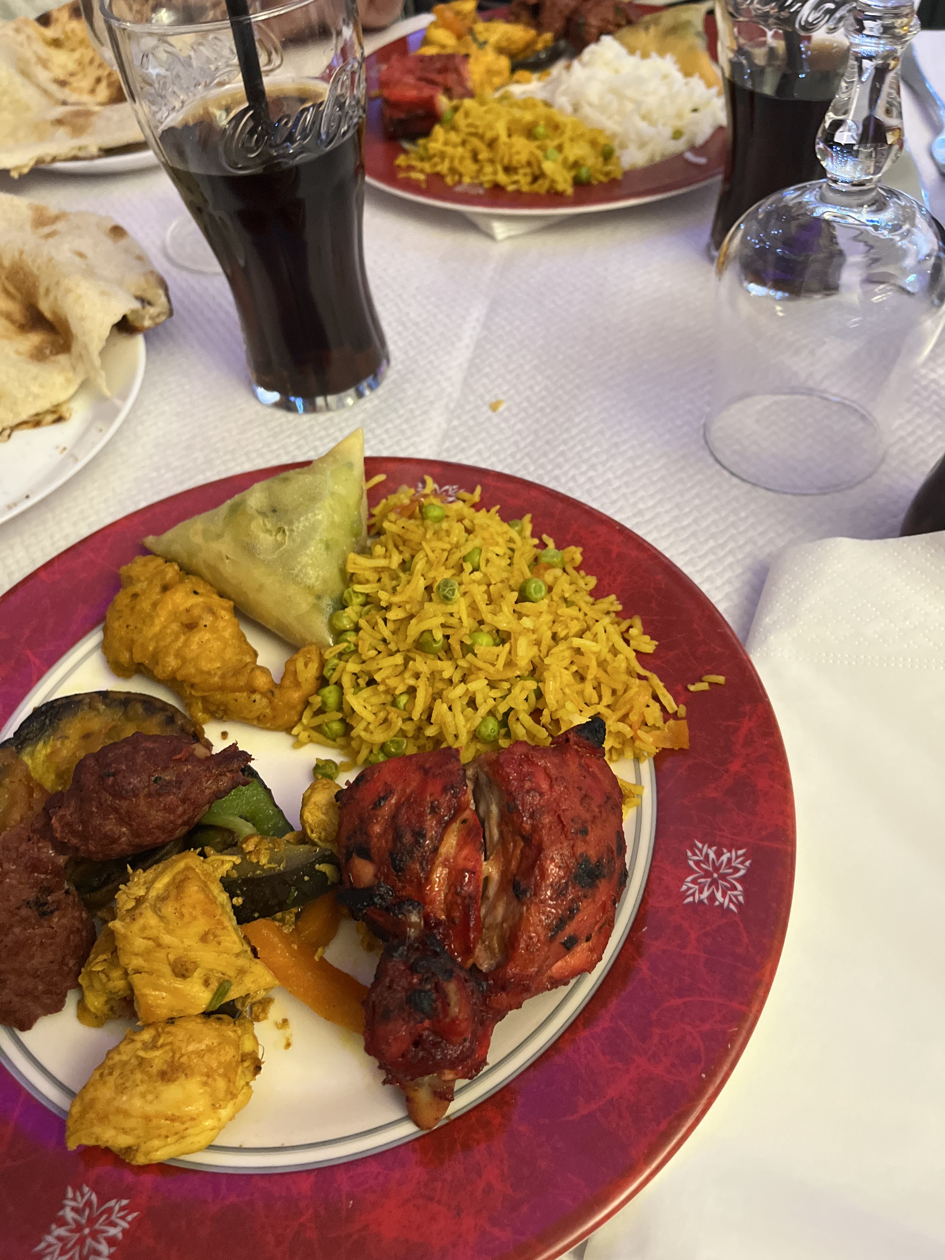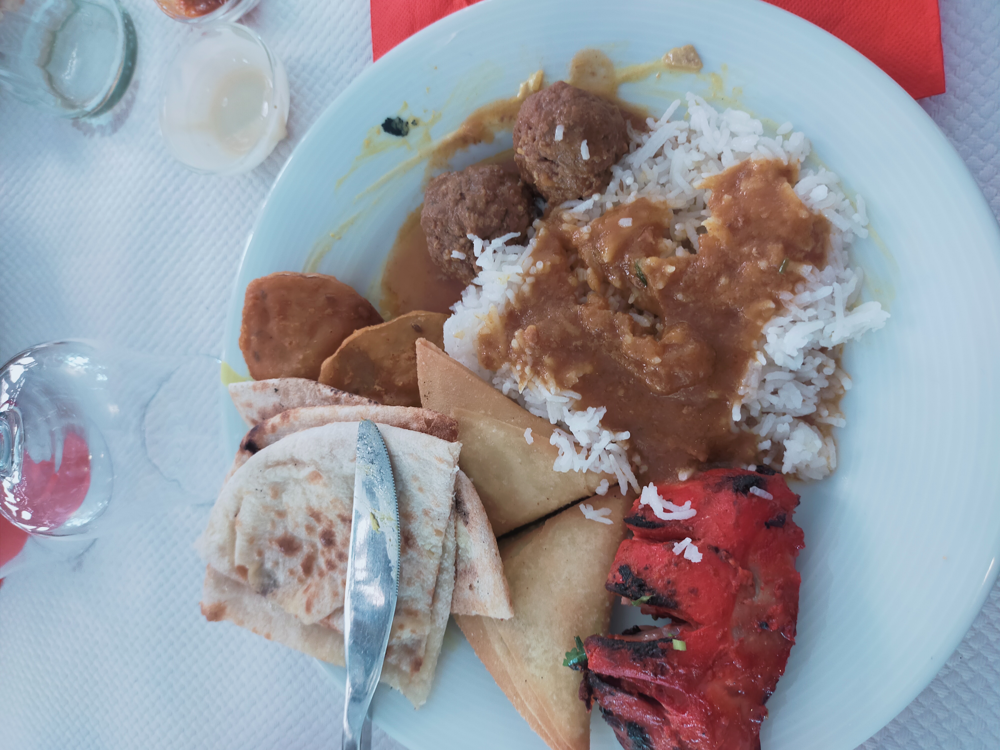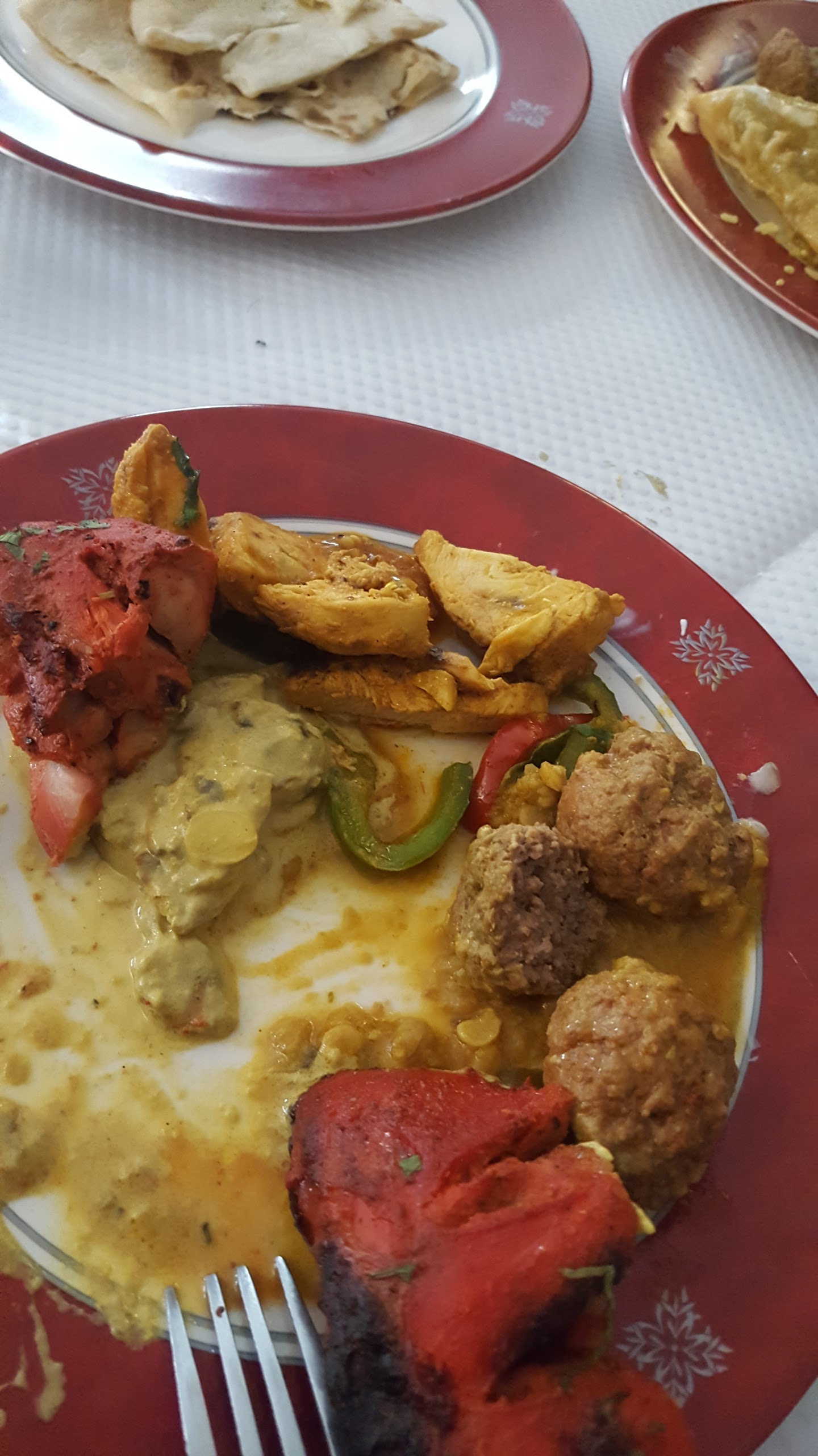 On a bien aimé les naans au fromage poulet curry et boulettes très bonnes. Il manque les indications des plats avec le niveau de piquant il faudrait un peu plus de choix pour les desserts.