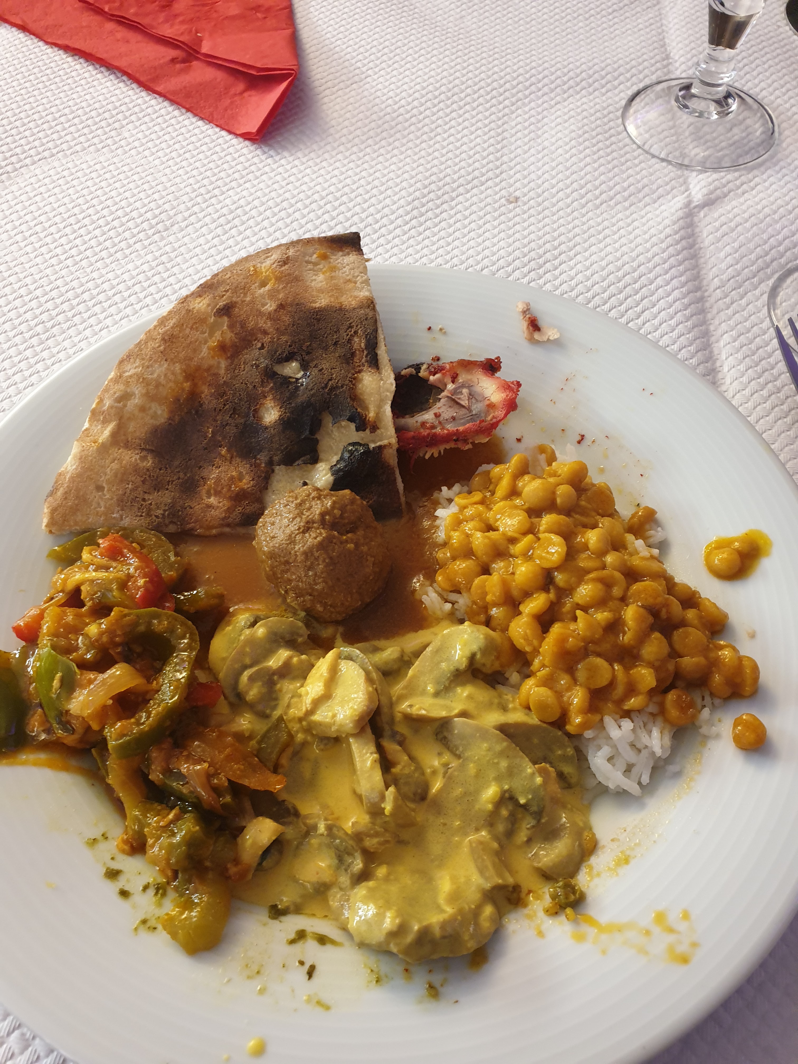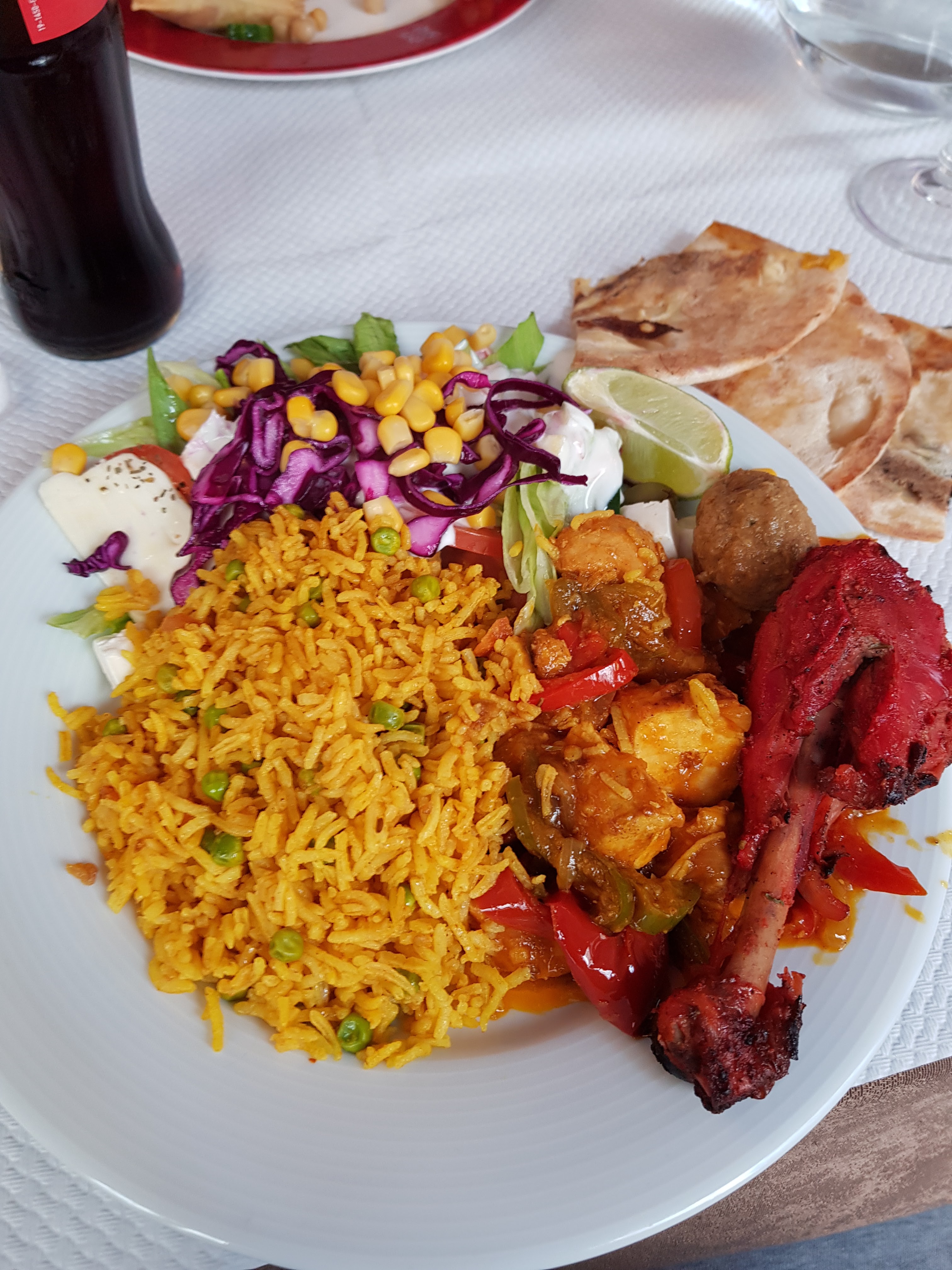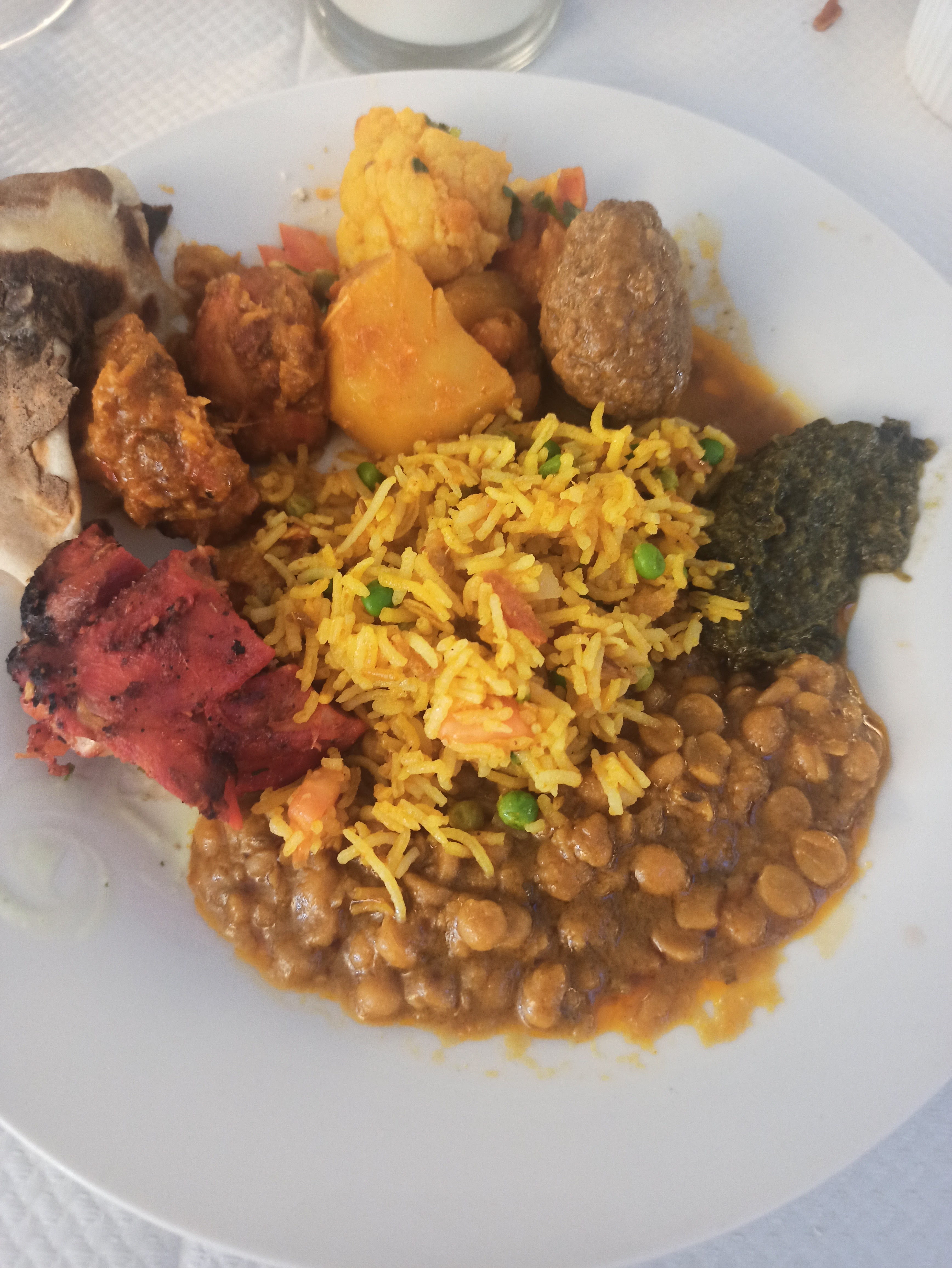 Les entrées et quelque desserts été bons sans oublier les boissons et le nan c’était un délice Par contre les plats principaux n’étaient pas savoureux, pas beaucoup de choix de viande … En revanche personnel sympathique