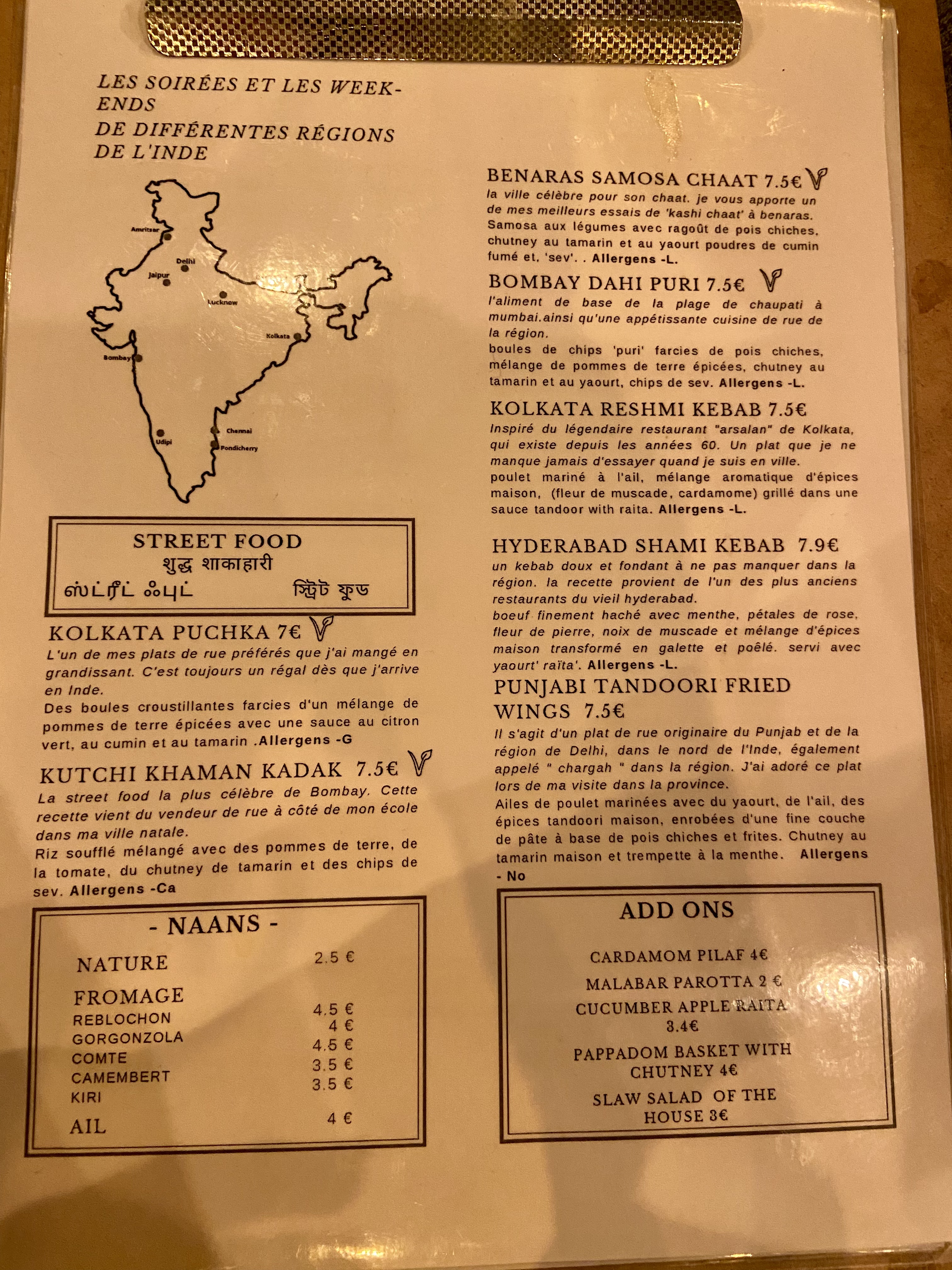 Scincèrement, je suis in love ! On a l'impression d'être chez un ami qui nous raconte son voyage en Inde. Et c'est très bon, les plats sont originaux, ça change des restaurants indiens classiques.