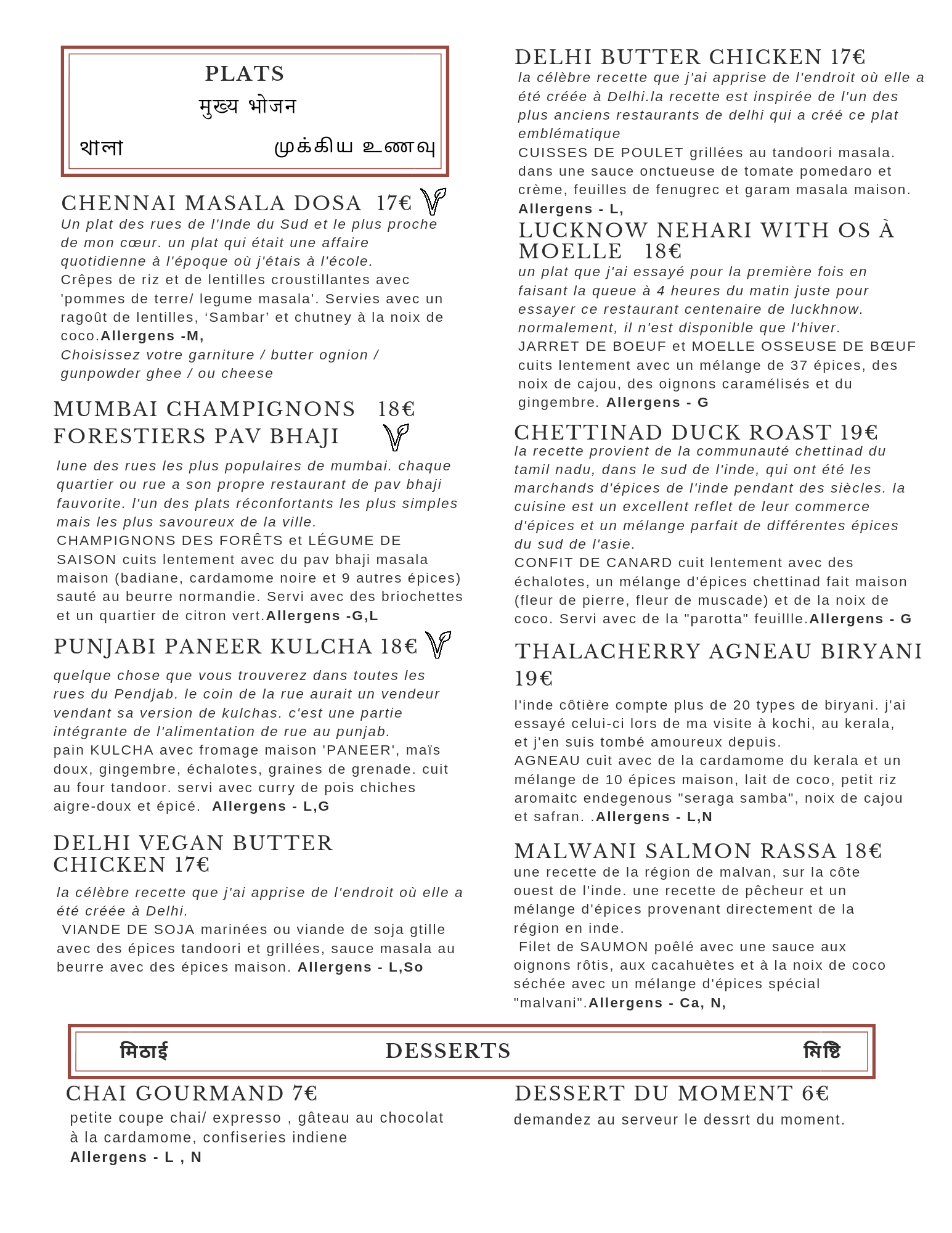 Personnel très accueillant et bienveillant qui sait prendre soin de ses clients. Cuisine riche et savoureuse qui nous fait voyager dans les quatre coin de l’Inde ! Recommandations sans aucune hésitation !