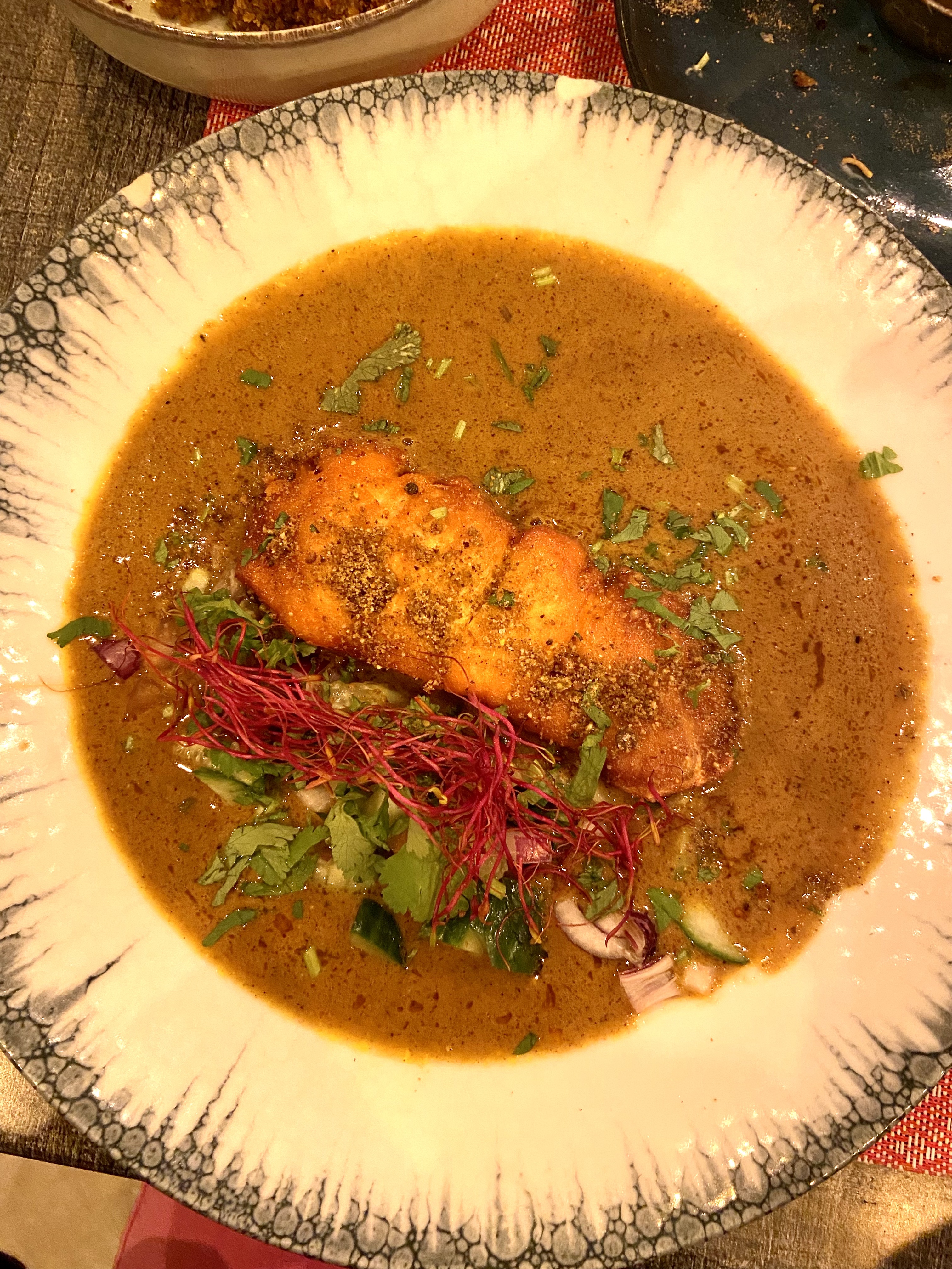 Un restaurant qui nous a emmené aux quatre coins de l'Inde avec sa carte qui décrit autant la découverte des plats lors des voyages du chef que leurs saveurs. Les épices sont servies à part, ce qui permet de doser suivant ses goûts.