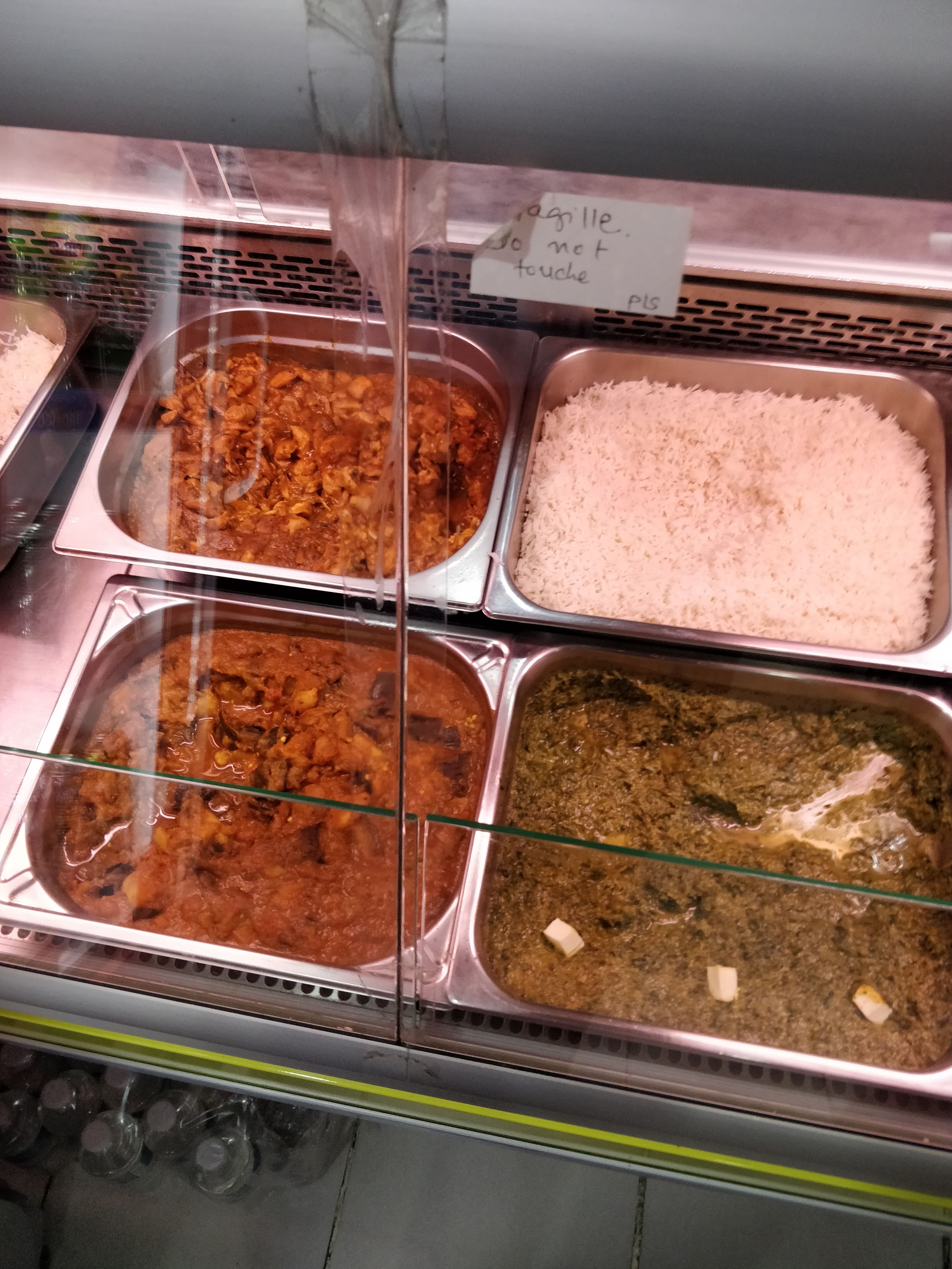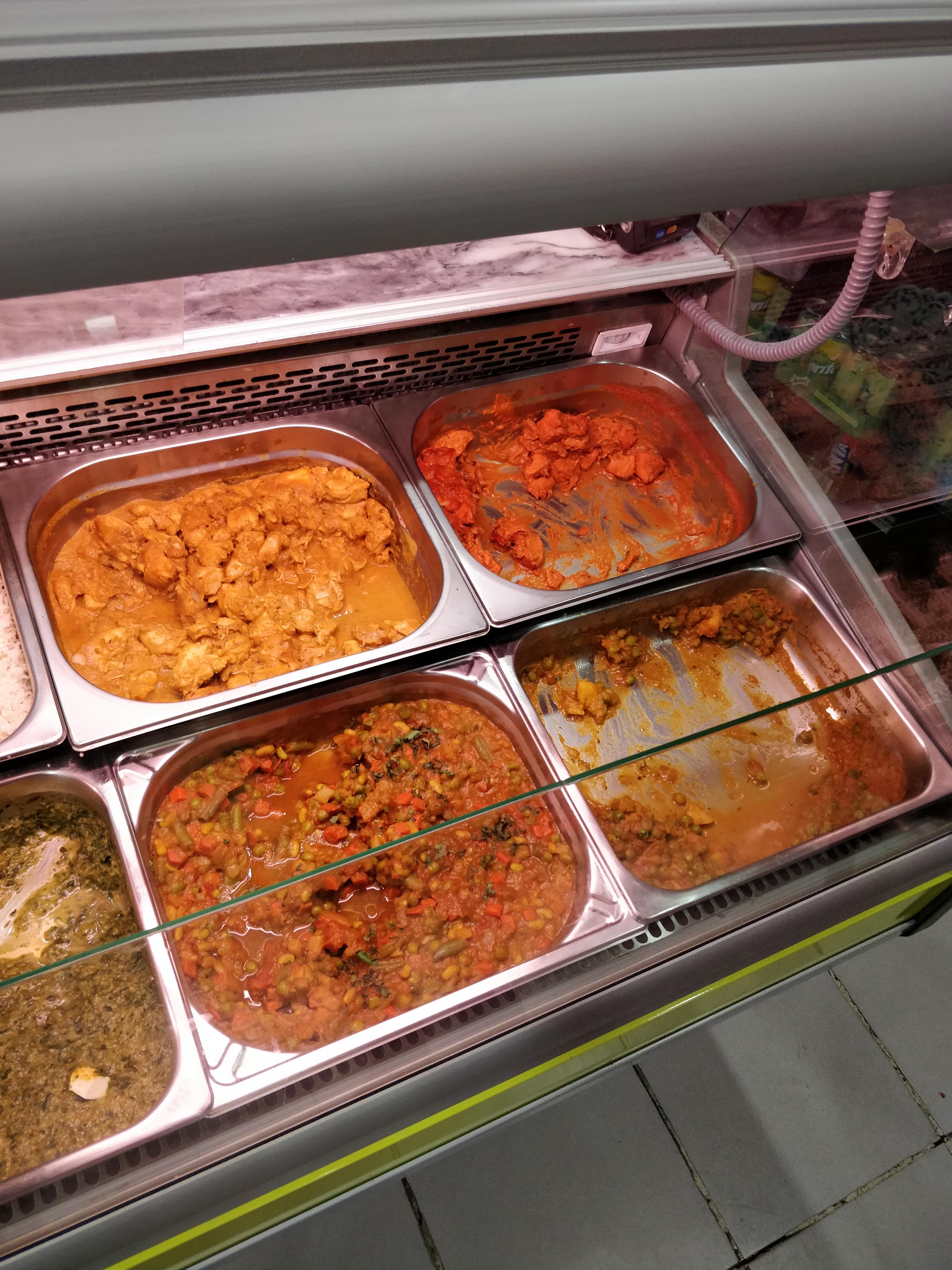 Option limitée avec des plats préparés, ferme à 20h30, heure locale, petit endroit, certains choix végétariens et non végétariens, prix presque les mêmes que ceux des autres restaurants de type restaurant, les samosas semblent être fabriqués à partir d'emballages surgelés, nan ne le sont pas bien non plus.