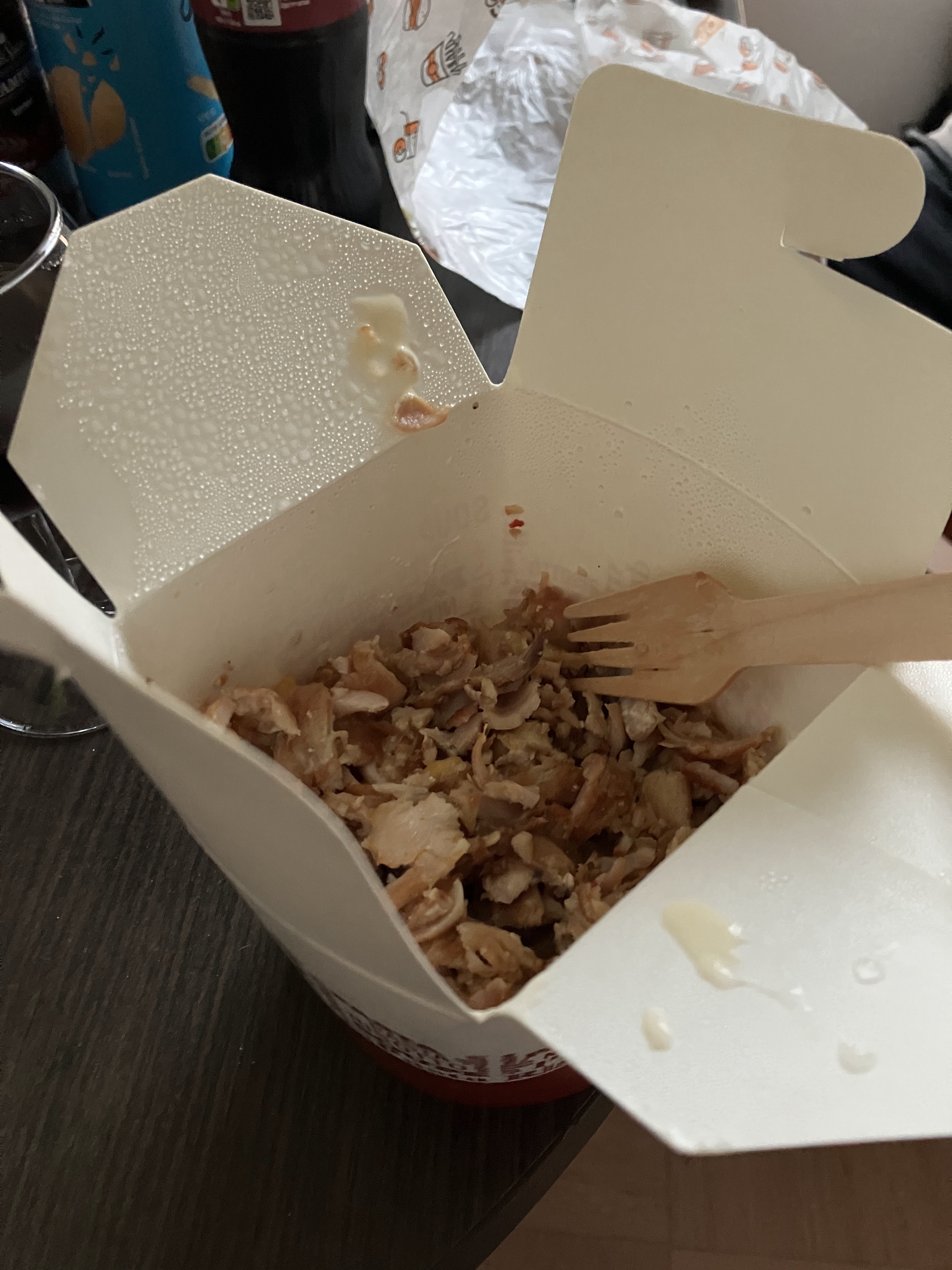 Un désastre : 57 minutes d'attente pour qu'on me livre une bouillie infâme de viande de kebab sec et poulet aux hormones rose fluo arrosé de frites molles et de salade en plastoc. La poubelle s'est régalée, elle au moins n'encours pas de risque pour sa santé... Seul le naan était mangeable.