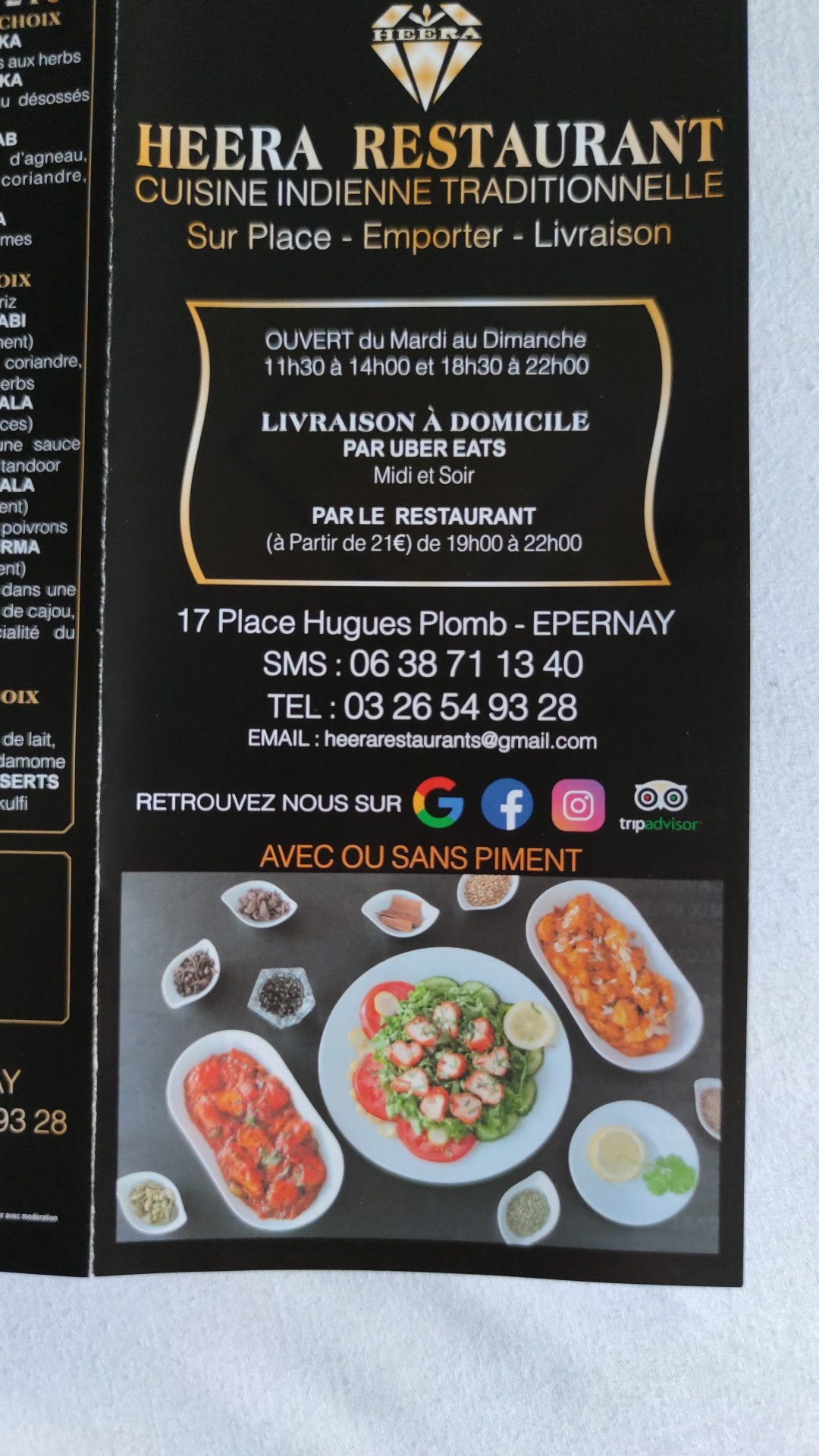 Voici toutes les informations sur le Restaurant indien Heera Restaurant qui ce trouve au Near Carrefour City, Near La Post, 17 Pl. Hugues Plomb, 51200 Épernay (51). Sur cette fiche vous trouverez les photos, l'adresse, les horaires d'ouverture, le numero de téléphone et les avis clients.Vous pouvez églement rédiger un avis si vous le souhaitez en bas de page.