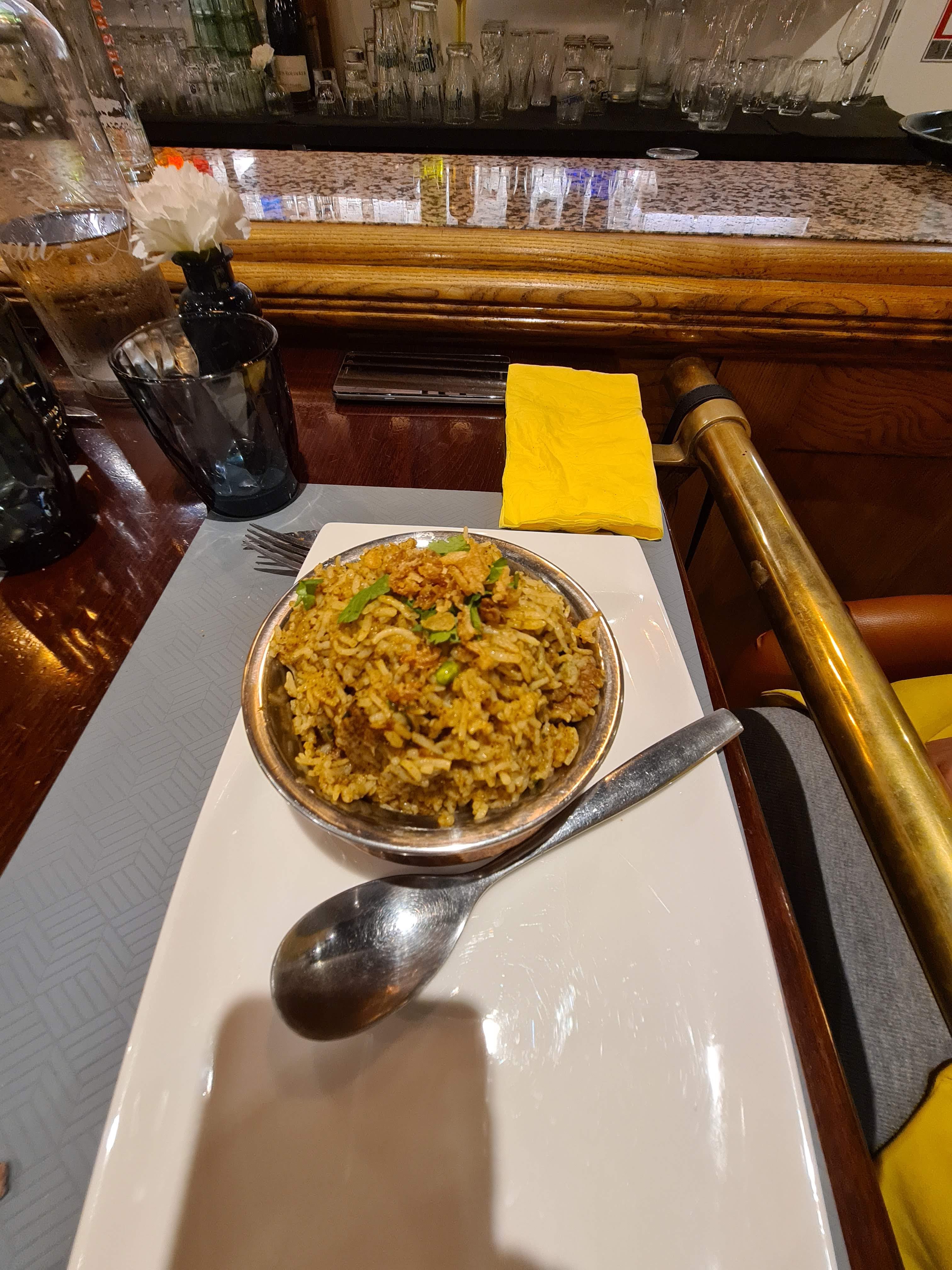 J’ai découvert ce restaurant hier soir et honnêtement je n’en suis pas déçu. Les plats y sont succulents avec de nombreuses saveurs, le patron est adorable et n’hésite pas à bien prendre le temps de nous expliquer tout ce qui se trouve dans notre assiette. On devrait tous y aller au moins une fois dans notre vie. J’ai prit pour ma part un assortiment pour l’entrée et un poulet biryani!
