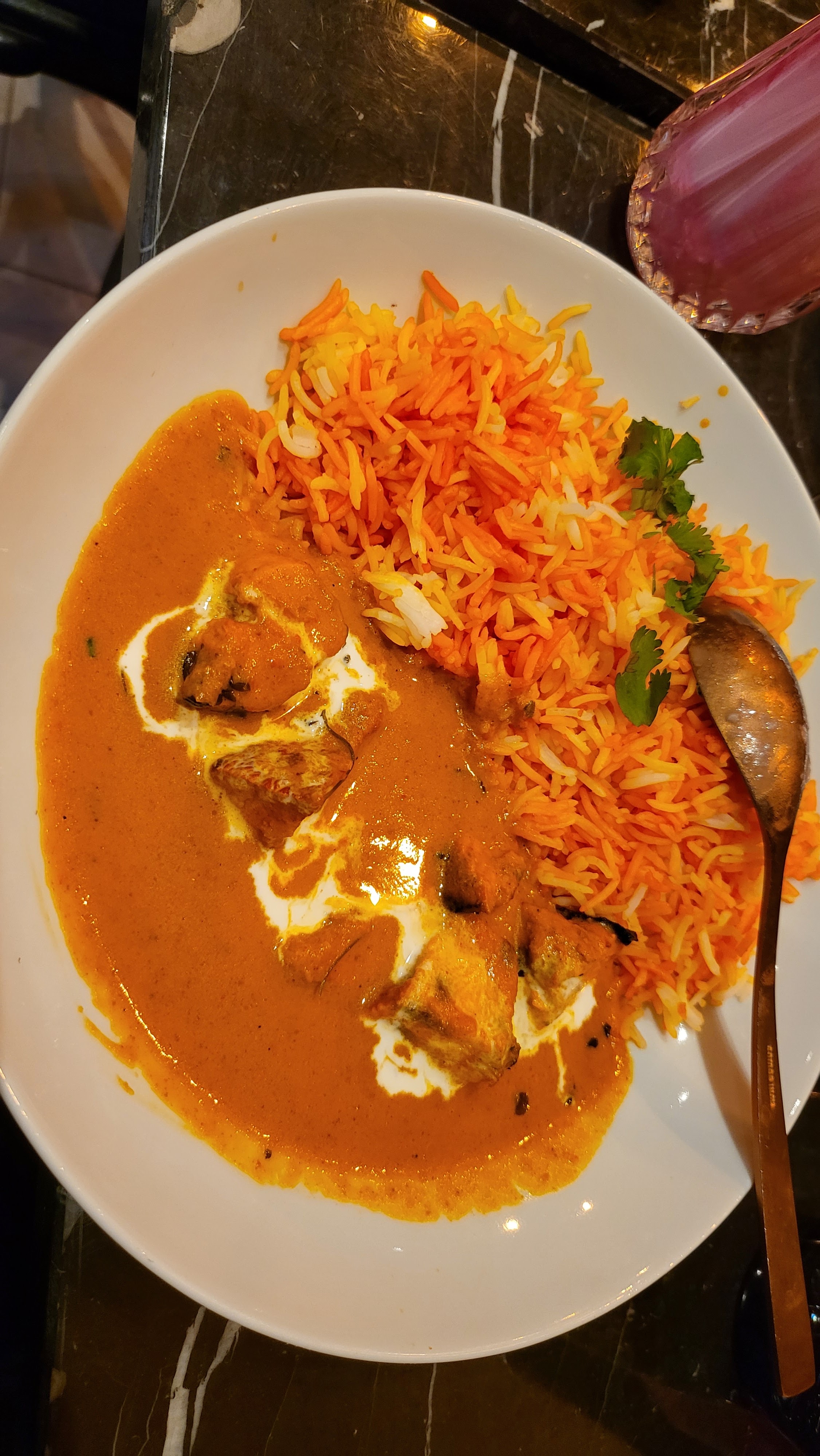 Service au top par une jolie demoiselle, ainsi qu’une nourriture délicieuse avec un butter chiken vraiment magnifique !! Venez manger ici je vous le conseil fortement !