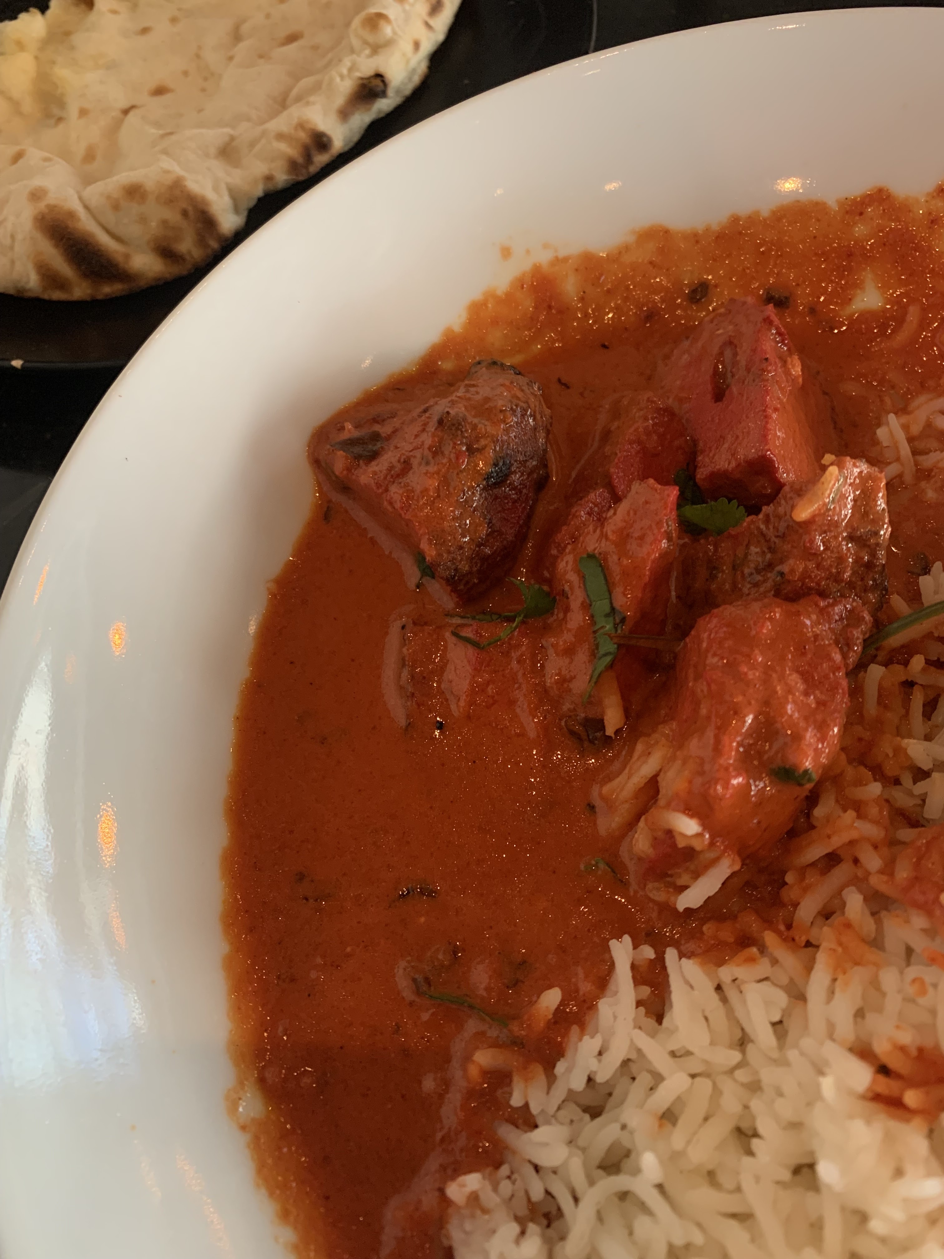 C'est une authentique cuisine indienne J'aime le poulet tikka masala avec du naan à l'ail Expérience géniale