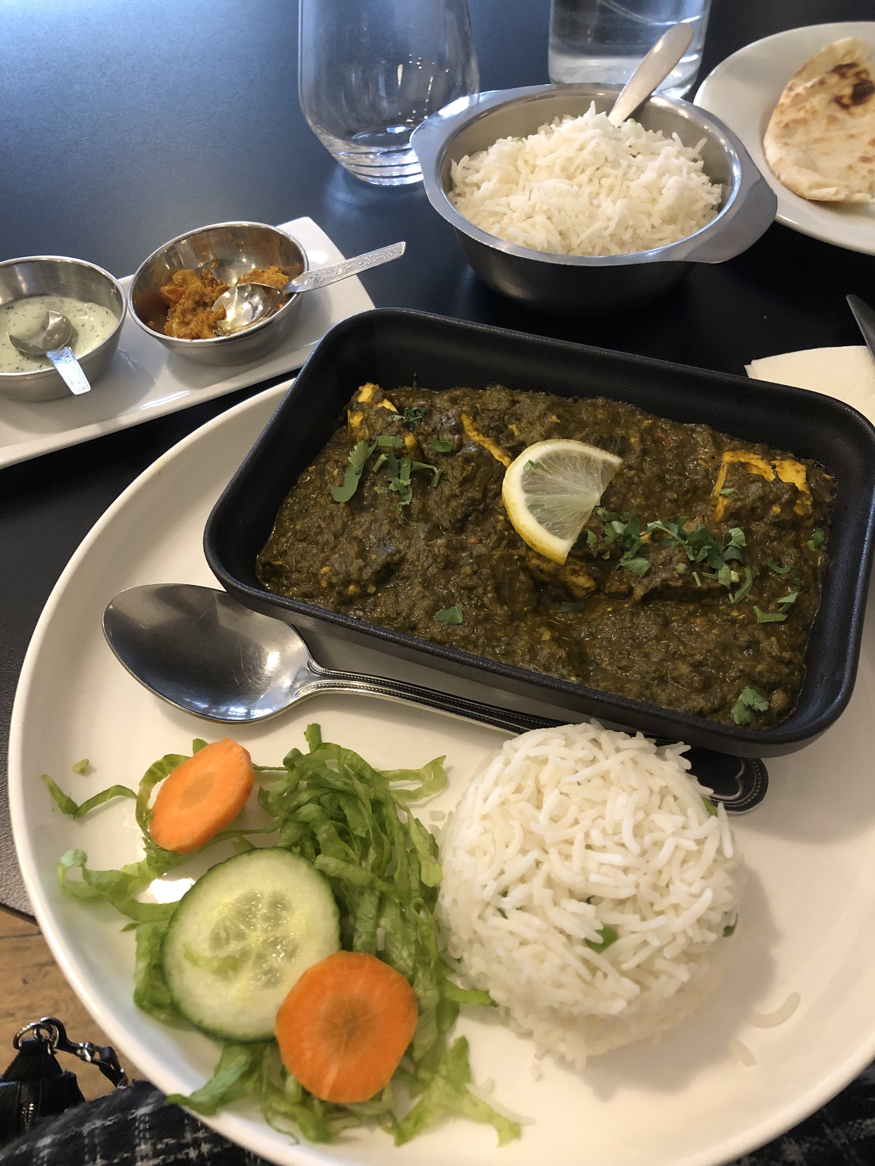 Un très bon accueil de la part du gérant et assez peu de monde pour un jeudi soir. Nous avons pris un byriani de poulet (relevé), des naans et pour ma part un agneau saag. Les plats étaient de qualités et les saveurs intéressantes, le petit plus : la galette servie comme apéritif était surprenante et l'ambiance, sur fond de clips bollywoodiens complète la toile. En résumé, c'était une excellente expérience et je n'hésiterai pas à y retourner !