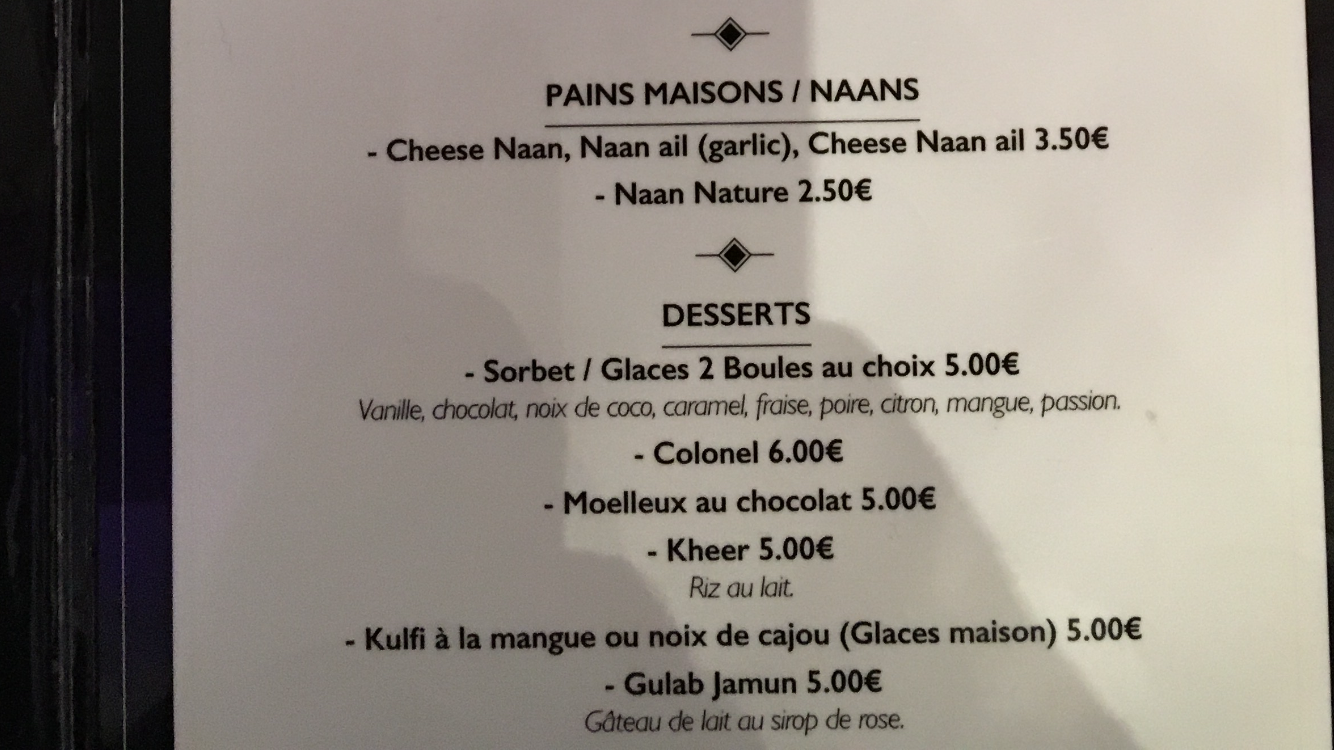 Pas le sens du commerce, aucun geste commercial, délai d'attente important hors plats comme le butter chicken. prix élevé: entrée à 9€ sans plus, dessert décevant... Pas d'intérêt de prendre la formule à 28/30€ comparé à la formule classique à 13/15€. Je déconseille.