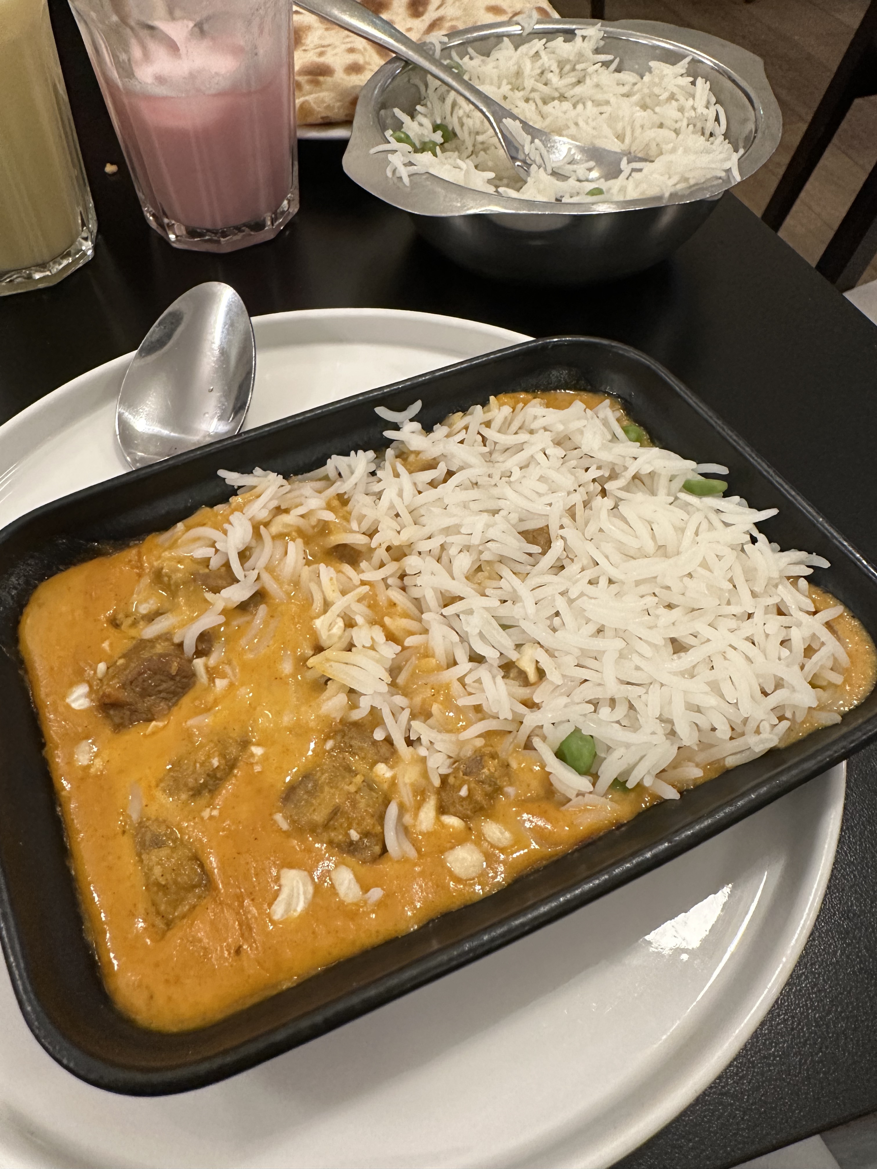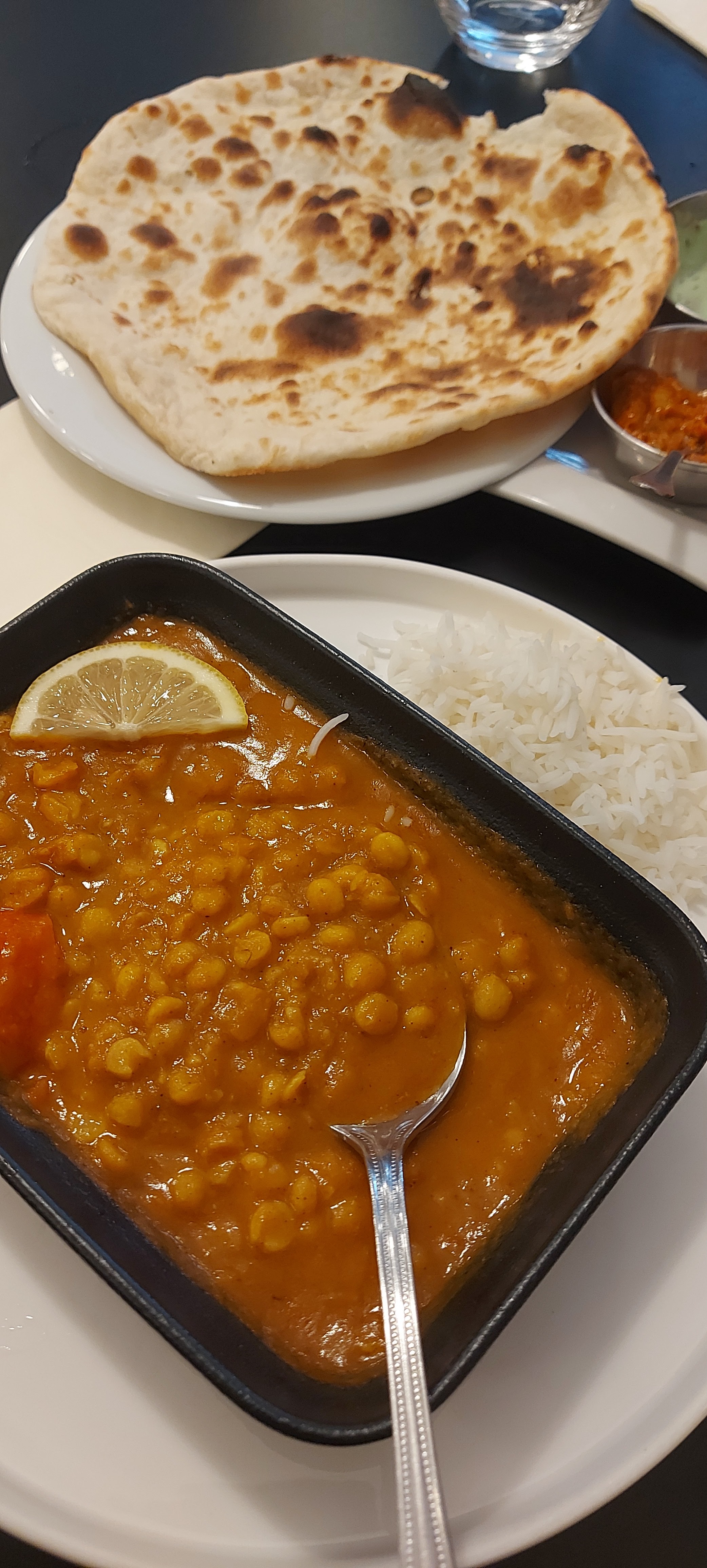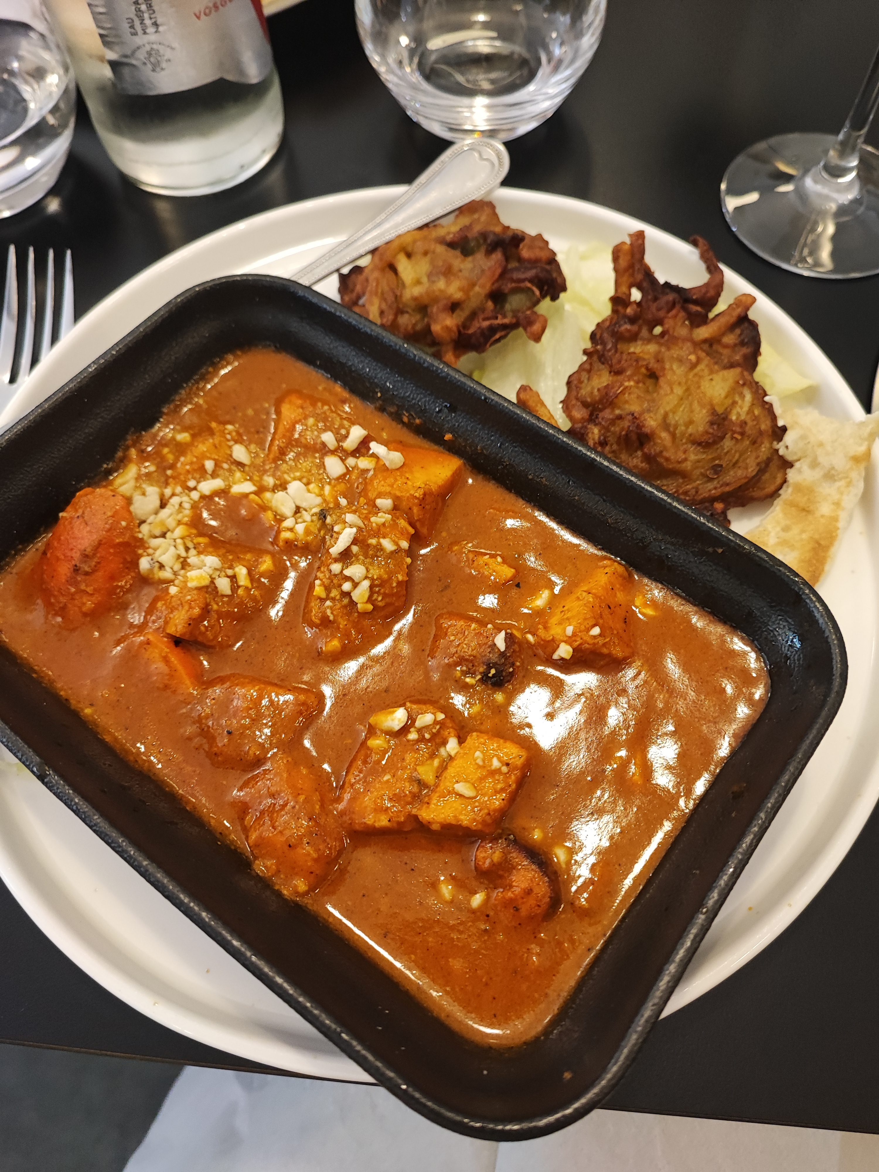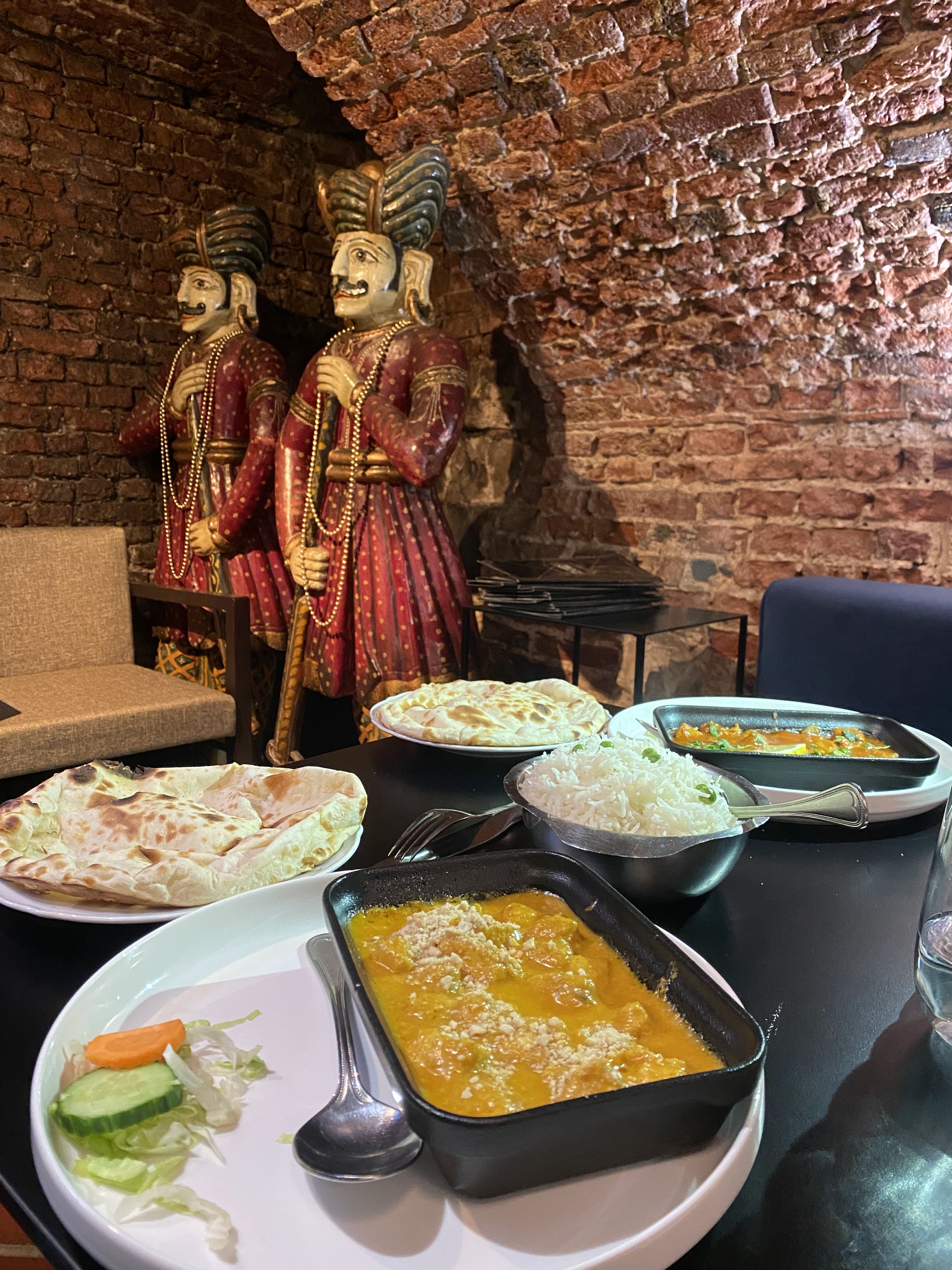 J'ai commandé un plat aux crevettes qui était délicieux , Par contre le thème indien au pakistanais est bien absent le côté ambiance aussi très froide silencieux !! Une petite musique serai pas mal pour ne pas entendre la conversation des clients à côté 😁