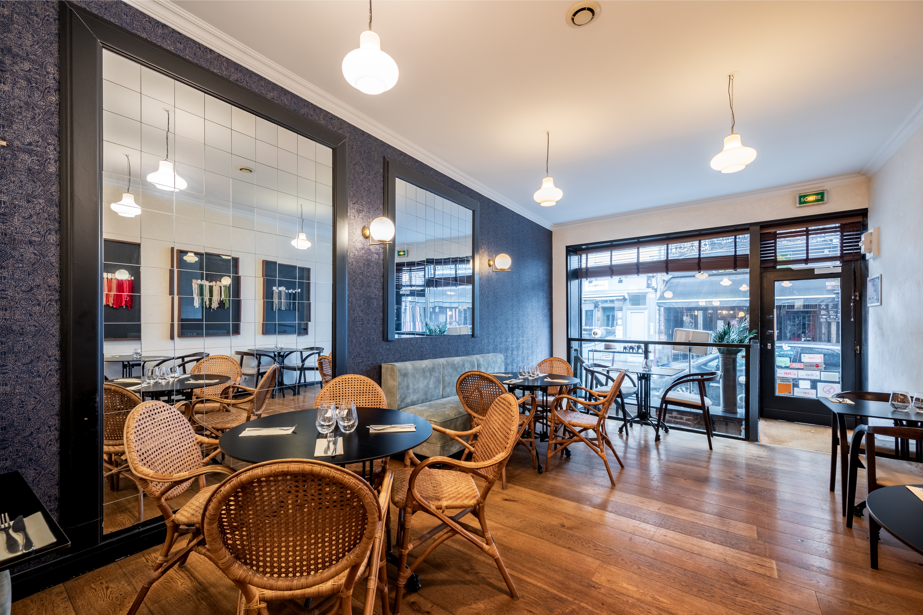 Un lieu convivial dans une ambiance moderne mon seul regret et d avoir été placé à côté de l accueil avec le bruit des assiettes et des commandes qui fusent... et un manque de séparation des tables car nous mangeons sur la même banquette que d autres couple