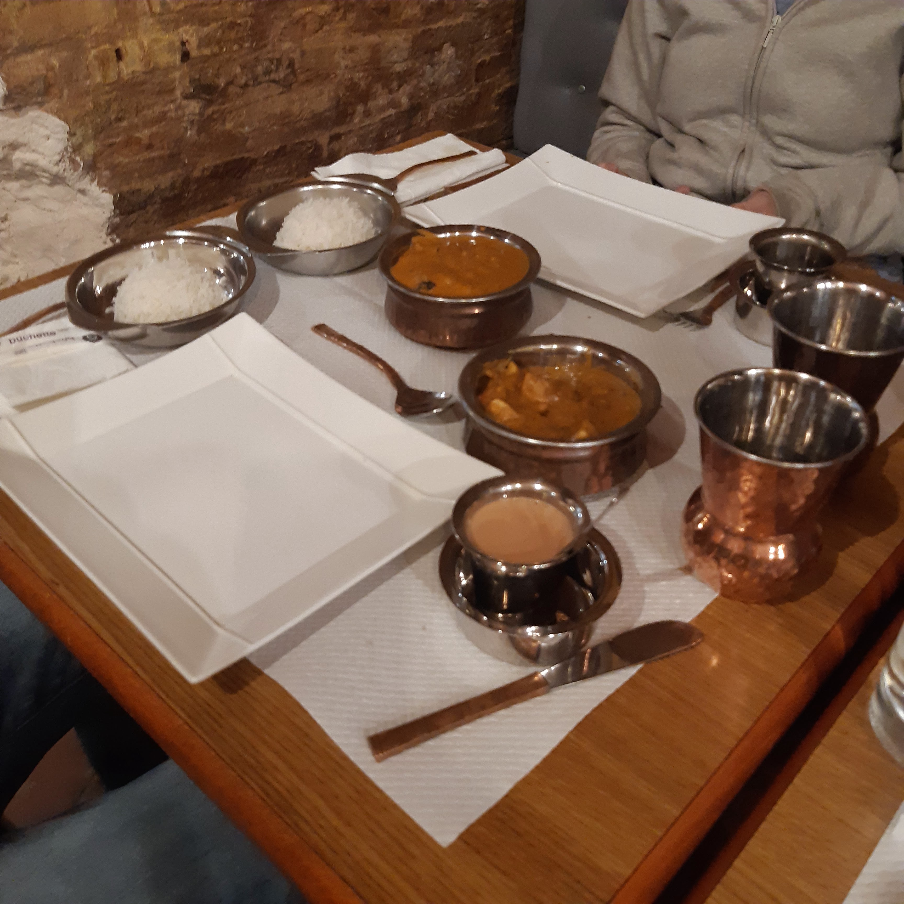 Les plats sont très bons mais trop peu copieux à mon goût ! J'ai pris un Butter chicken qui m'a tout juste suffit alors que j'avais pris un cheese naan en complément et que je suis un petit gabarit 5-6 morceaux de poulet me paraissent trop peu pour un plat à 15€ De plus, bien que l'équipe soit très aimable, le service n'est pas très bien organisé et nous avons eu nos naan un long moment après nos plats (que nous avions du coup eu le temps de bien entamer) Le cadre où l'on mange au sous sol est sympathique mais sans plus, l'entrée est vieillote et peu entretenue Dans l'ensemble c'est un bon restaurent mais dont le rapport qualité prix n'est pas satisfaisant selon moi