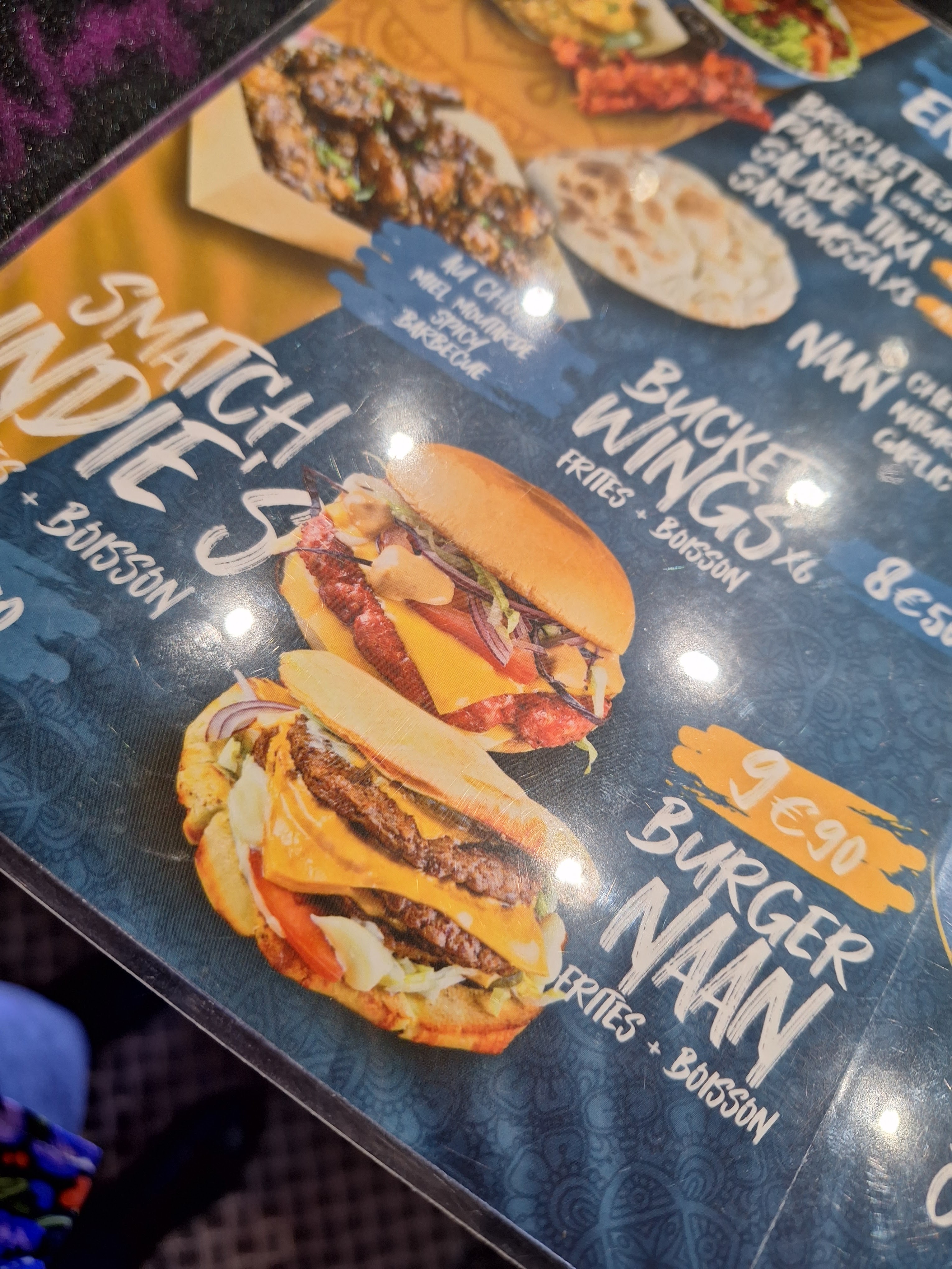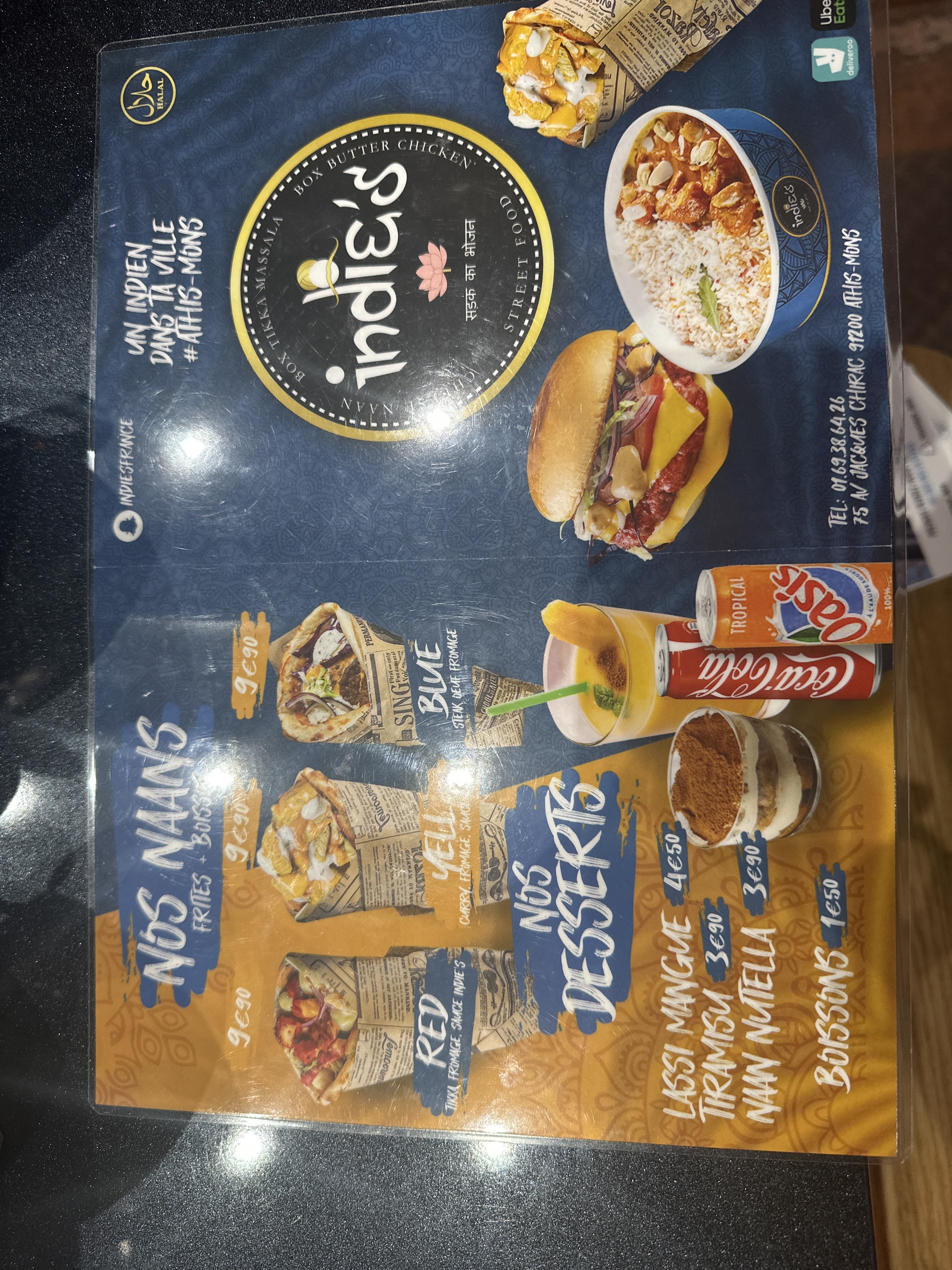 Super concept sur Athis Mons. Restaurant où l'on peut manger sur place, la décoration est faite avec goût j'ai beaucoup aimé ! Que dire des plats proposés ? Vraiment EXCELLENT ! On a testé la salade Tika, le Burger Naan très original, le Smatch Indie's un véritable coup de cœur, les Butter Chiken sont supers bref foncez c'est très goûteux et le service est top !