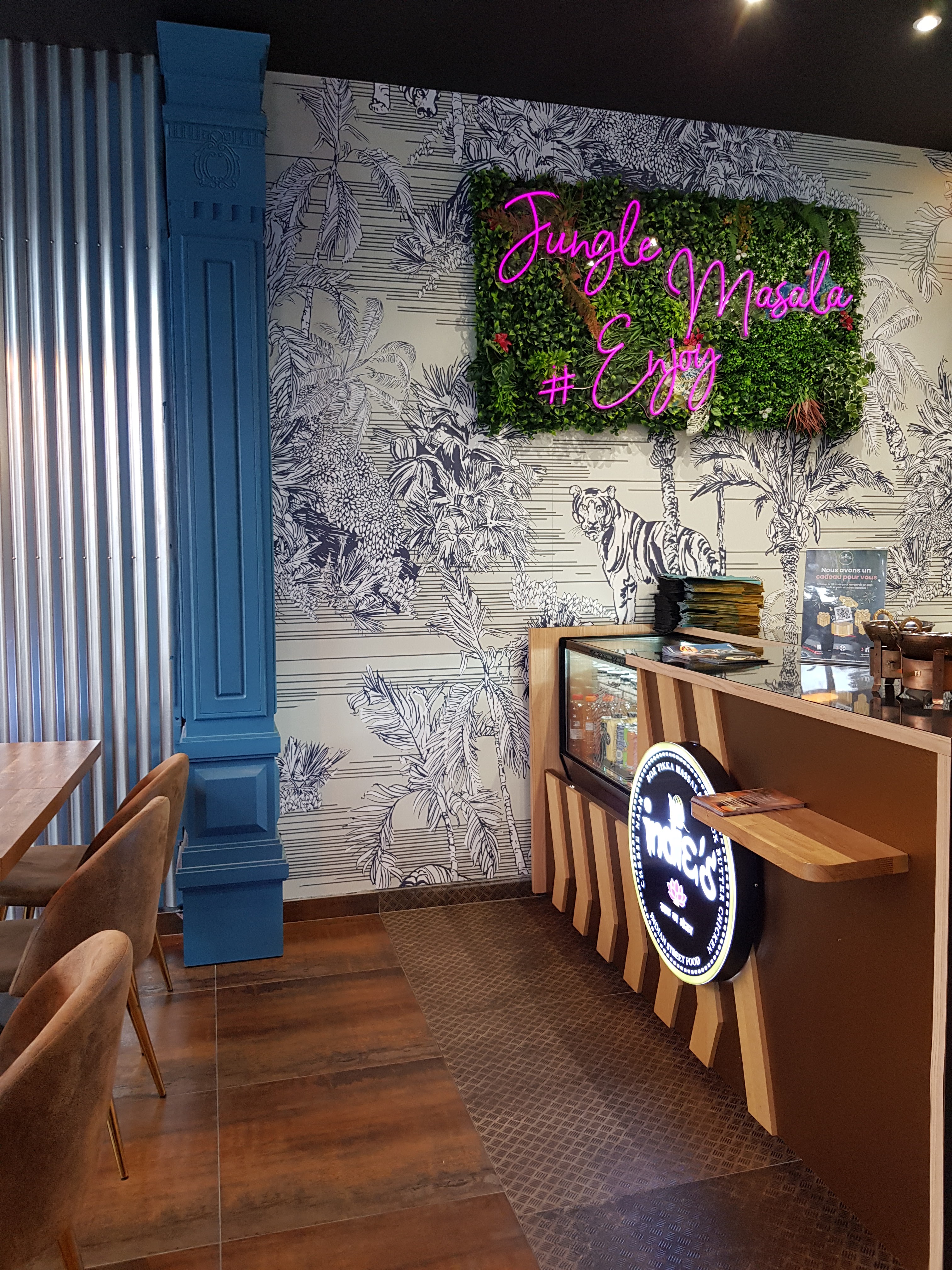C’est tout ce qu’il manquait dans le secteur un Street Food indien !!! J’ai testé le sandwich nan ( le red ) qui était incroyablement bon on a l’impression que la viande est cuite au tandoor vu le goût fumée le cheese nan Était bien remplie de fromage , Ma Femme a pris un Butter chicken en plat excellent aussi les Portions sont très bien , magnifique restaurant qui fais à la fois moderne et classe j’ai hâte de tester les autres Plat courage à vous 💪