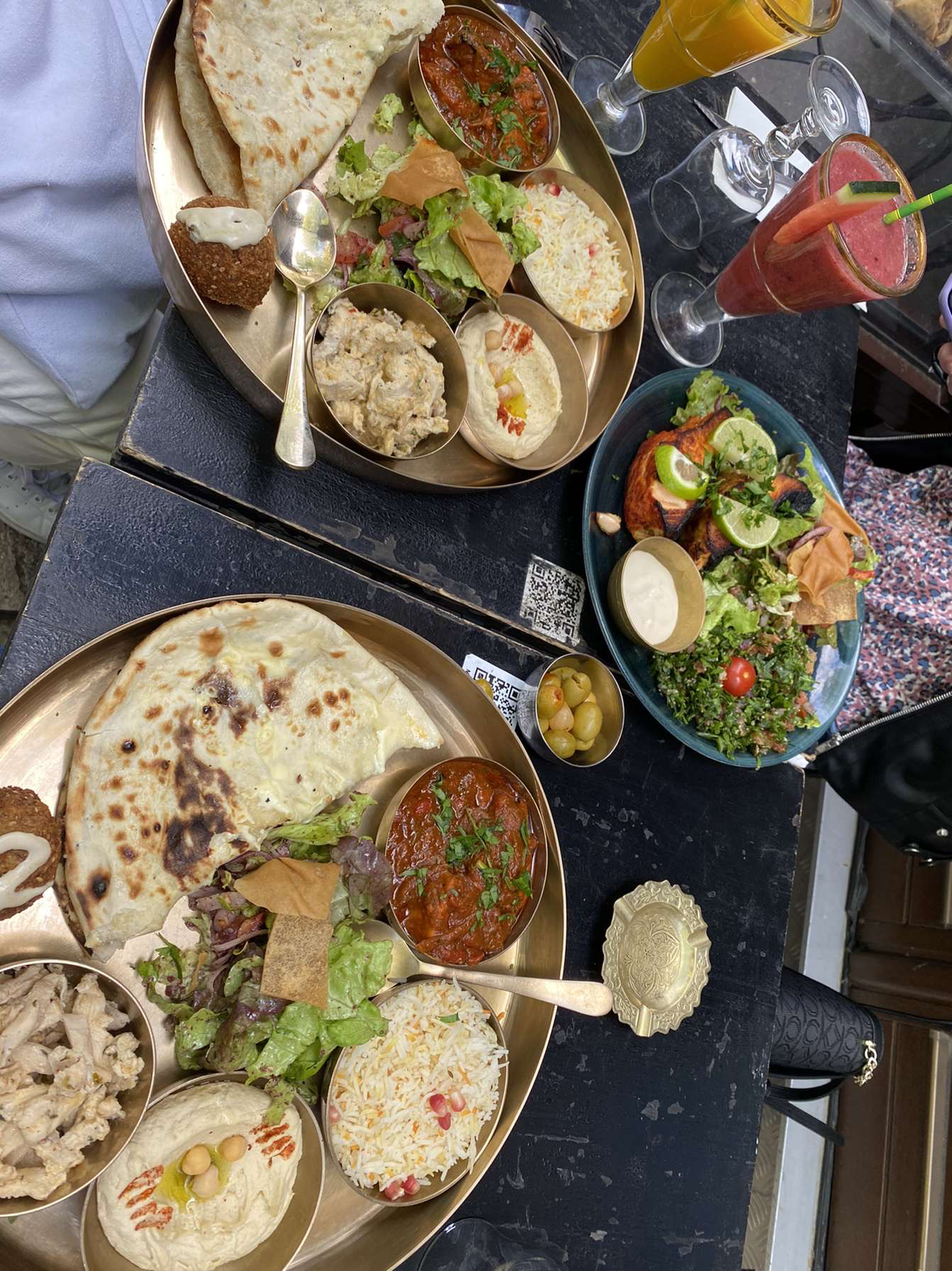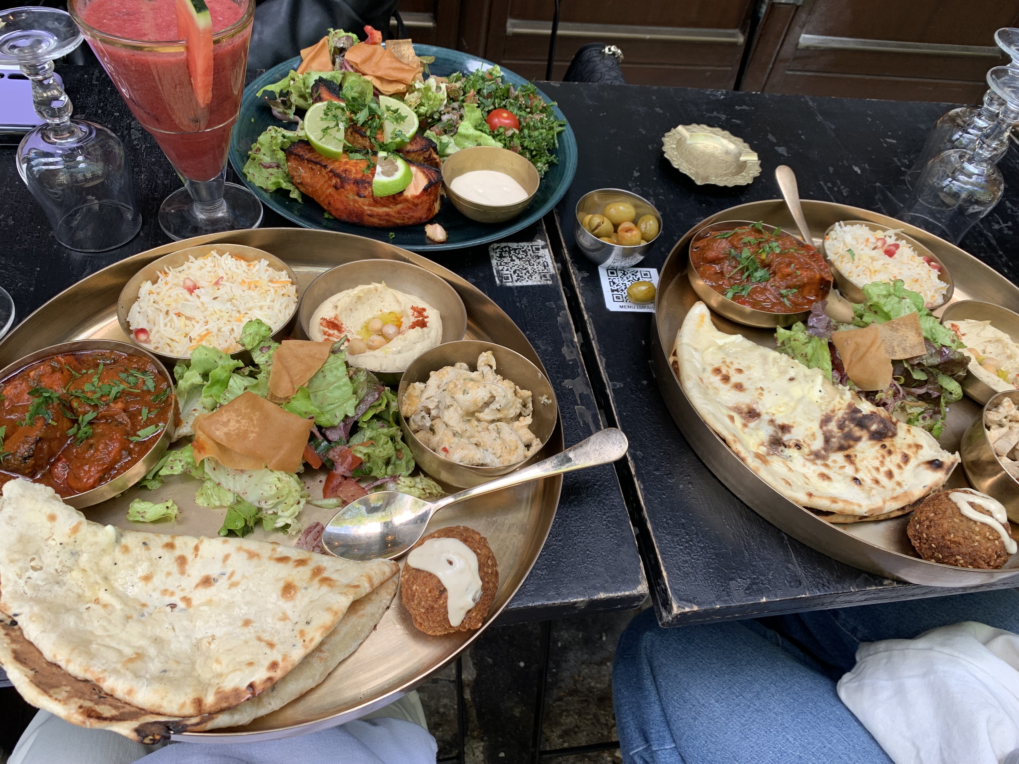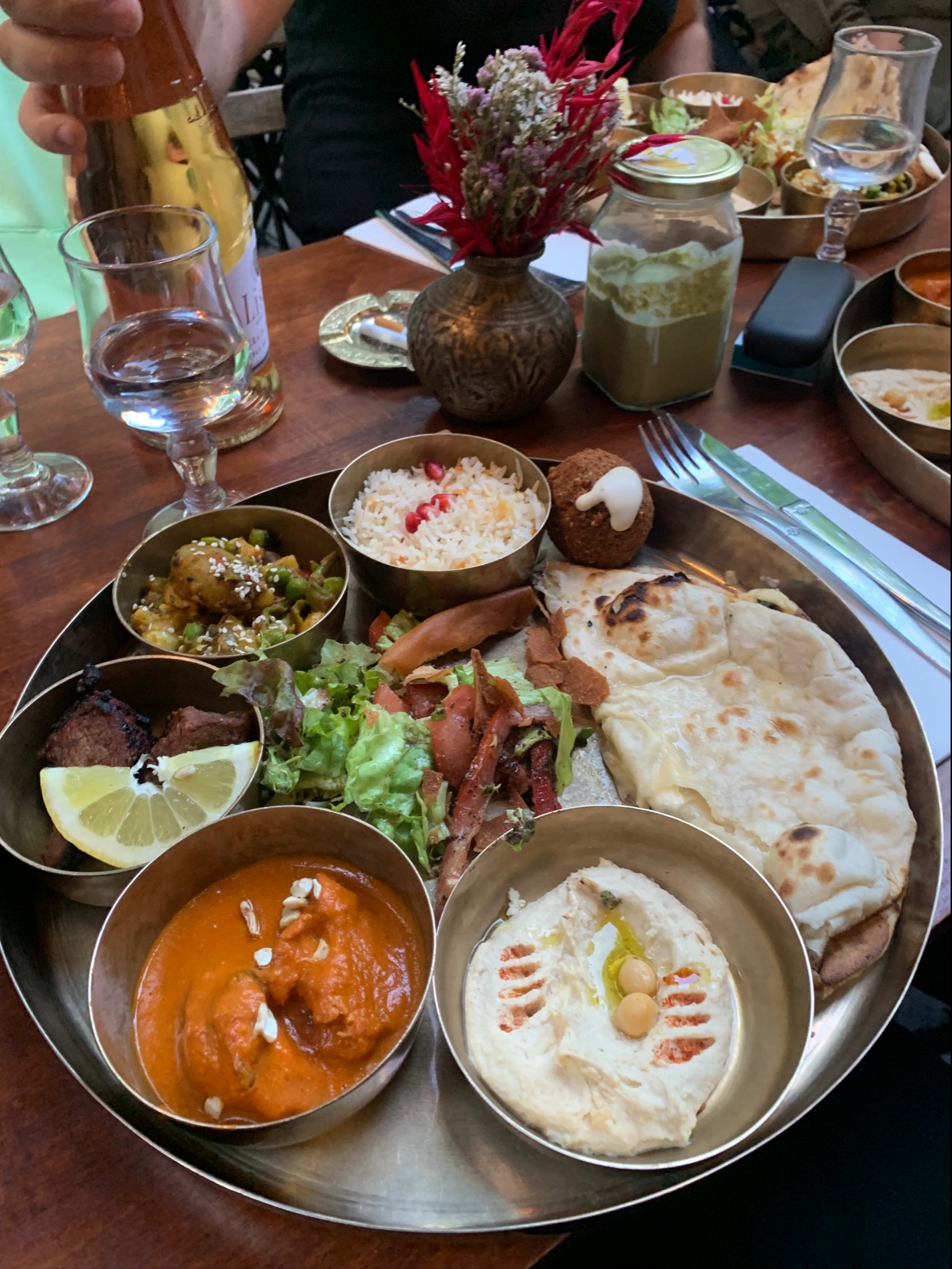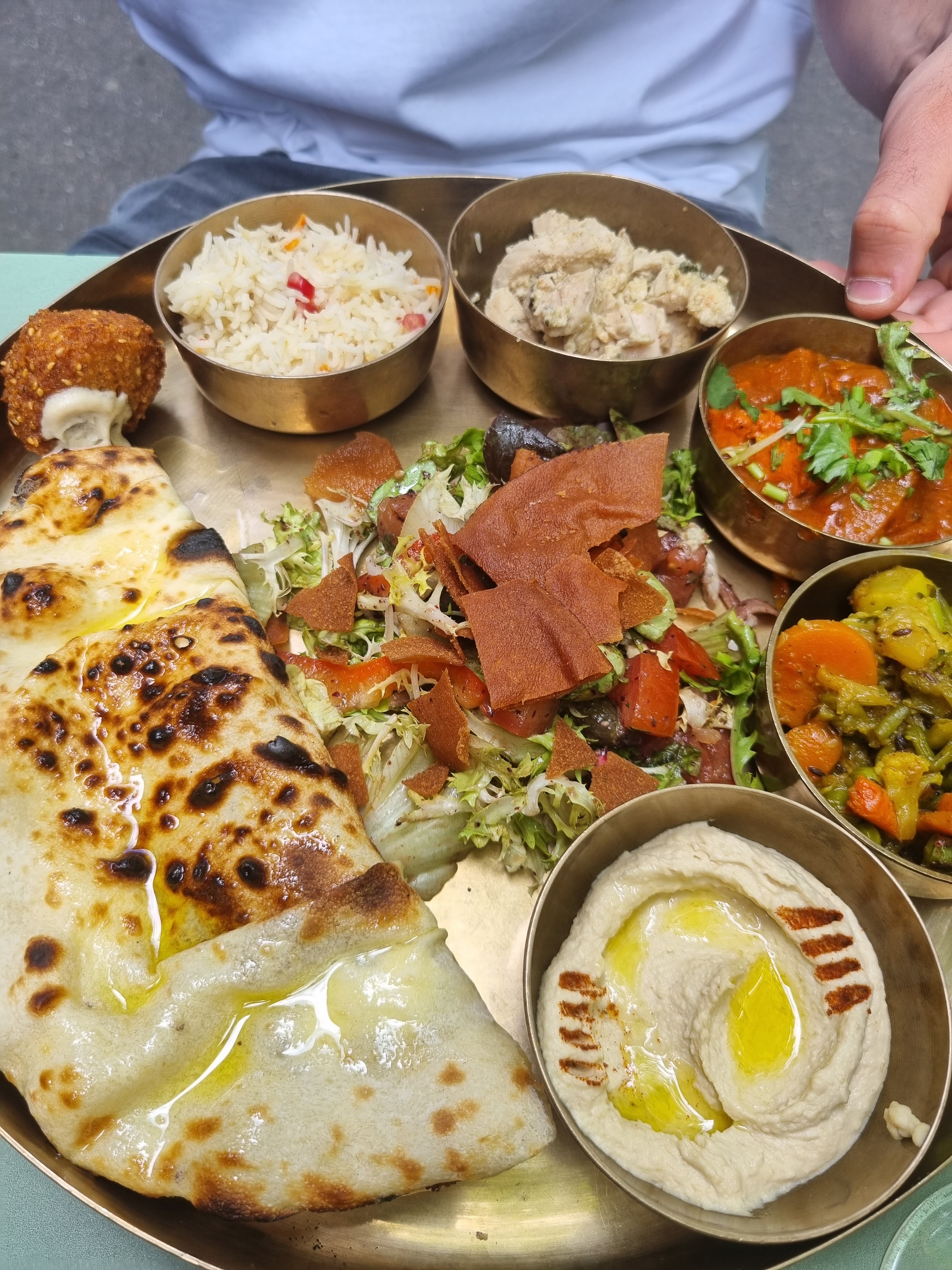 C'est un endroit que j'ai découvert grâce à un ami. J'y suis allé et j'ai pris le menu phare qu'ils propose qui est le Thali Yah Mezze. C'est une assiette mixte, avec diverses garnitures faisant la corrélation entre la cuisine Indienne et Libanaise. C'était correct et visuellement ça donnait faim, malheureusement il y a des petits détails qui ont fait que j'ai trouvé cela correct. Le houmous est bon mais il manque de saveur au niveau du sésame. Le butter chicken est très bon il n'y a rien à redire. Le riz safran est bon. La falafel était trop sec et on ne sentait pas les différents parfums à l'intérieur. C'est dommage. La dahl de lentilles manque d'épices. Et le dernier Mezze au poulet était très sec. Le naan au fromage quand à lui je n'ai pas eu de trace de fromage par contre il était trop cuit tout fin et tout sec, c'est dommage à nouveau. Le cocktail du jour était en fait un smoothie aux fruits.. 😂