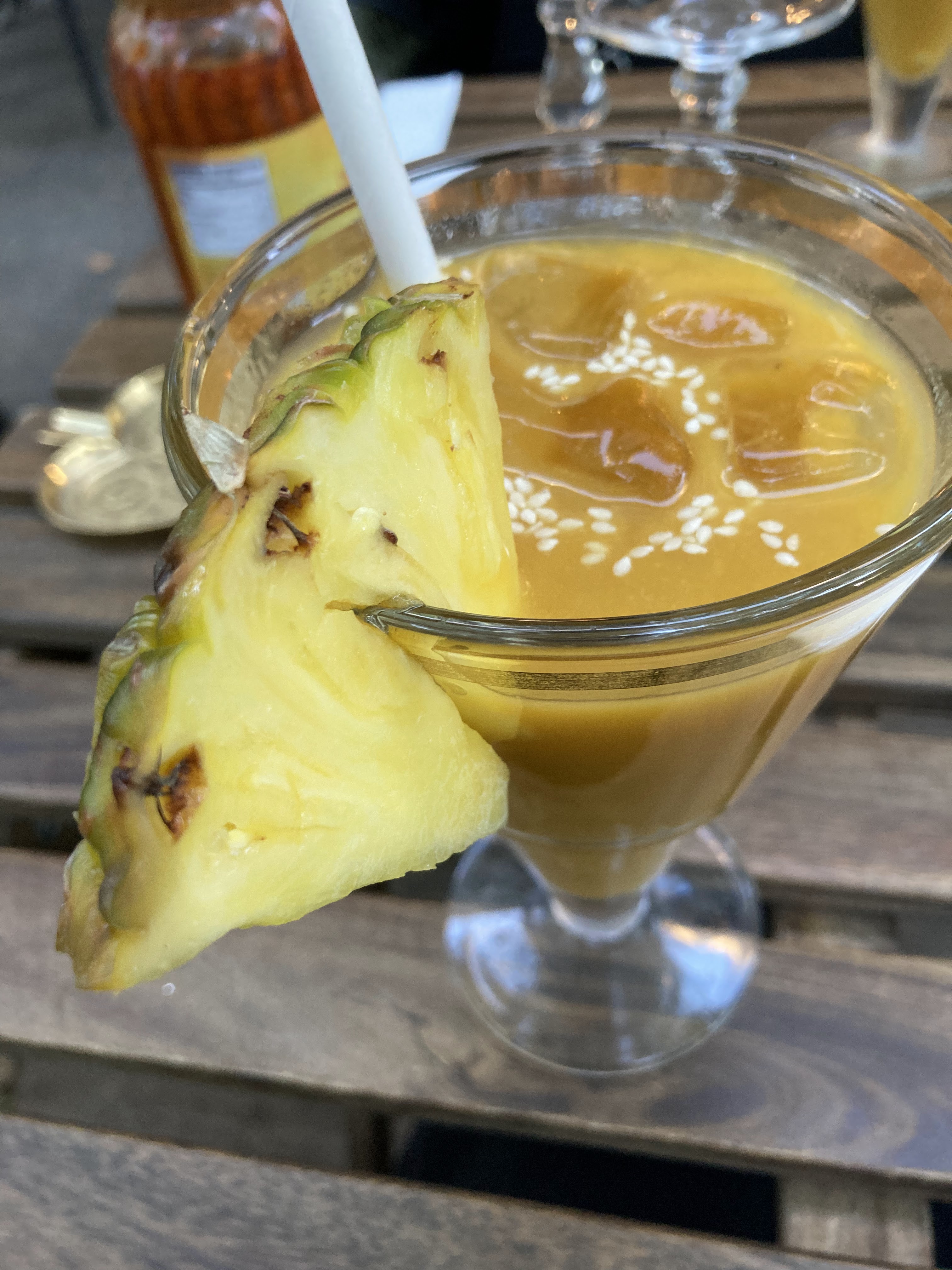 Tout avait bien commencé: on nous installe gentiment en terrasse. Au moment de passer la commande , le serveur agacé qu’on ne prenne que des boissons , entrées et desserts nous dit qu’il ne pouvait nous laisser en terrasse si nous ne prenions pas minimum par personne un plat ou 3 entrées. Le ton était très irrespectueux et nous a fait comprendre que c’était soit être à l’intérieur soit partir . Nous avons donc décidé de partir, dommage c’était dans mes coup de cœurs Instagram à tester.