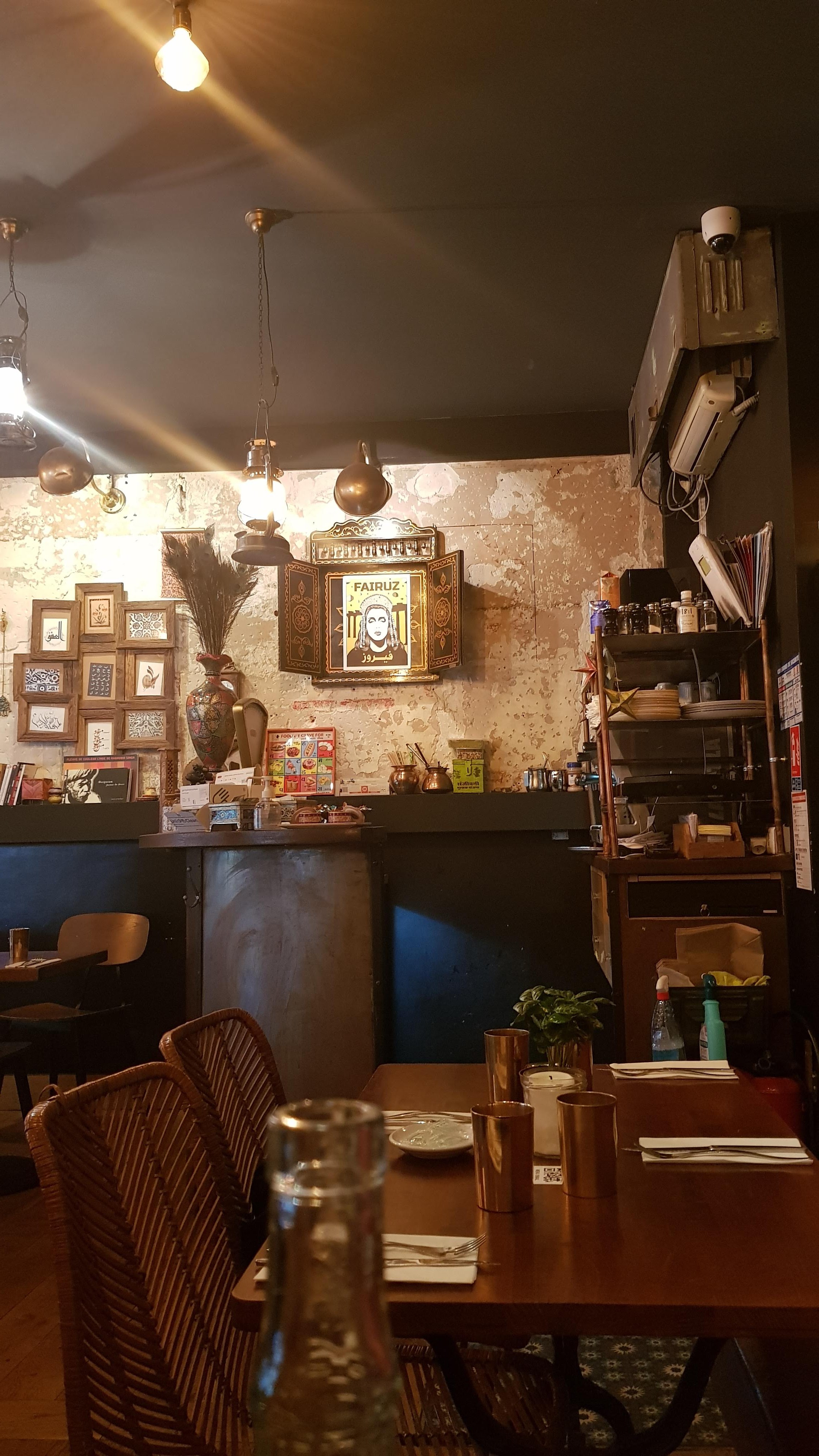 Mélange réussi des cultures libanaise et indienne. Décoration et ambiance chaleureuses. Cuisine absolument délicieuse, plats copieux, épicés à souhait. Un vrai régal pour les papilles ! Seul bémol : pas d'alcool à la carte, même pas de bière, c'est dommage