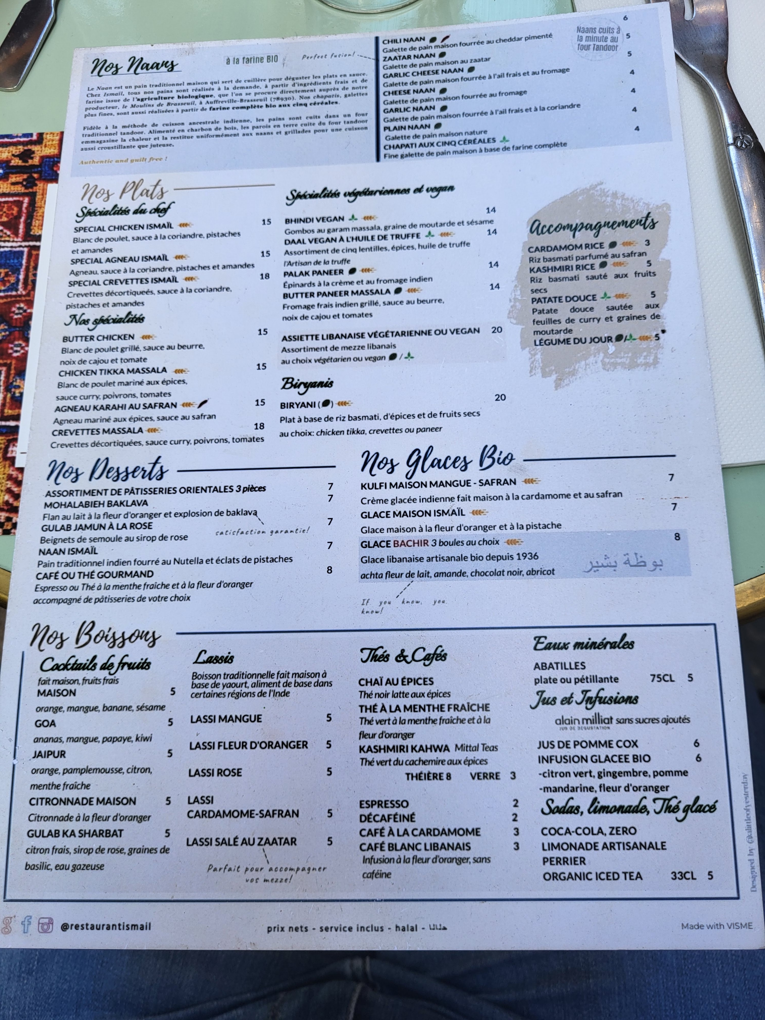 Très bien accueilli par l'équipe Ismaïl. Variété de plats aussi délicieux les uns des autres. Ma boisson préférée le Lassi mangue. Je recommande pour découvrir une carte originale.