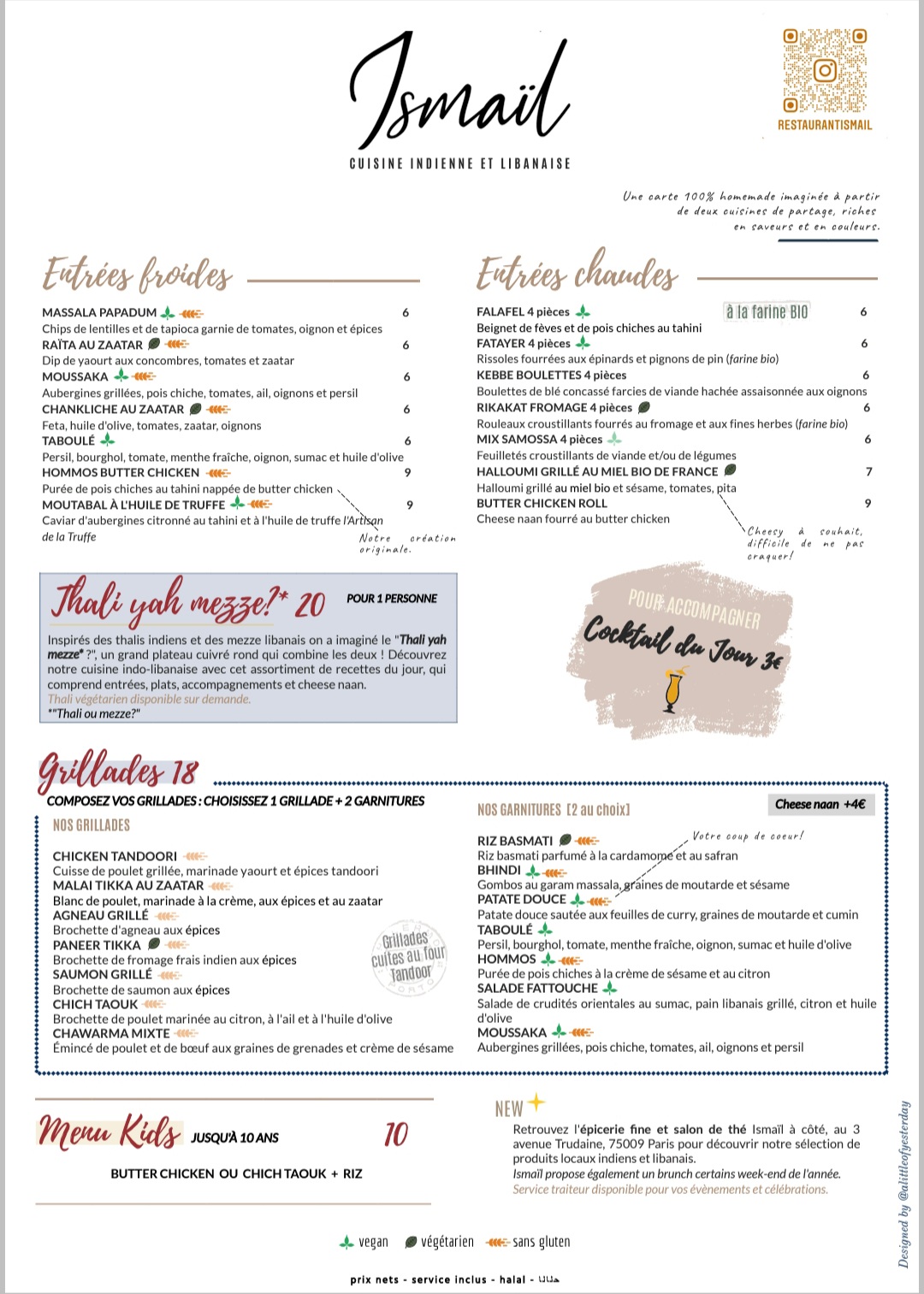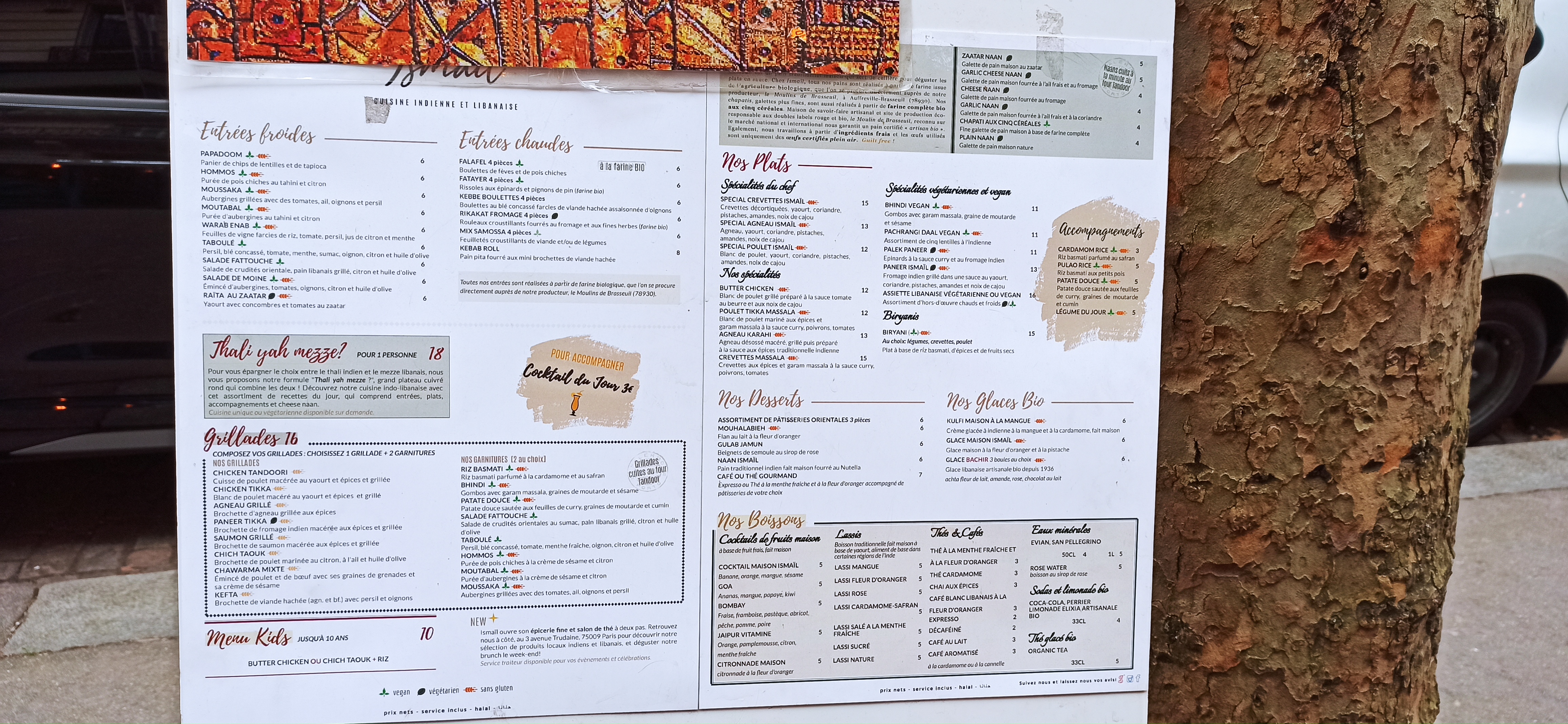 Durant l’année 2024, je suis allée 3 fois aux restaurants Ismaïl (à Rivoli et rue Trudaine), avec à chaque fois des personnes différentes et le résultat fût unanime : c’est excellent ✨ Personnellement, j’aime beaucoup l’option thali, ça permet de goûter à pleins de différentes choses en même temps ! Mention spéciale pour les cocktails 🍹 qui sont super bon et frais !! Je recommande vivement