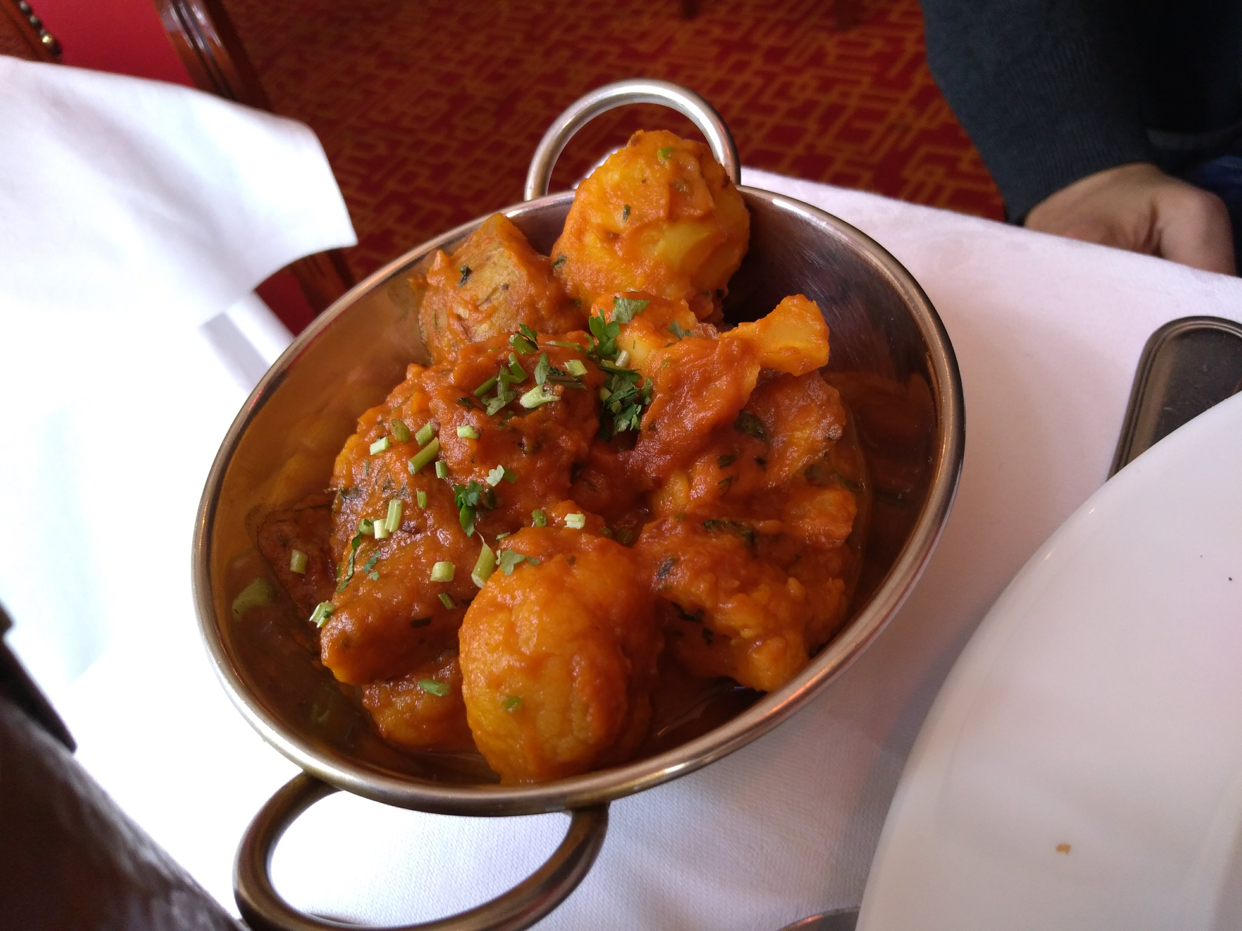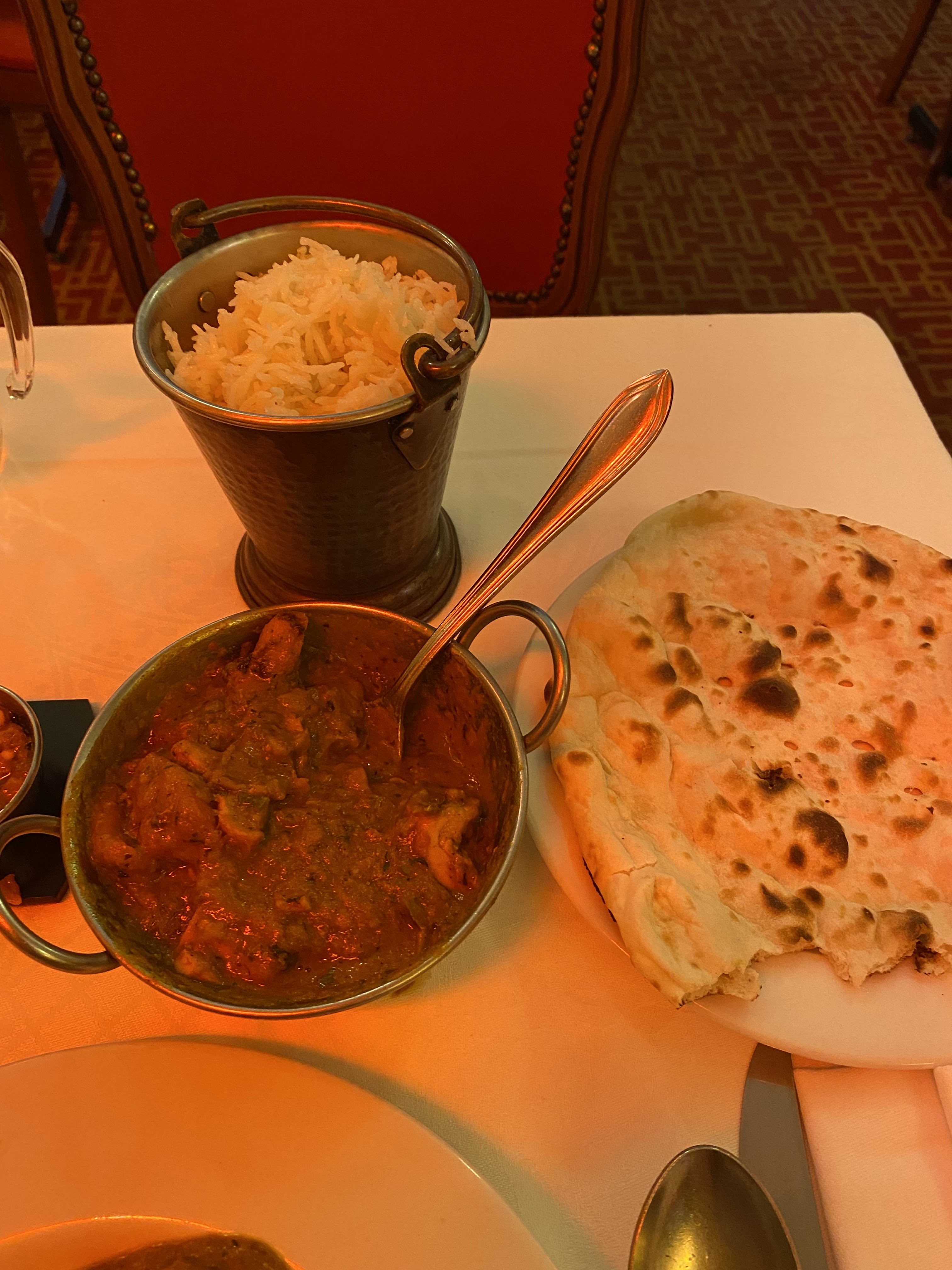 Belle déco, personnes très aimable. Les plats manquent de saveurs pour un restaurant indien, et surtout ce n'est pas du tout copieux... Manque de fromage dans leurs naan cheese Des petits bouts d'agneau qui se battent en duel, j'avais encore faim après