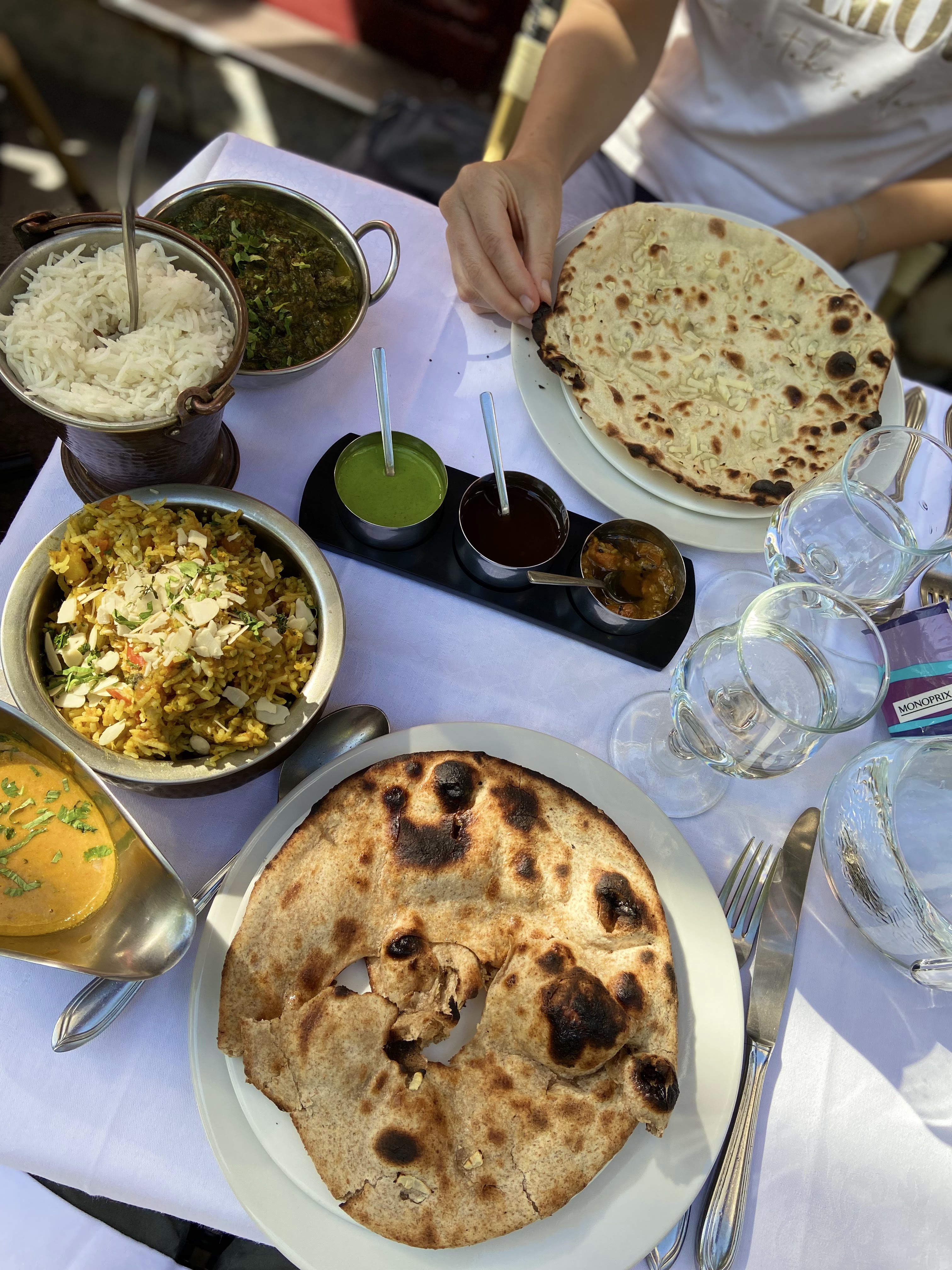Bon service, rapide. Bon poulet tikka et nan mais je n'ai pas trop aimé les plats. L'agneau n'était pas très tendre. Le cadre du restaurant est très joli et la petite terrasse très utile.