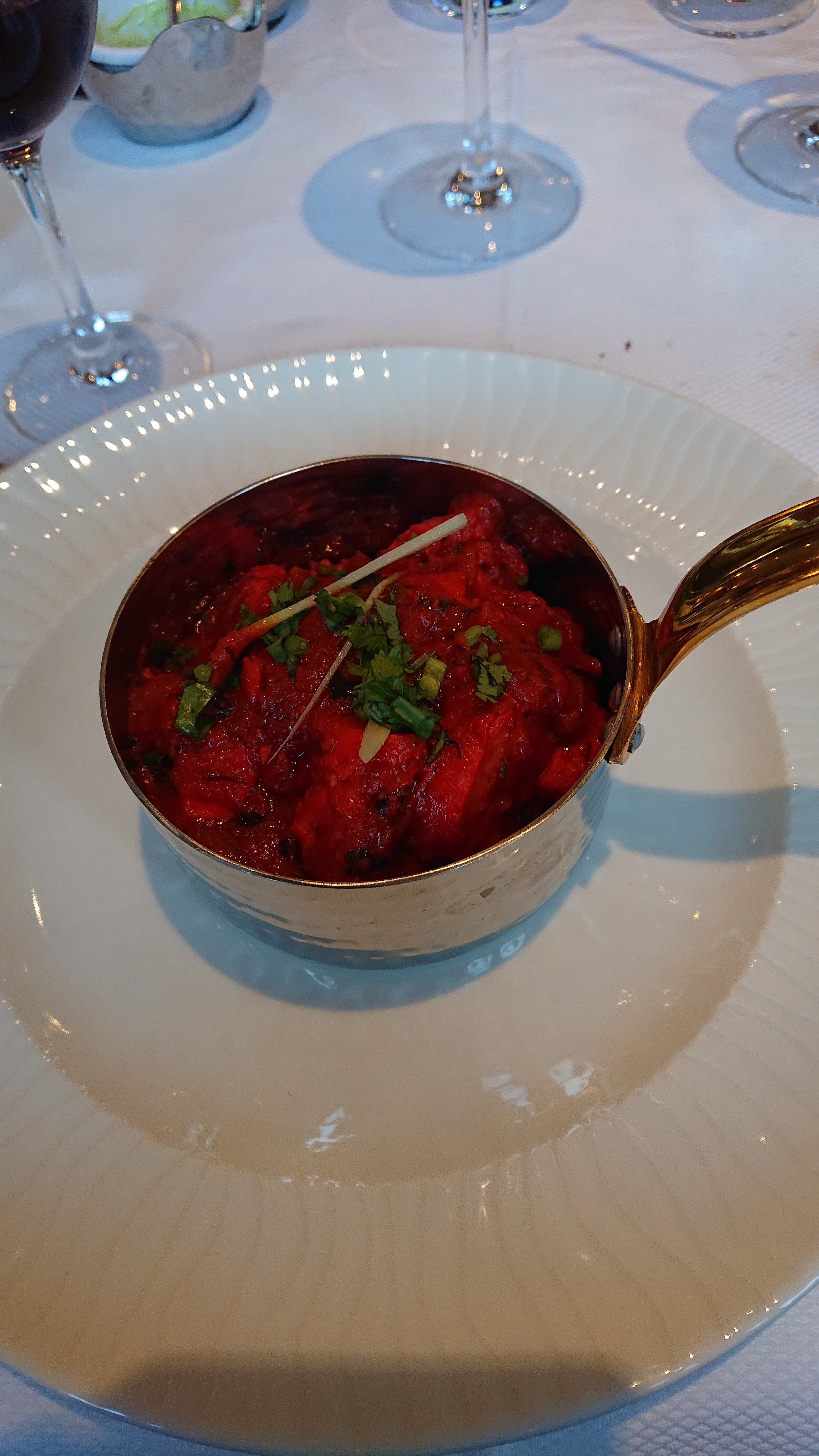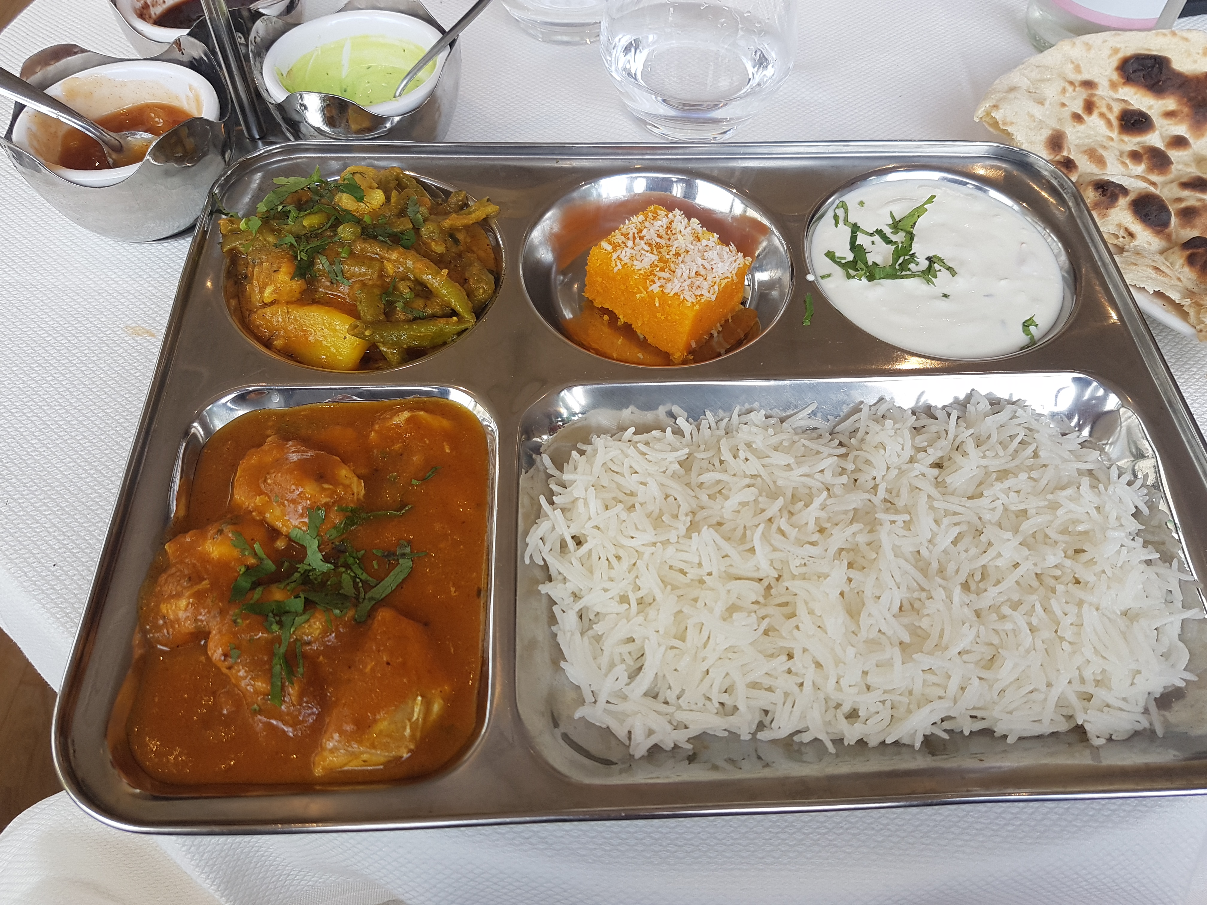Incroyable, belle découverte. Le poulet et l'agneau sont tendres et bien parfumés. Sauces délicieuses. Paneer nan au top. Decor magnifique, personnel agreable. Lassi de grosse taille. D ailleurs les entrees sont copieuse (poulet tikka). Un vrai dépaysement ! Hate d y retourner.