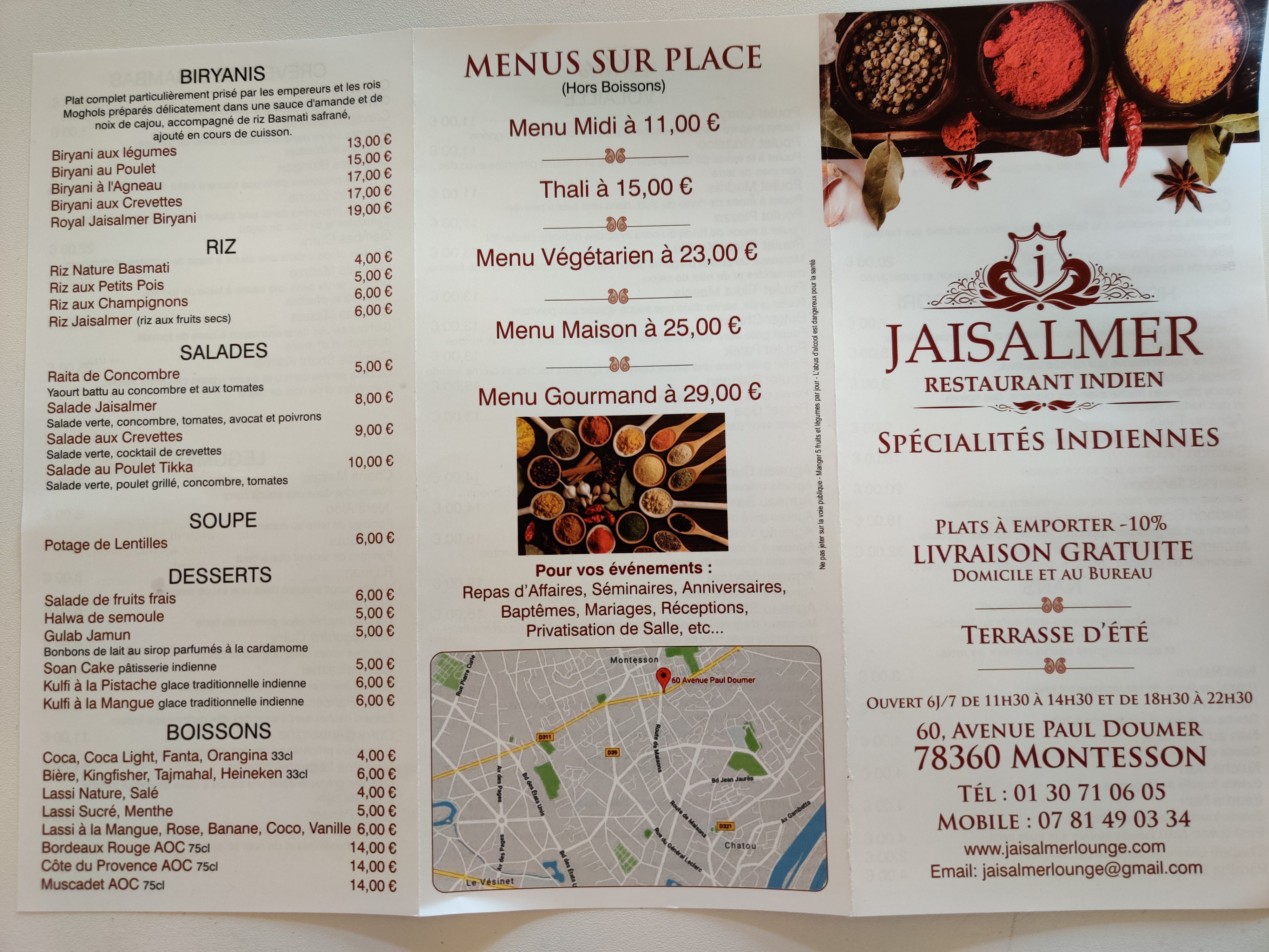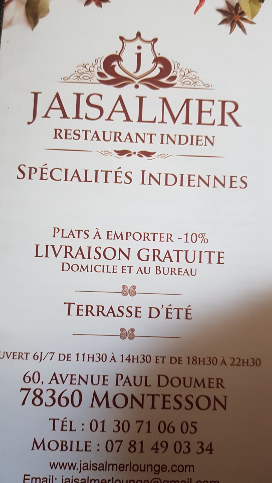 Bonjour, Nous pensons que vous vous êtes trompez de restaurant car nous ne livrons pas à domicile le midi. Notre restaurant se situe à Montesson 78360 Serait-il possible de supprimer le commentaire de Google s’il vous plait. Merci de votre compréhension RESTAURANT INDIEN JAISALMER