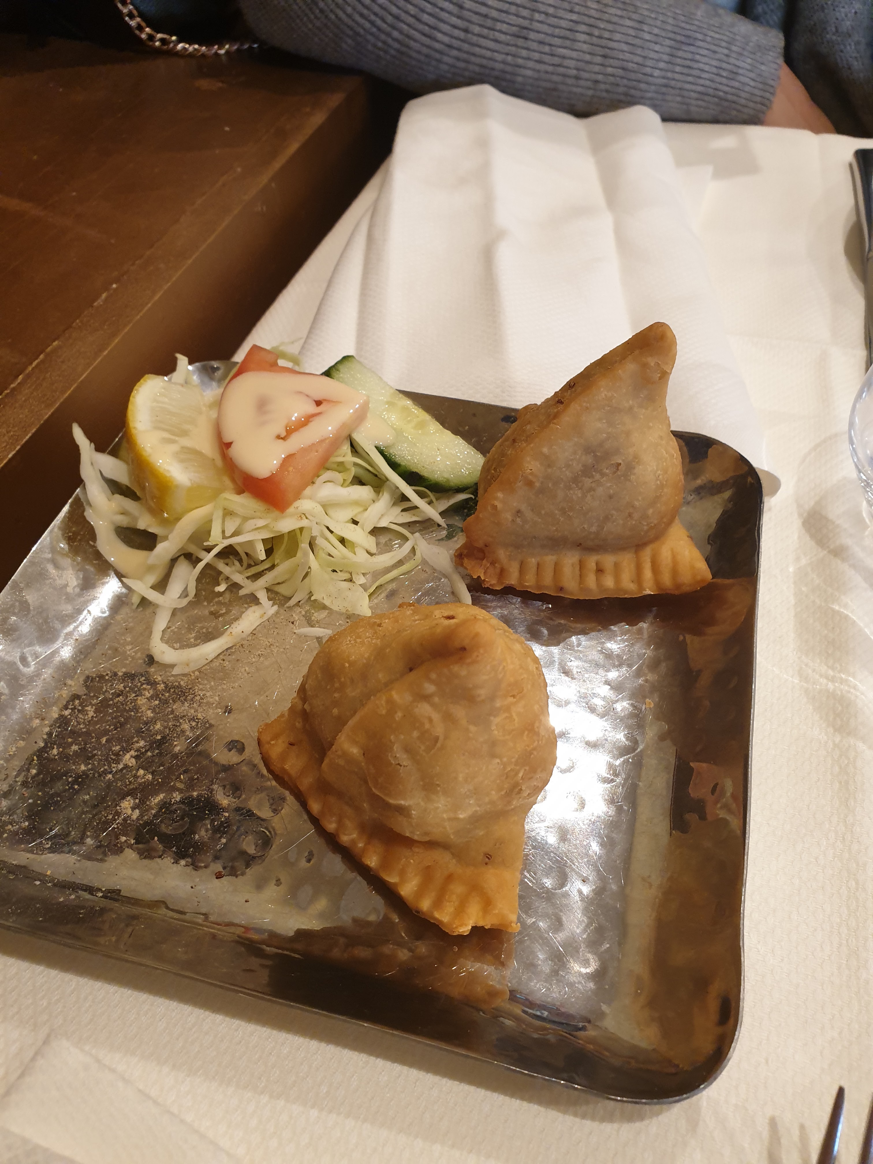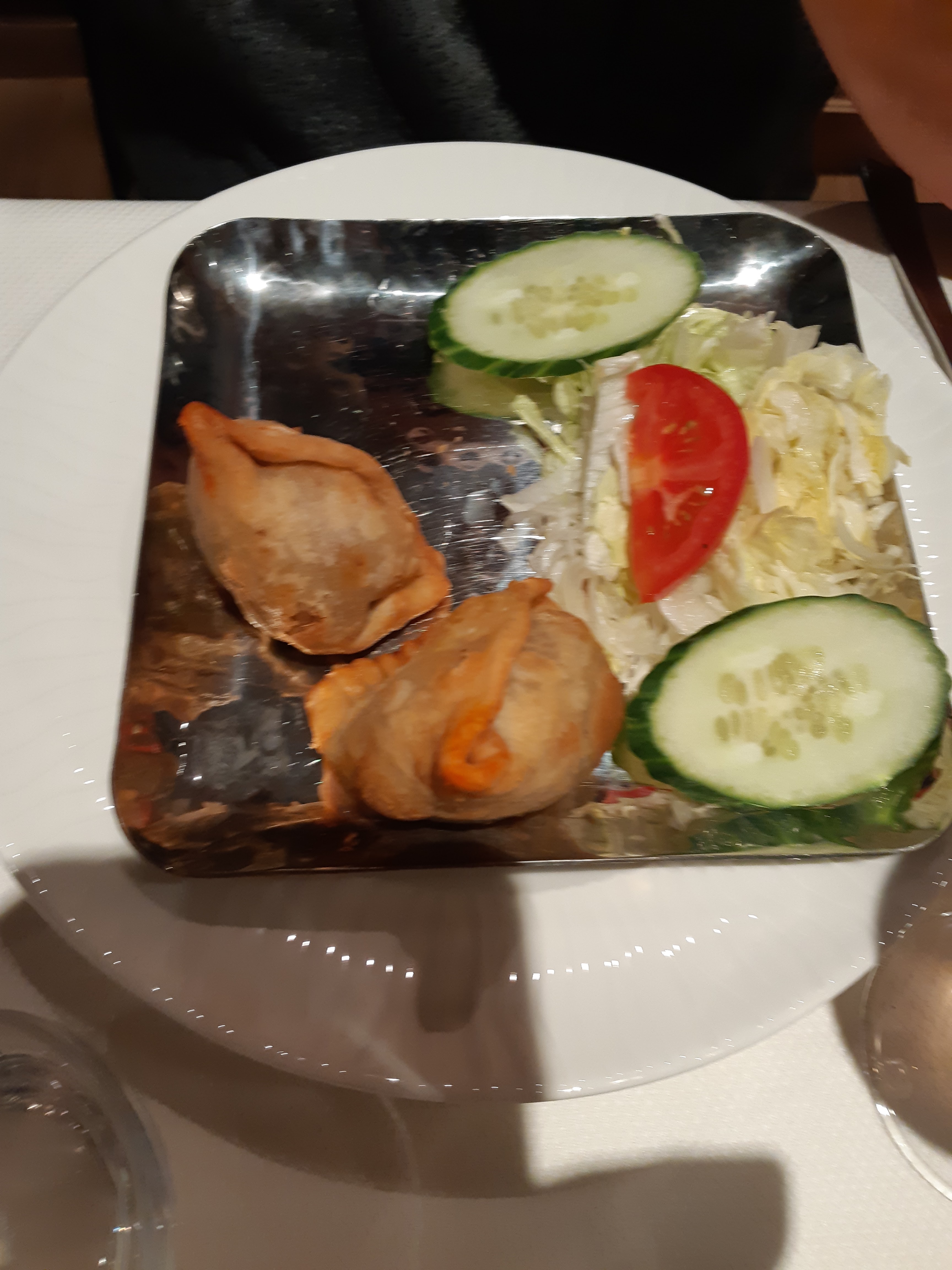 Meilleur restaurant Indien que j’ai fait Samosa top, poulet Madras et curry d’Aubergine délicieux