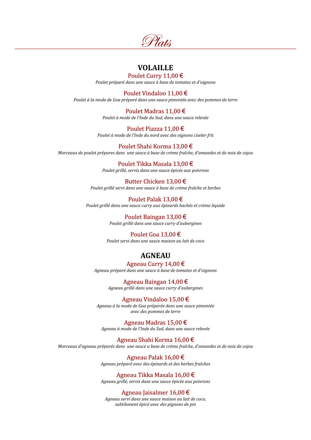 Indien de très bonne qualité et très bien cuisinés