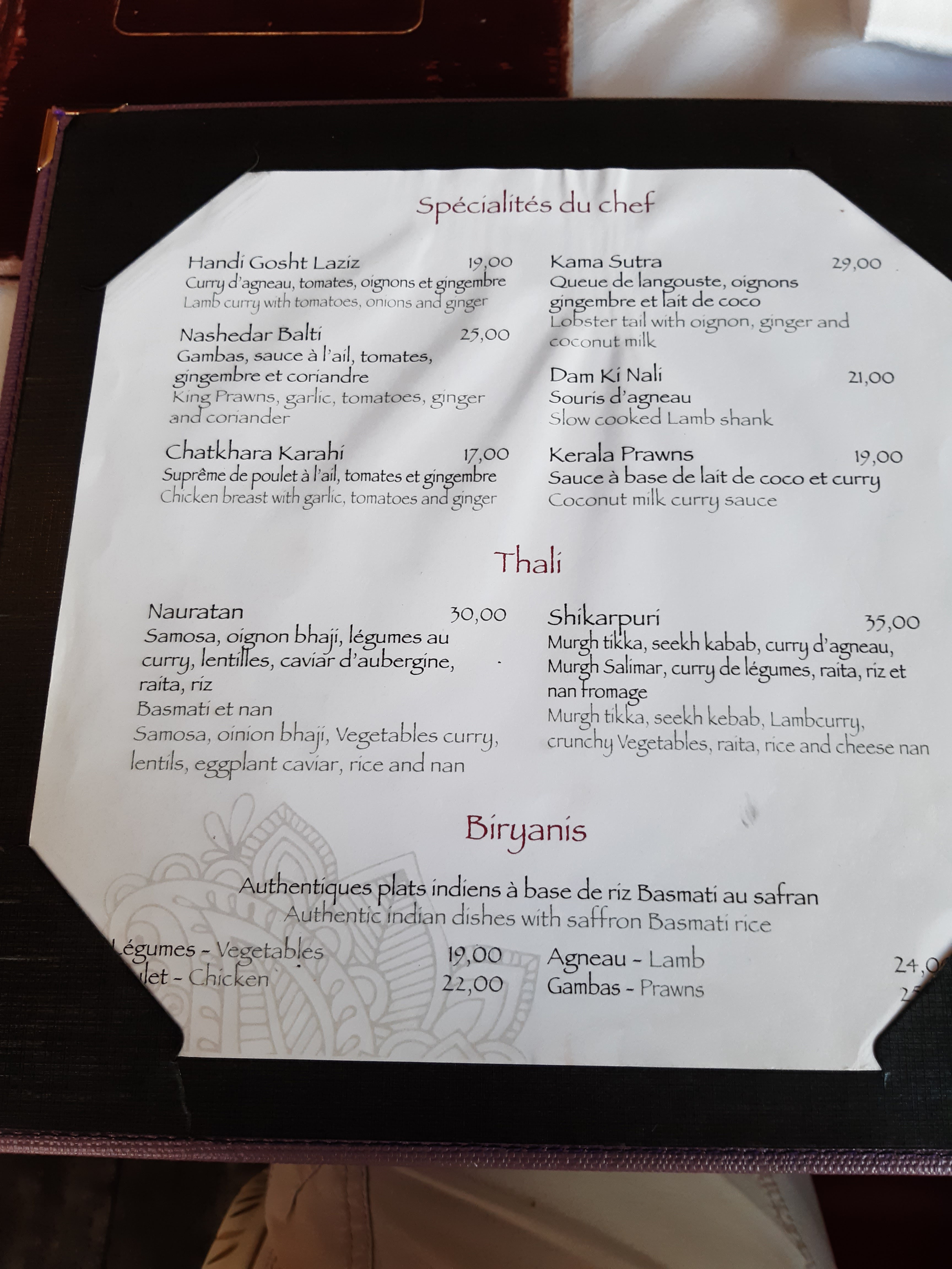 Cuisine indienne bien maîtrisé, en tant qu’habitué de l’établissement Jamais déçu