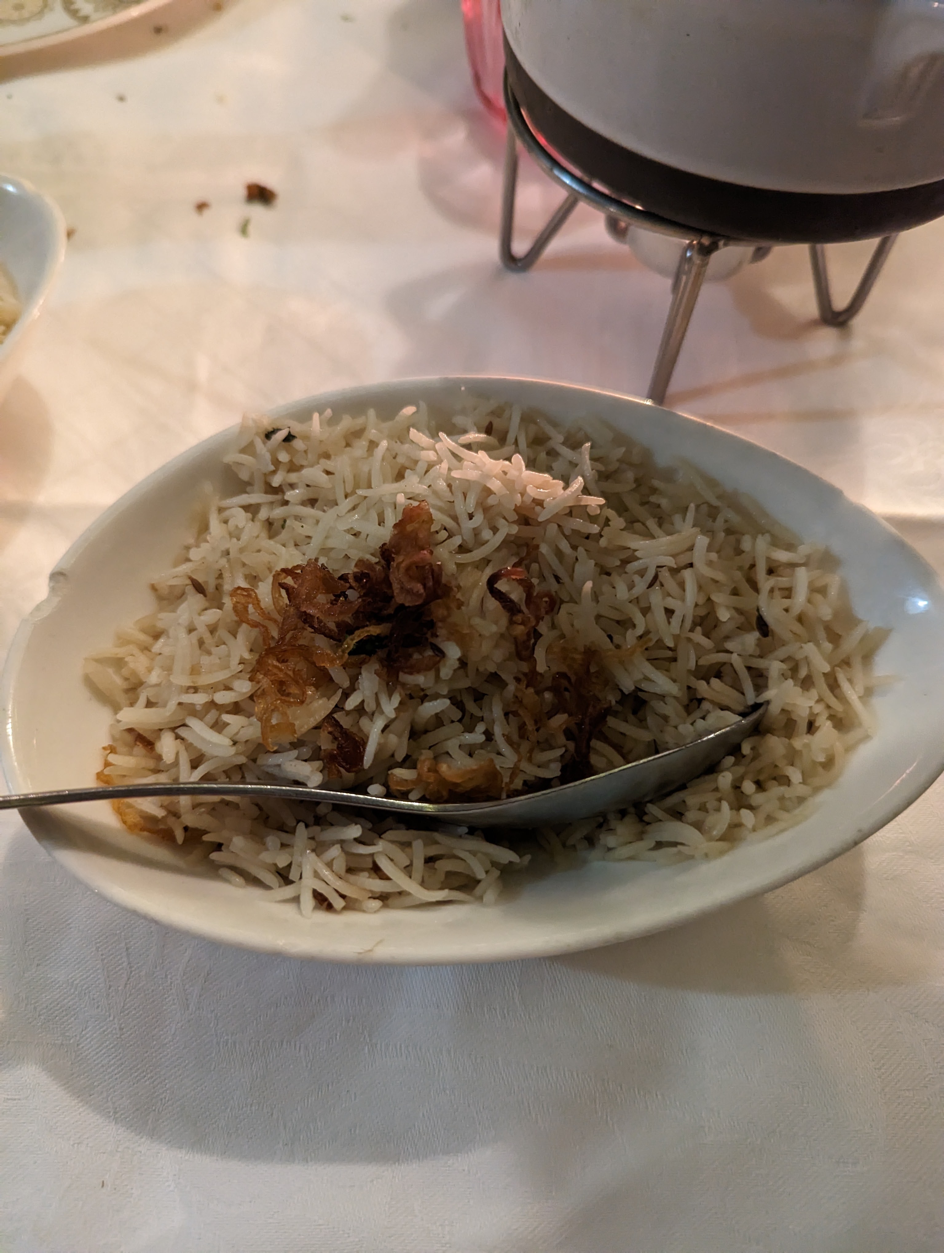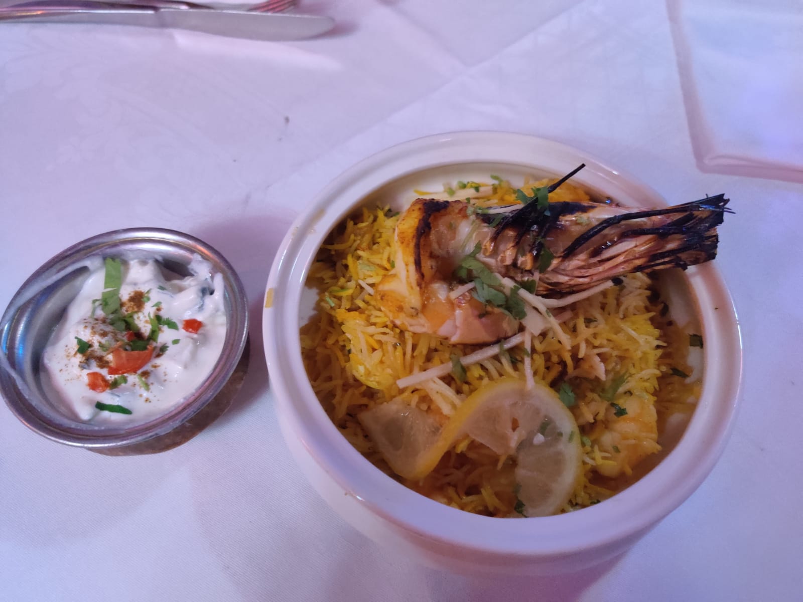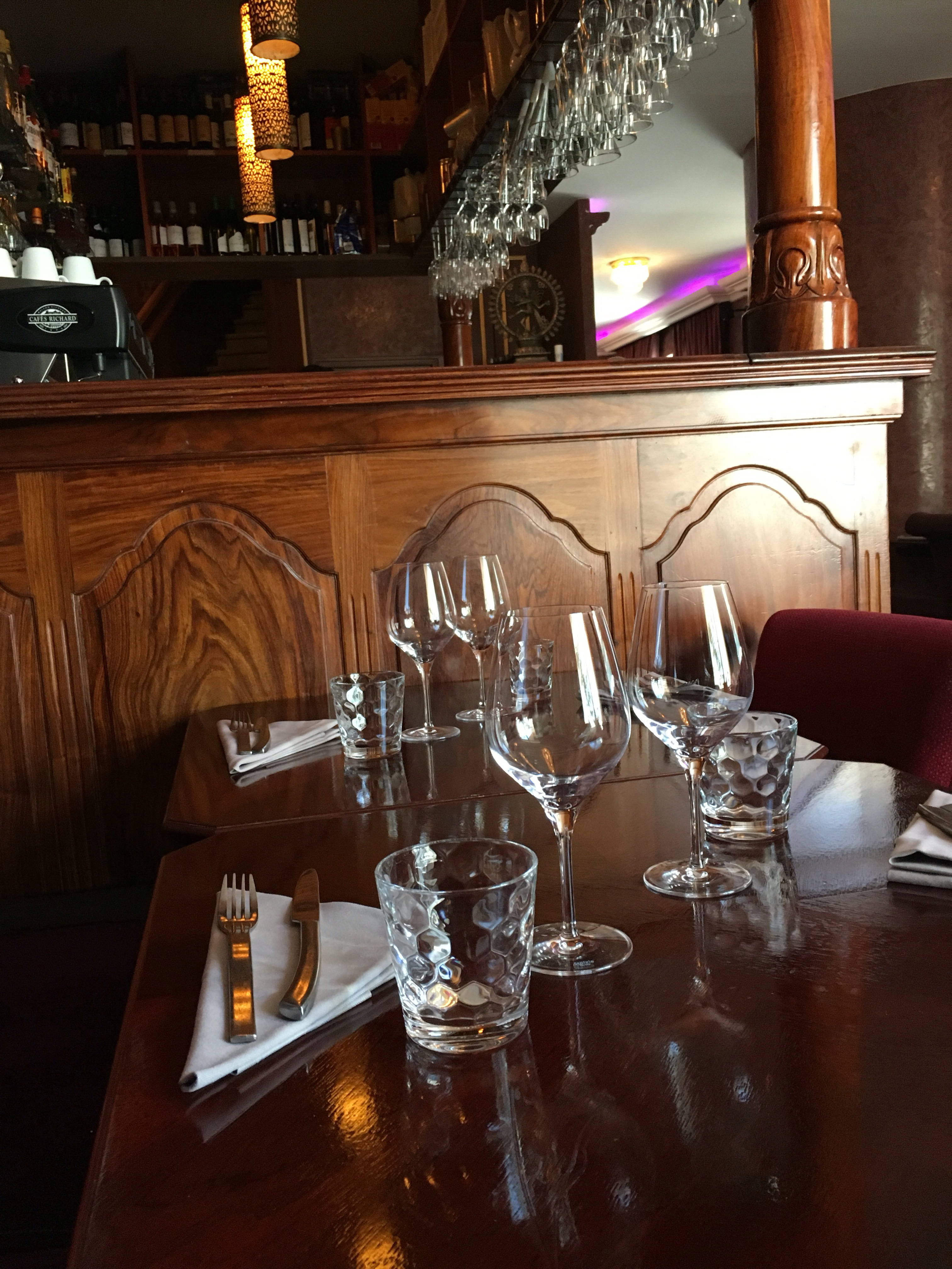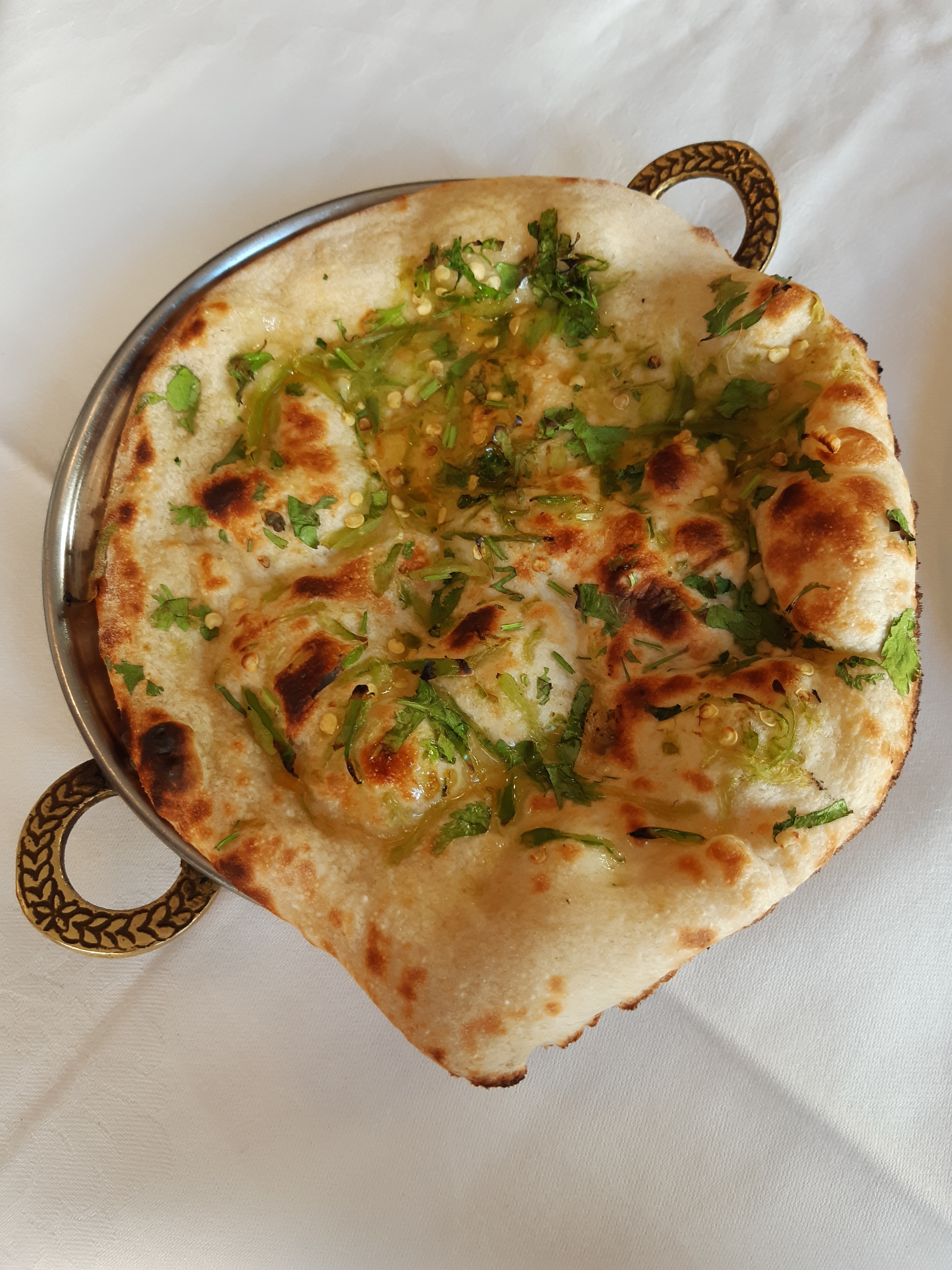 Très bel endroit cosy avec Nappe en coton blanc. Bonne cuisine, cardamome, coriandre fraîche, les saveurs sont là.