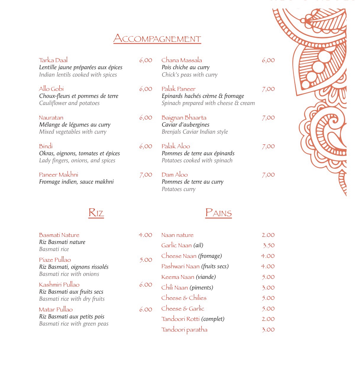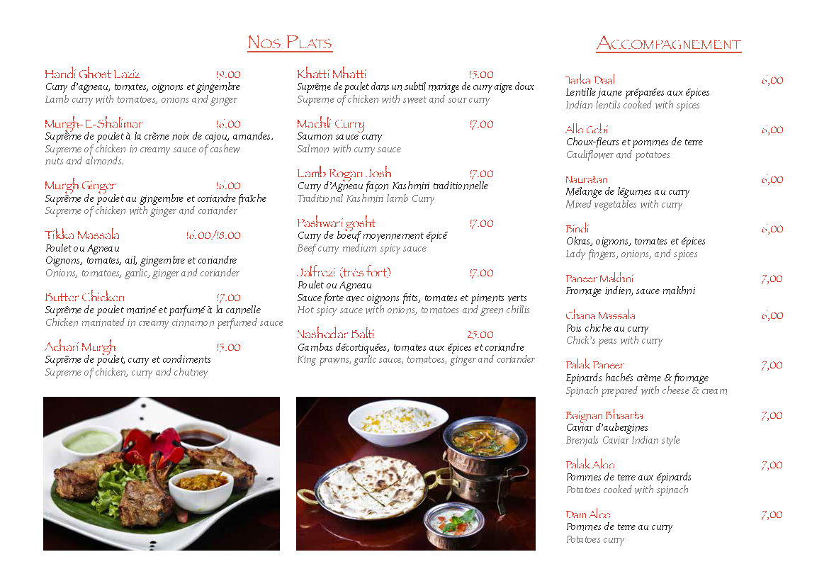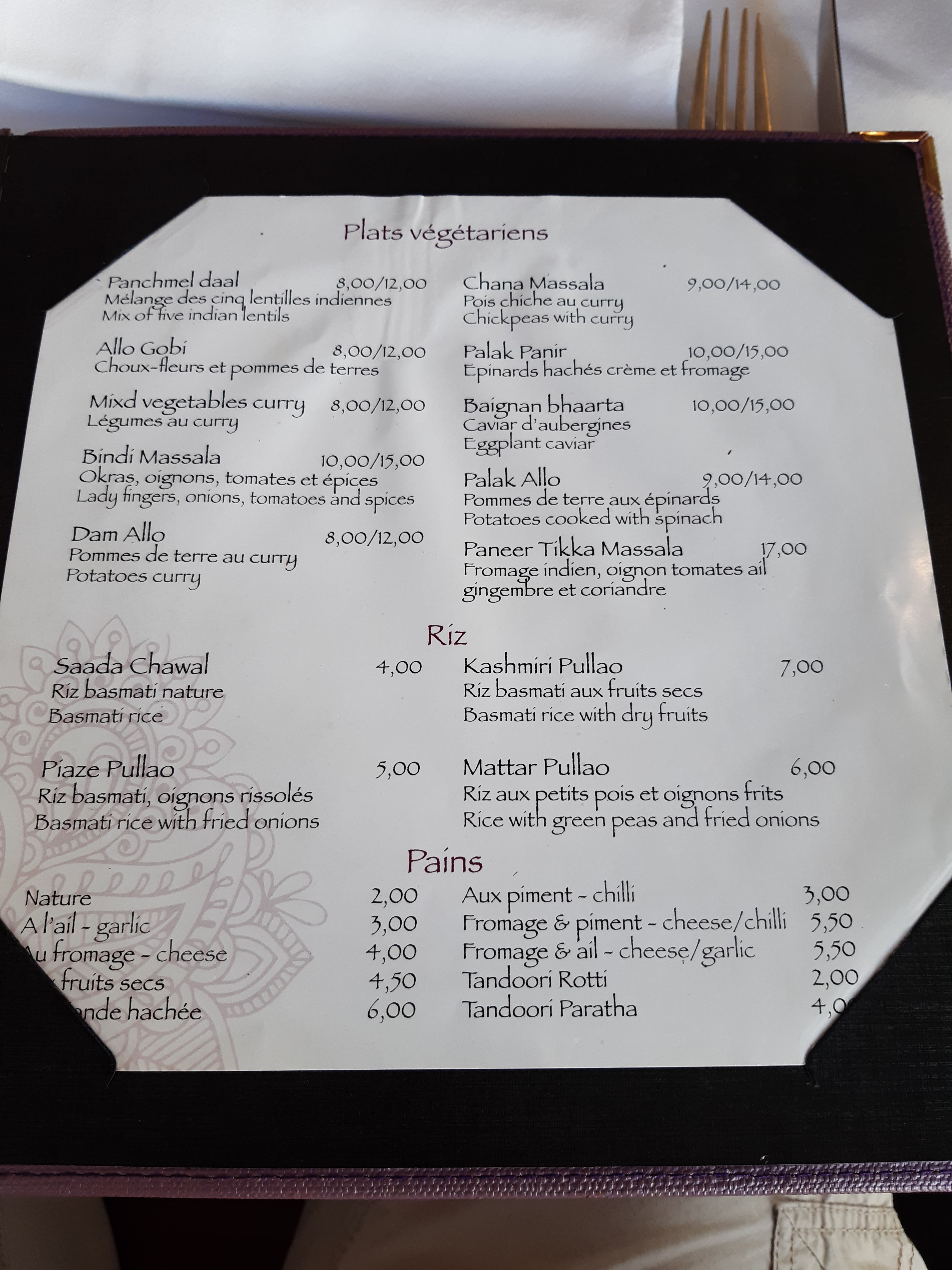La nourriture est excellente, menu typiquement indien. Vous ne trouverez pas d'attitudes très joyeuses car c'est toujours la France, et elle n'est pas du tout connue pour cela.