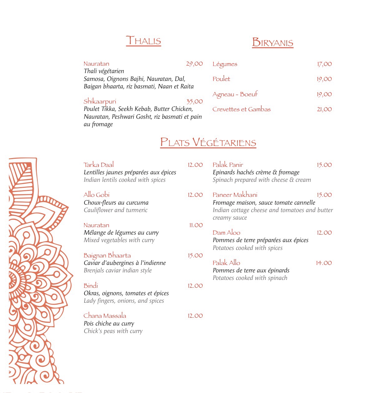 Accueil zéro, on aurait dit qu’on dérangeait le patron qui ne savait même pas qu’on avait réservé. On nous mets à l’étage sombre qui était éteint au départ. Le serveur ne parle pas un mot de français. On se trompe sur nos commandes. La nourriture nous arrache la gueule tellement c’est épicé et idem pour les enfants alors qu’on précisé pas d’épices. On doit répéter à plusieurs reprises qu’on souhaite commander des boissons. Et cerises sur le gâteau la quantité du byriani agneau est bien moindre par rapport à l’époque. Après être allé plus d’une cinquante de fois chez eux, j’y mets un terme.