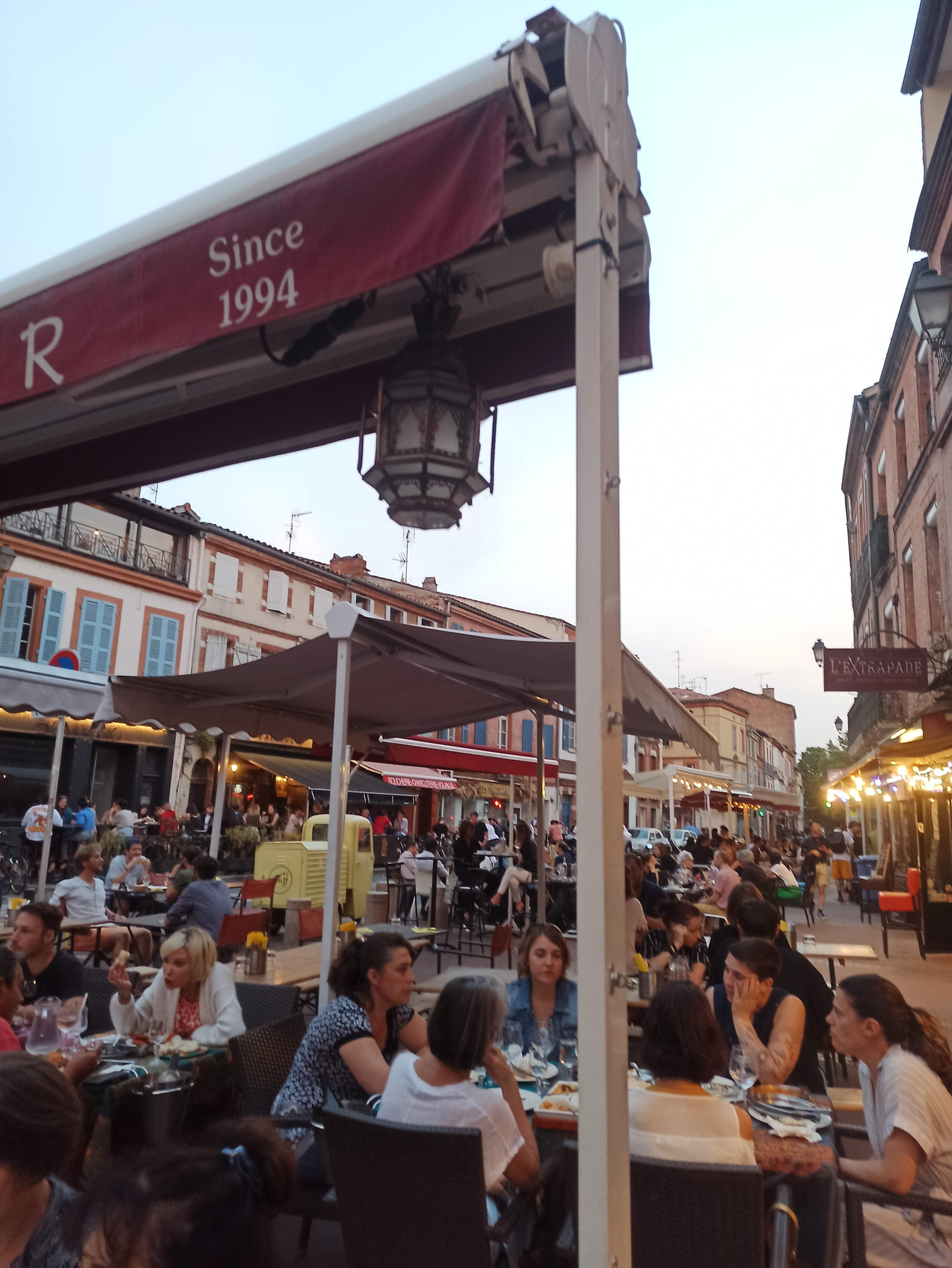 Une excellente découverte encore à Toulouse, arrivés par hasard sur cette place animée et attirés par la terrasse bondée, nous avons dû nous rabattre à l'intérieur, mais c'était quand même sympa avec la vitrine grande ouverte. Les plats sont excellents et très copieux, nous navions plus assez faim pour les desserts.... Les prix sont très raisonnables On mange très bien pour 20 à 30€ On comprend pourquoi il est plus prudent de réserver
