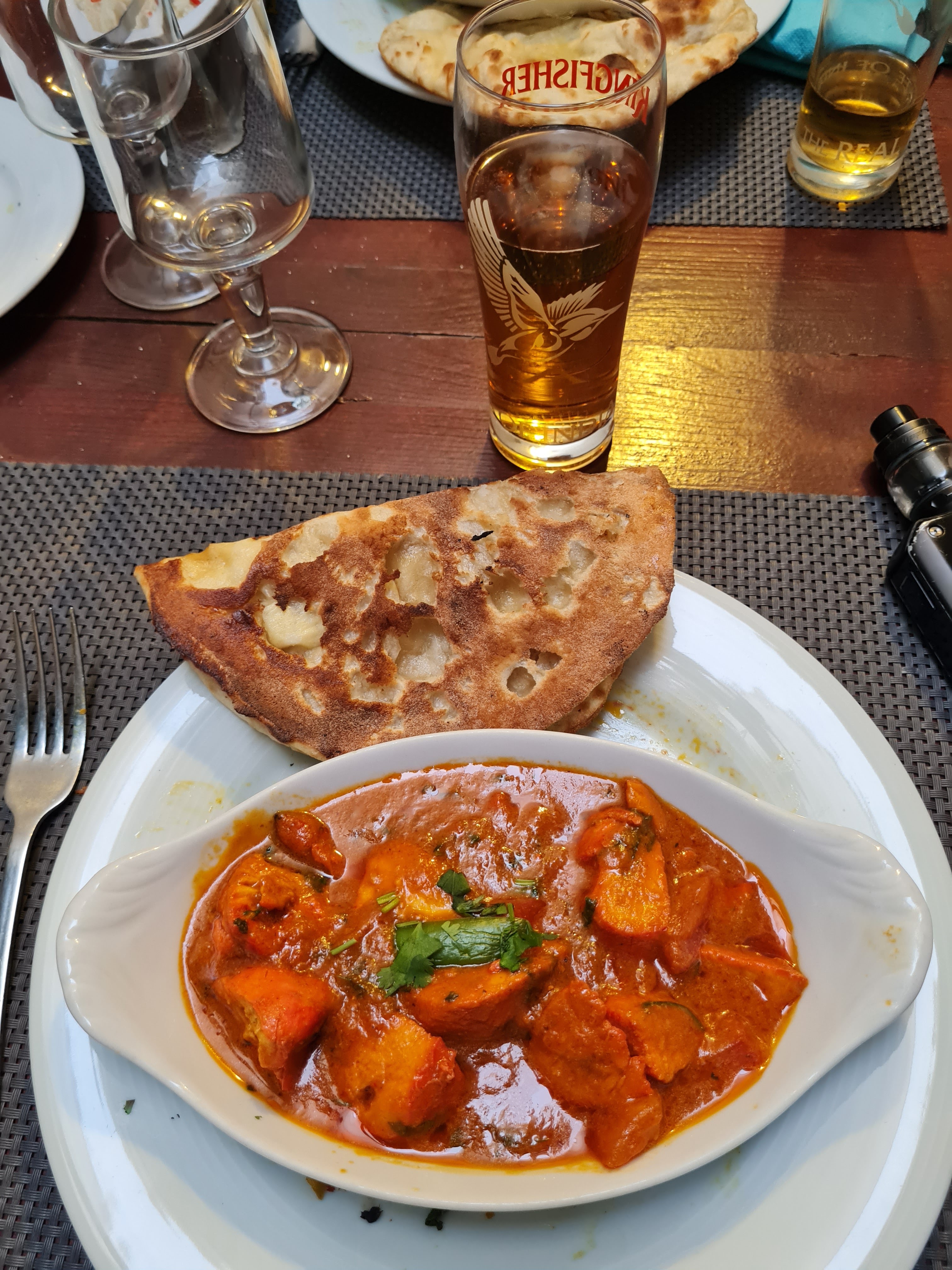 Super resto indien Poulet tikka massala délicieux Dessert très bon aussi et en prime nous avons eu un petit digestif Service impeccable et le couple qui tient le restaurent est adorable Je recommande 🥰