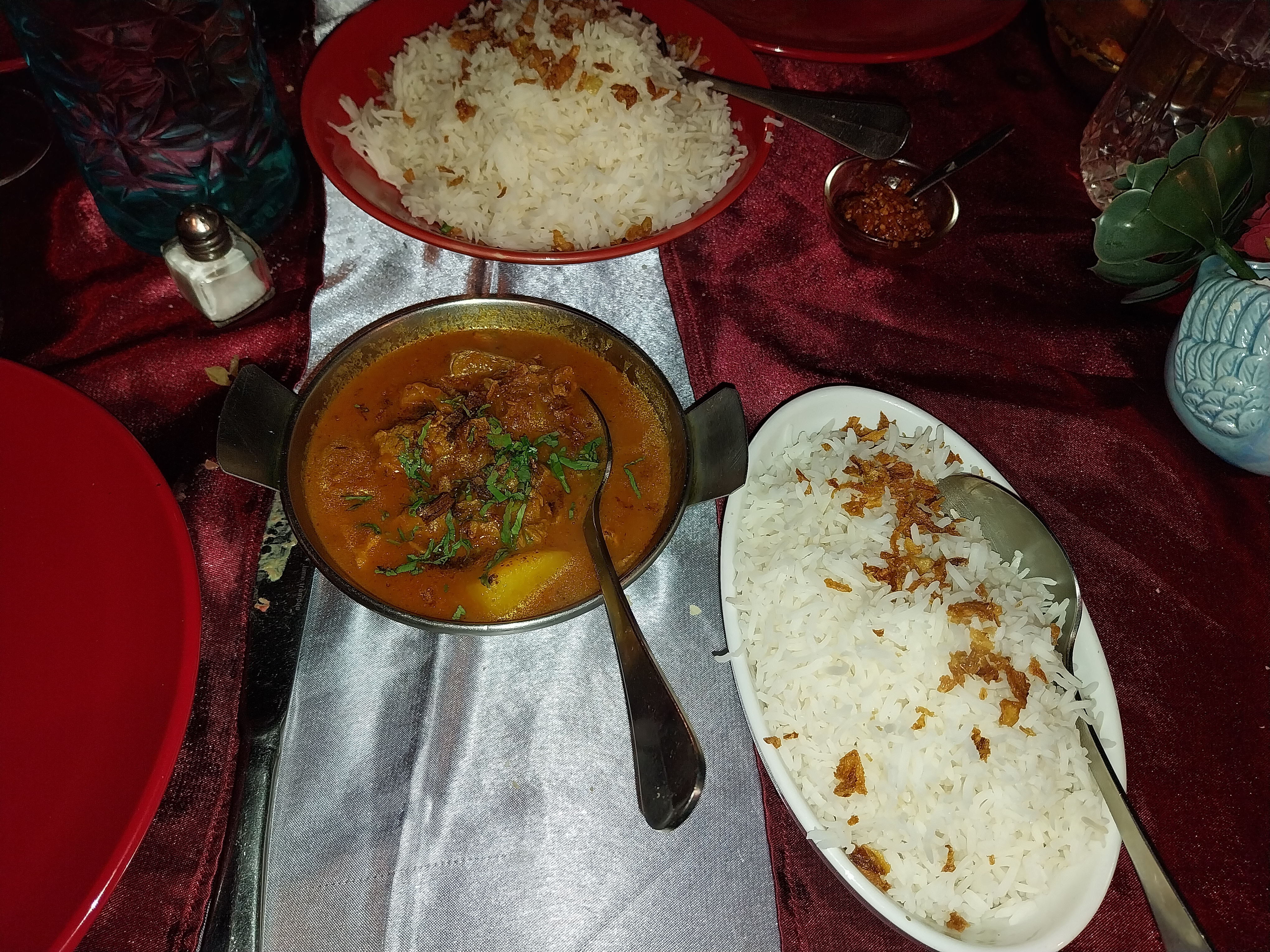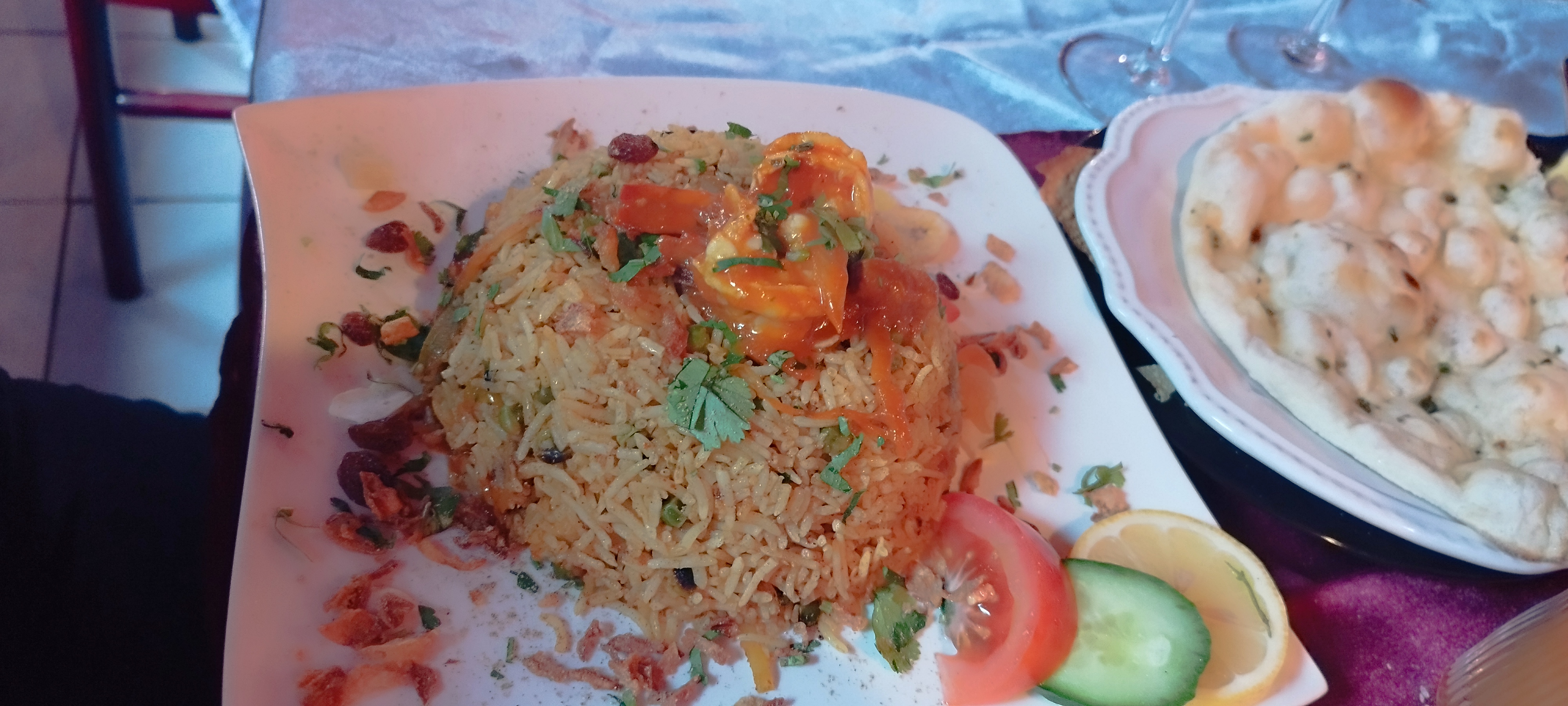 Très bon agneau Byriani et excellent Nan au fromage. Je recommande