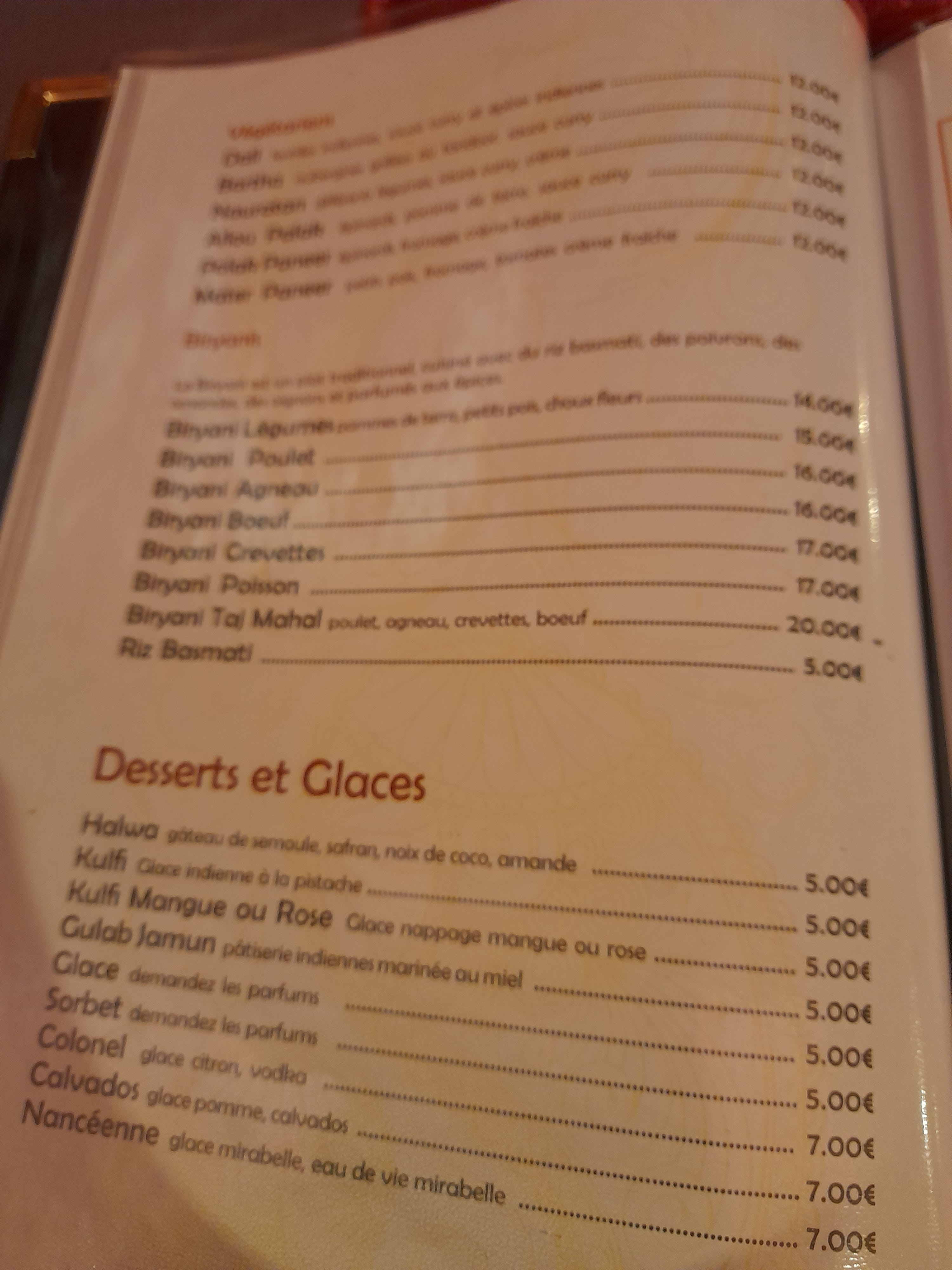 Chaleureux accueil, nous avons bien apprécié nos plats hormis le kulfi qui n'est pas 1 sorbet comme annoncé et demandé à la rose, il était nature. Le goût est très particulier, impression de lait fermenté, il faut aimer...