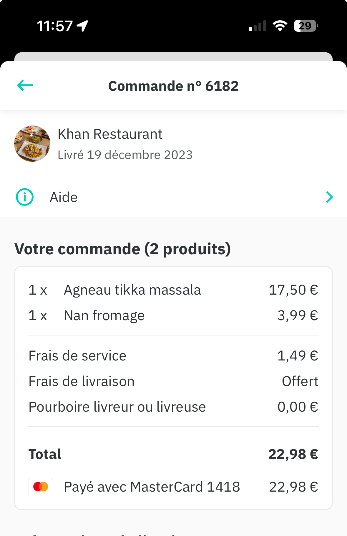 Avant c’était vraiment bon mais depuis quelques temps c’est devenu vraiment mauvais. Vous serve un riz basmati de grande surface mal cuit, et la sauce c’est de l’huile, écœurant honnêtement. Les naan pas mauvais mais bien réduits niveau taille… c’était la dernière fois que je commandais chez eux.