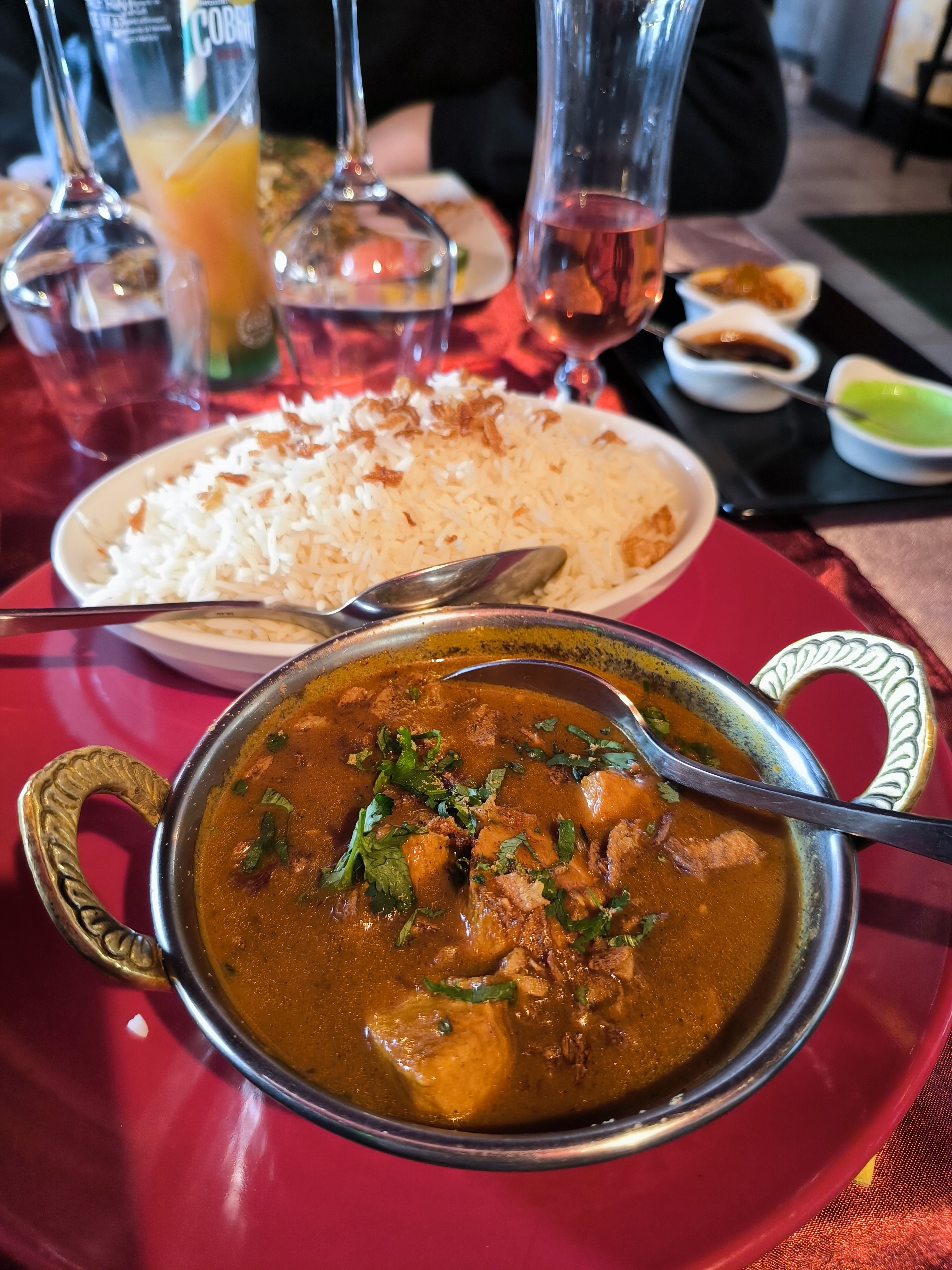 Très bonne adresse si vous voulez manger Indien. J'ai pris comme plat un boeuf vindaloo servi avec du riz basmati. Le serveur demande si on veut un plat plus ou moins épicé. J'ai passé un très bon moment, je reviendrais.